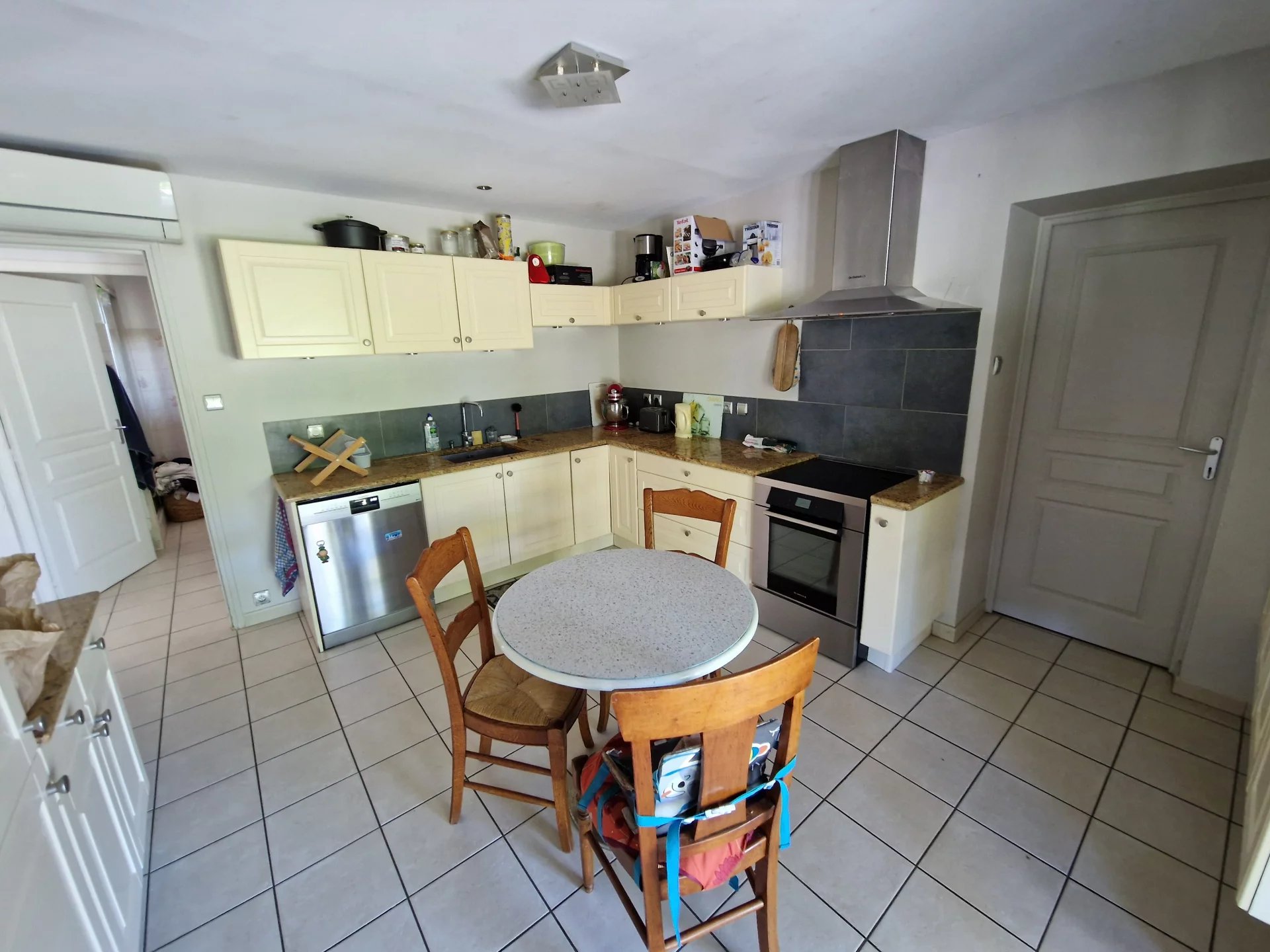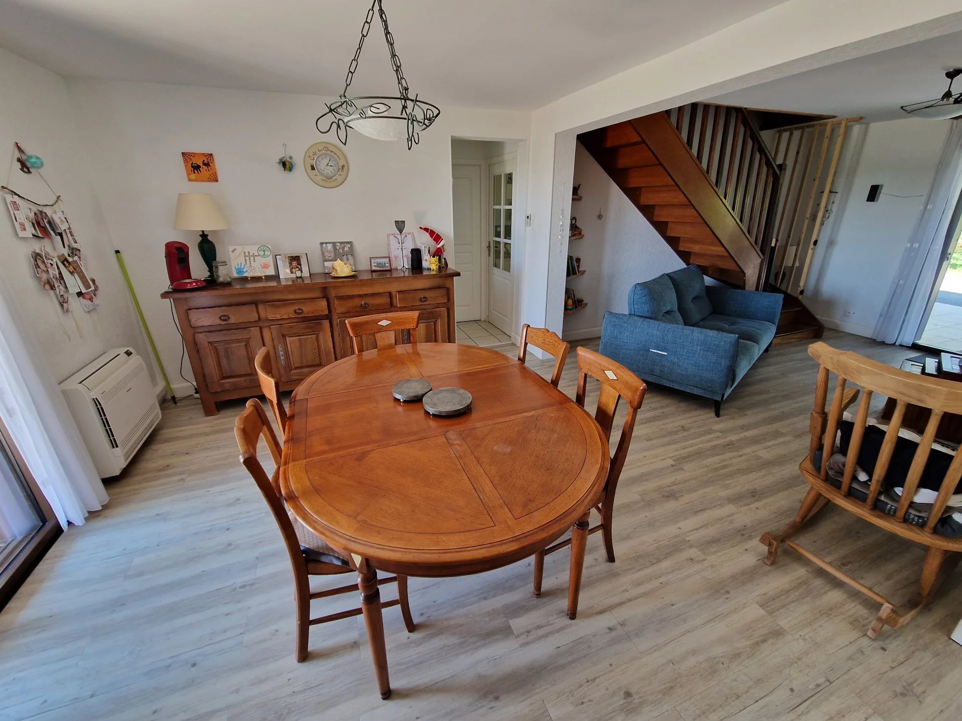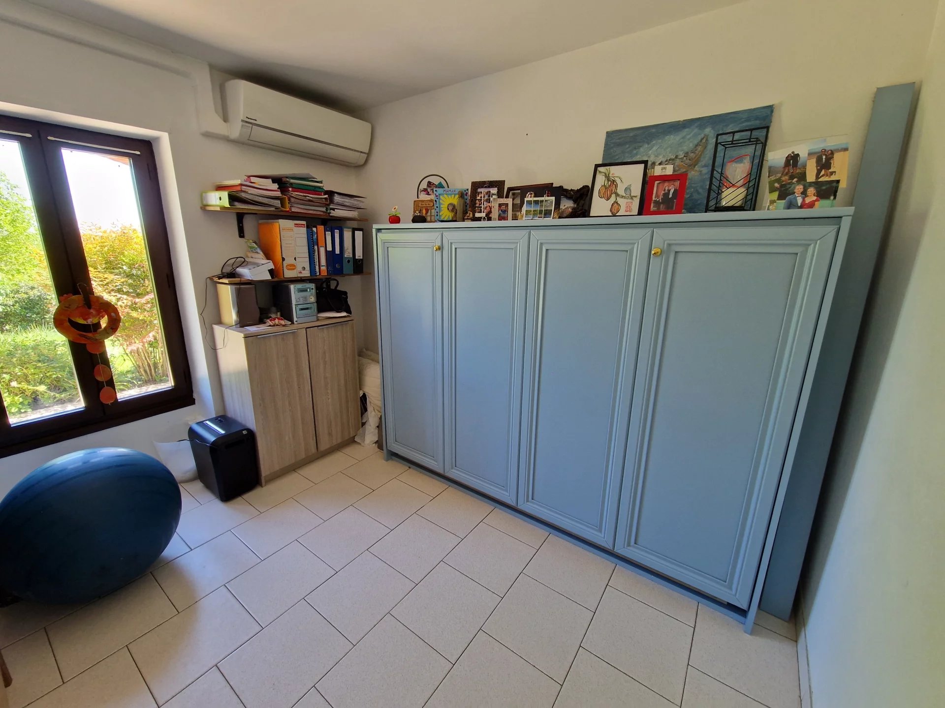 Agréable pièce de vie traversante donnant sur terrasse face à la chaîne des Pyrénées. Cuisine équipée avec coin repas, deux bureaux, une grande salle de bains, wc indépendant.