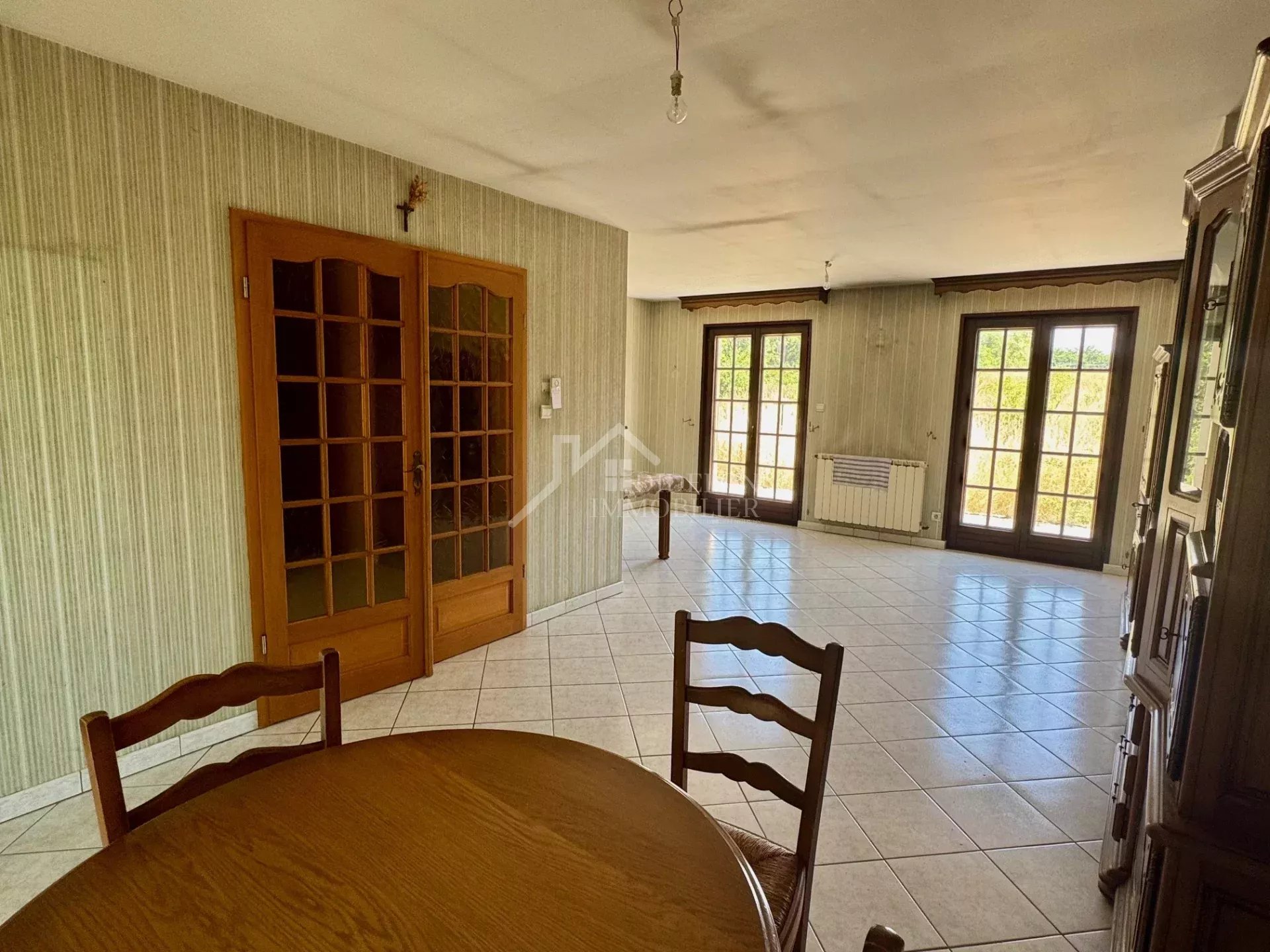VIGY Dans un quartier calme, maison de plain-pied sur sous-sol, 96 m² à rafraichir comprenant : - au RDC : entrée, cuisine aménagée, salon-séjour de 32 m² avec accès direct sur l'extérieur, 2 chambres, SDB, salle d'eau - au sous-sol : grand garage, buanderie, chaufferie et cave - à l'extérieur : terrasse sur l'avant, terrasse sur l'arrière, stationnement et grand jardin L'ensemble sur une parcelle de 1957 m² Les informations sur les risques auxquels ce bien est exposé sont disponibles sur le site Géorisques : www.georisques.gouv.fr