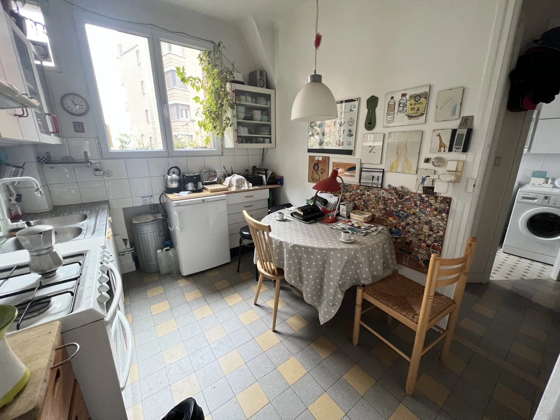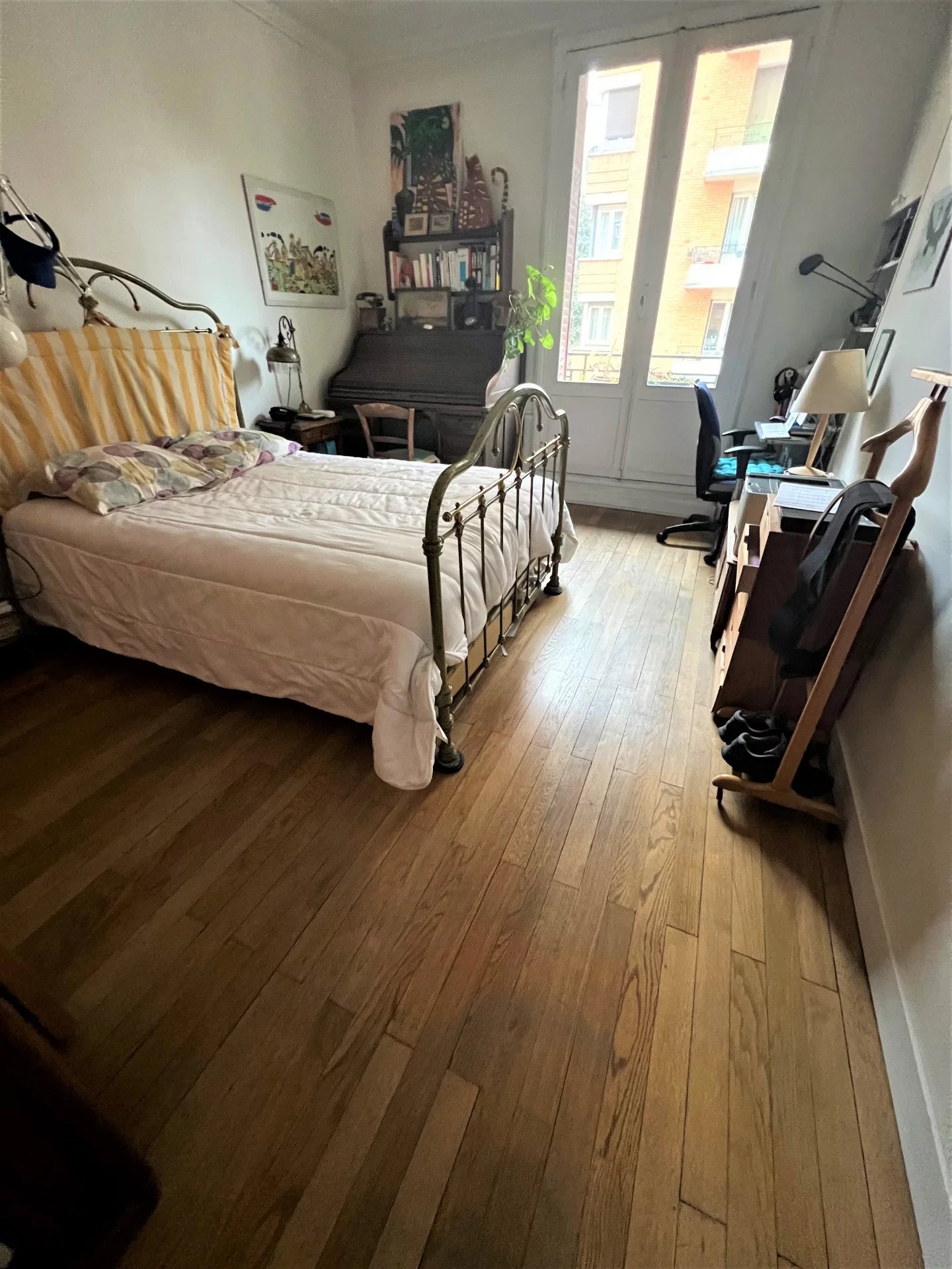 Métro Porte de Pantin, au pied du parc de la Villette et à quelques pas du parc des Buttes Chaumont,au 2eme étage avec ascenseur dans un immeuble des années 30, un appartement triplement exposé, calme, bénéficiant du charme de l'ancien, composé d'une entrée, une cuisine dinatoire, une salle de bains avec WC, des WC séparés, trois chambres en double exposition dont une avec balcon, et un séjour. Parquet ancien, hauteur sous plafond, une cheminée. Gardiennage.