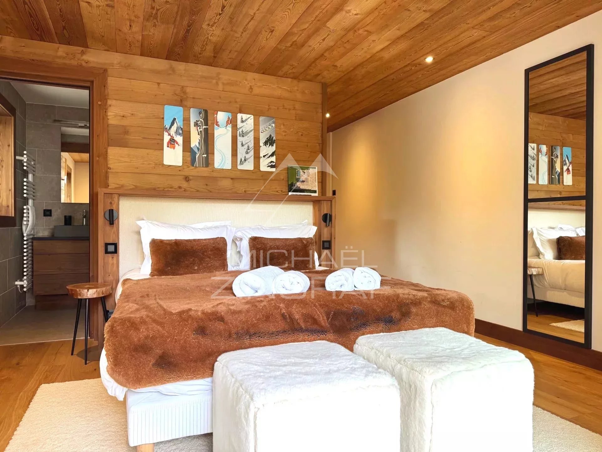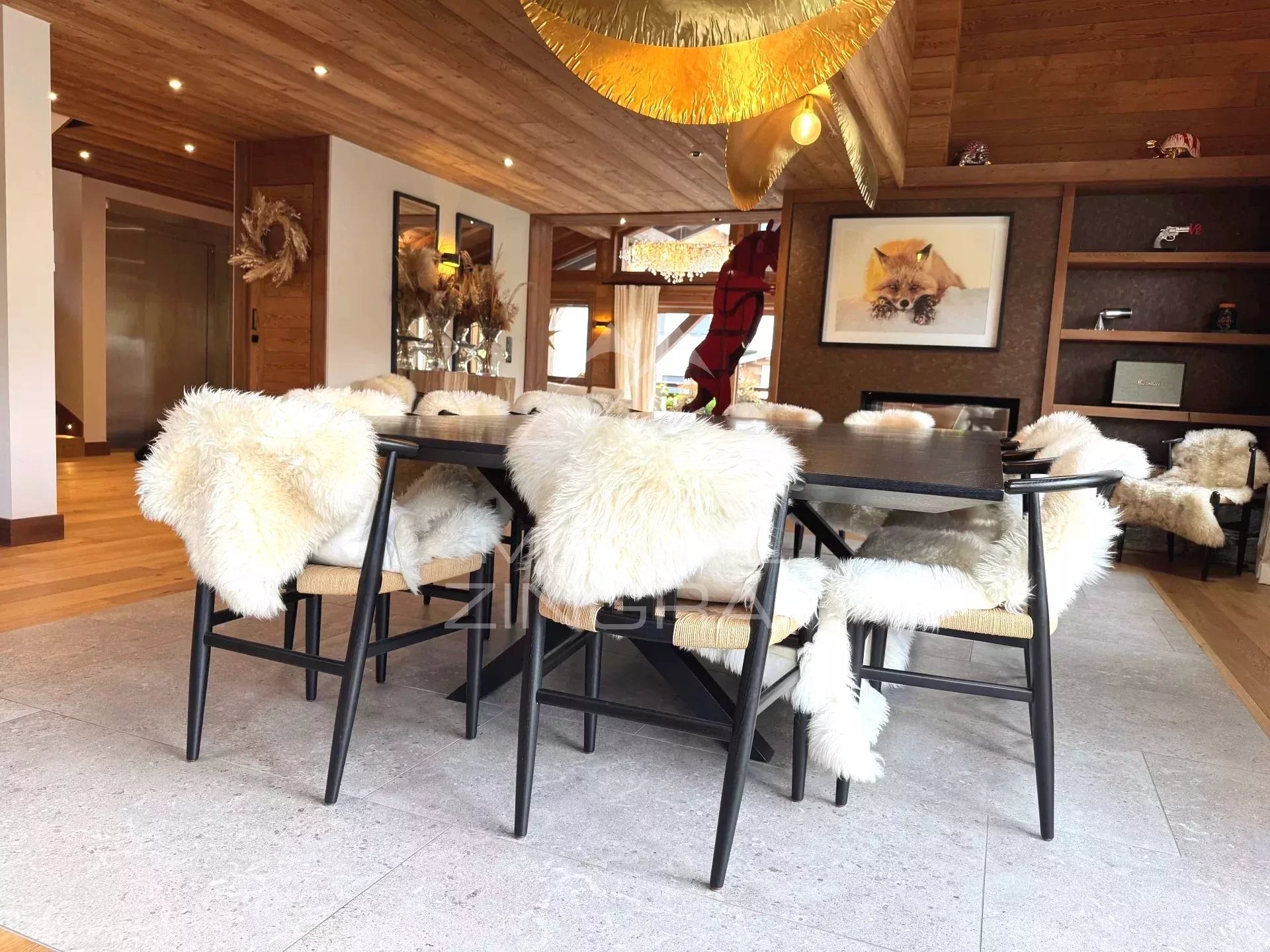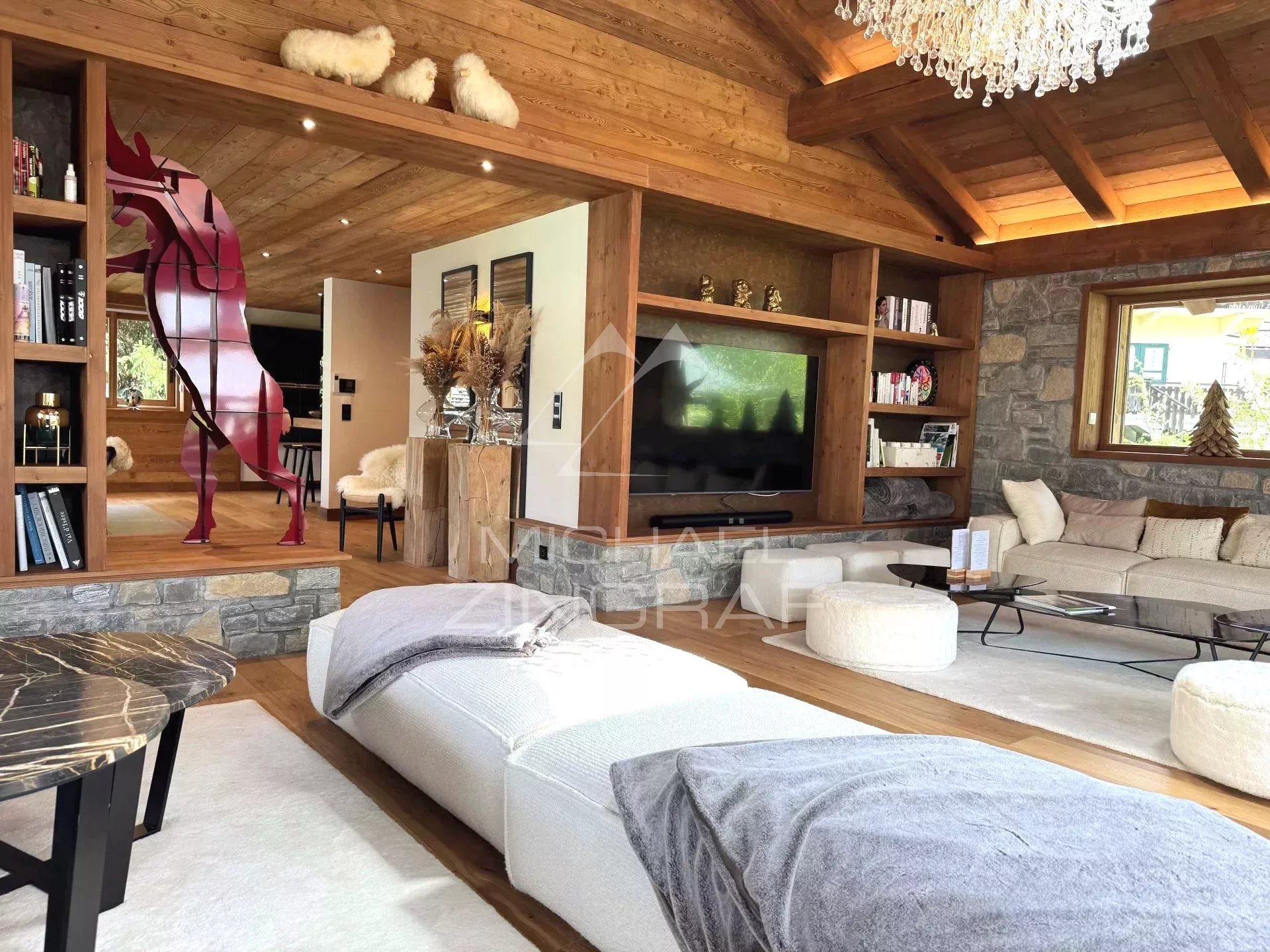 Michaël Zingraf Real Estate Megève vous propose ce chalet Prestige de 330 m2 habitables (surface totale 382 m2), situé dans un environnement privilégié à grande proximité du village à pied et des remontées mécaniques. Cet chalet traditionnel offre cinq chambres en suite, dont une master avec volumes sous toiture, un vaste double salon-salle à manger avec plafond cathédrale, cheminée fermée, ainsi qu'une cuisine équipée ouverte, et s'ouvrant sur une vaste terrasse Sud-Ouest. En complément pour votre meilleur agrément : une piscine, un sauna, une salle de sport, un ski room, un garage fermé, et des places de stationnement extérieur.
