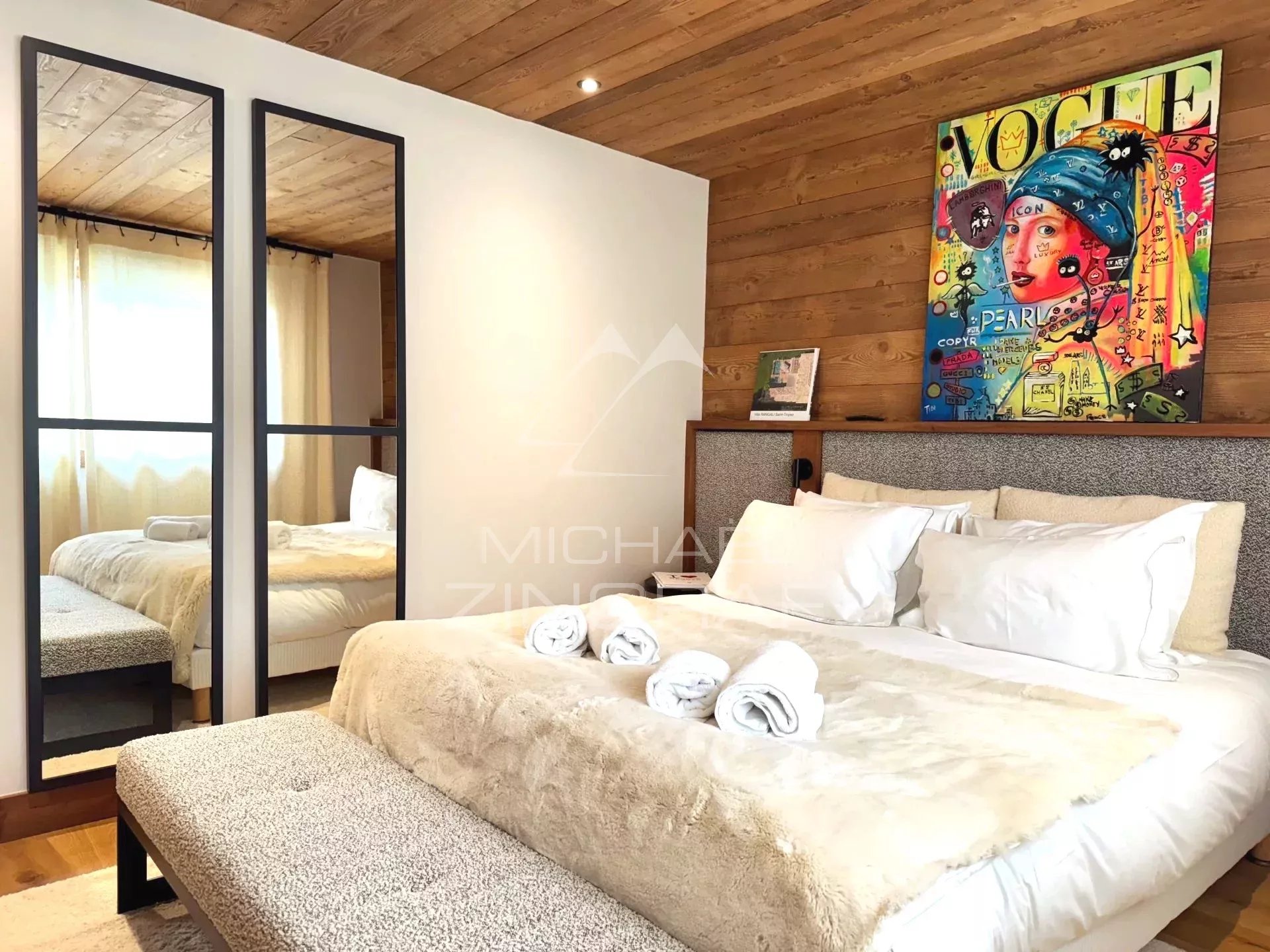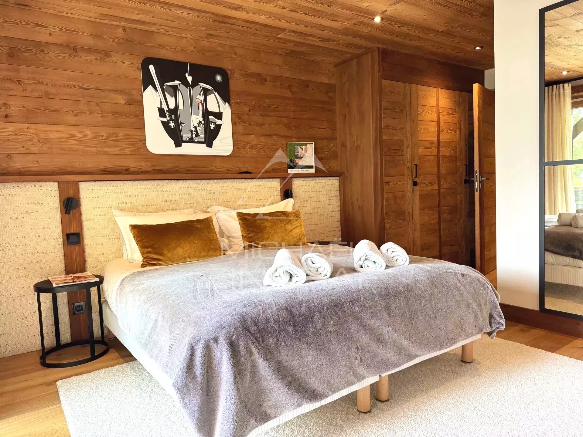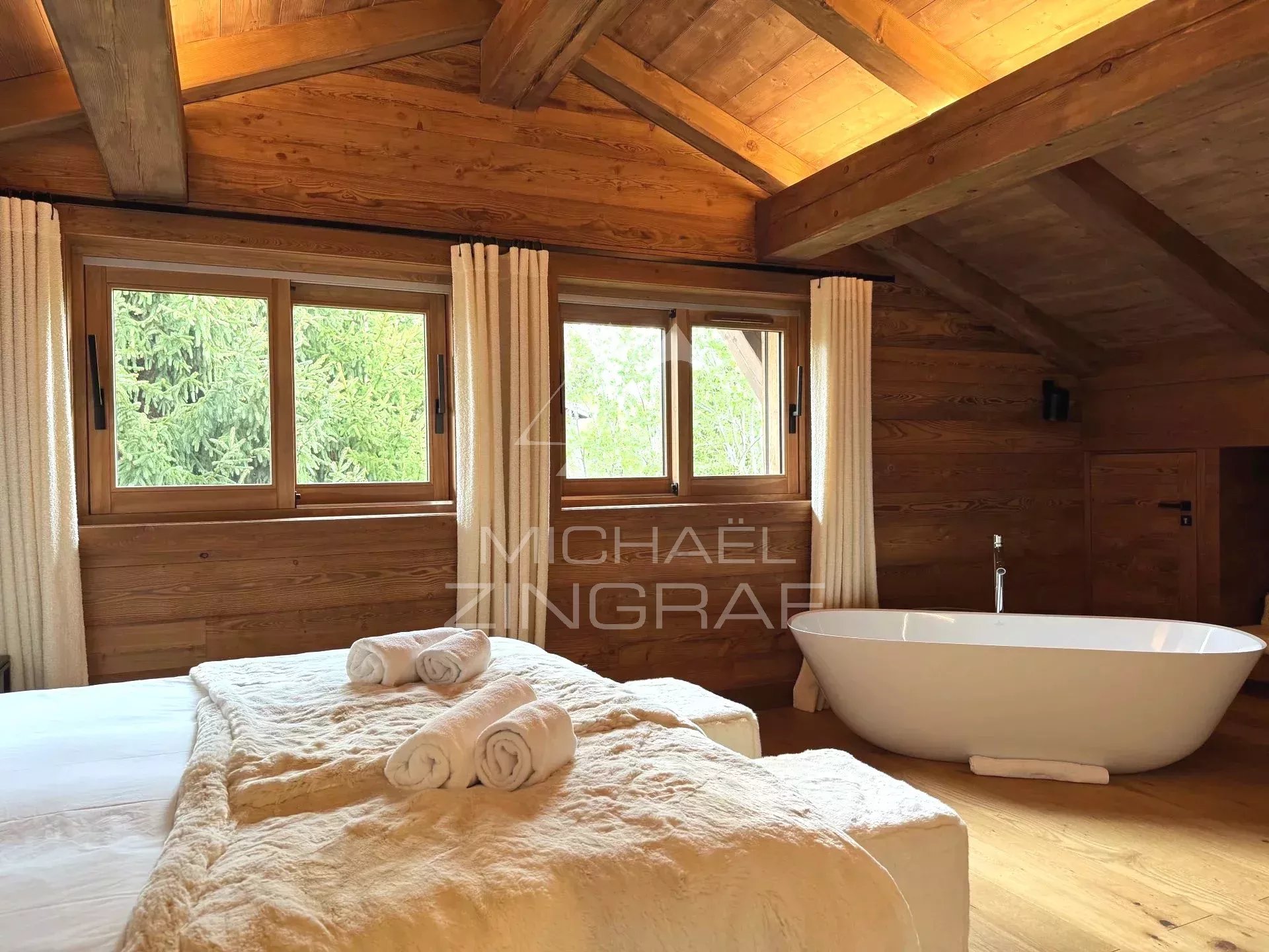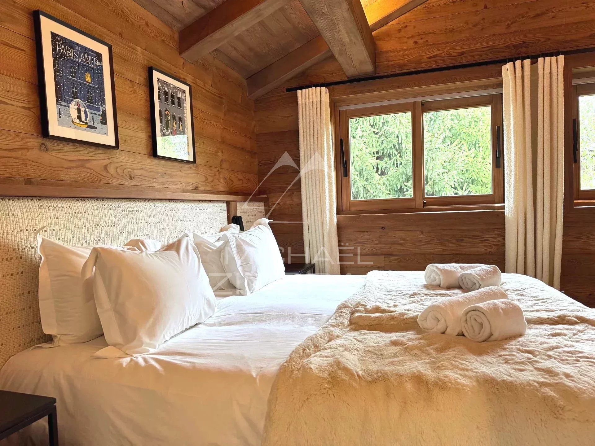 Michaël Zingraf Real Estate Megève vous propose ce chalet Prestige de 330 m2 habitables (surface totale 382 m2), situé dans un environnement privilégié à grande proximité du village à pied et des remontées mécaniques. Cet chalet traditionnel offre cinq chambres en suite, dont une master avec volumes sous toiture, un vaste double salon-salle à manger avec plafond cathédrale, cheminée fermée, ainsi qu'une cuisine équipée ouverte, et s'ouvrant sur une vaste terrasse Sud-Ouest. En complément pour votre meilleur agrément : une piscine, un sauna, une salle de sport, un ski room, un garage fermé, et des places de stationnement extérieur.