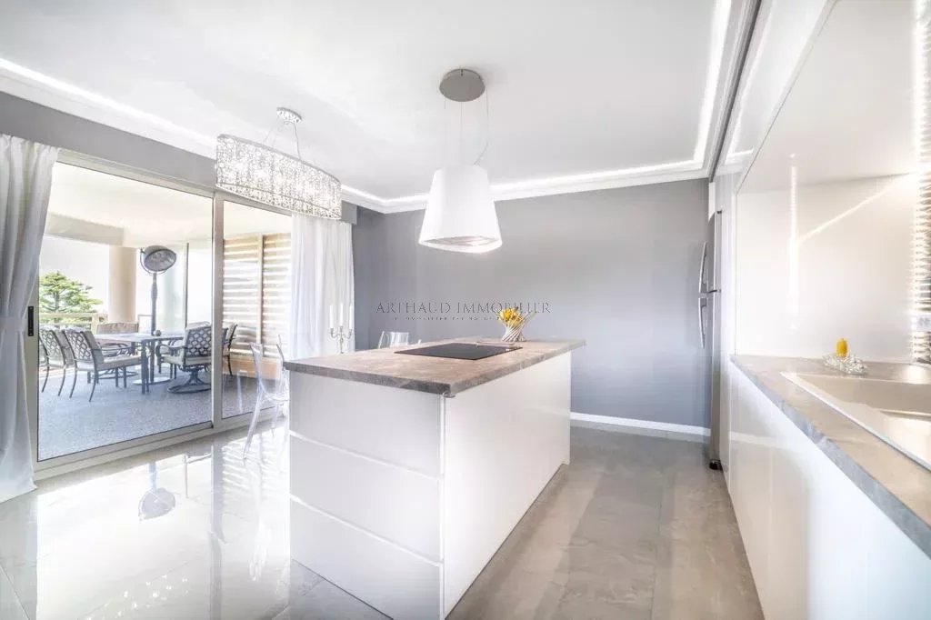 Dans une belle résidence de standing, au calme, appartement 4 pièces de 89m2 avec terrasse. Totalement rénové avec des prestations haut de gamme, cet appartement vous offre : - Un grand séjour/cuisine lumineux avec accès sur une grande terrasse vue mer. - 3 Chambres avec rangements, dont 1 en suite avec salle de bain. - 1 salle de douche - Hall d'entrée avec placard Une cave et un garage complètent ce bien. (borne de recharge électrique) Piscine et sauna en copropriété.
