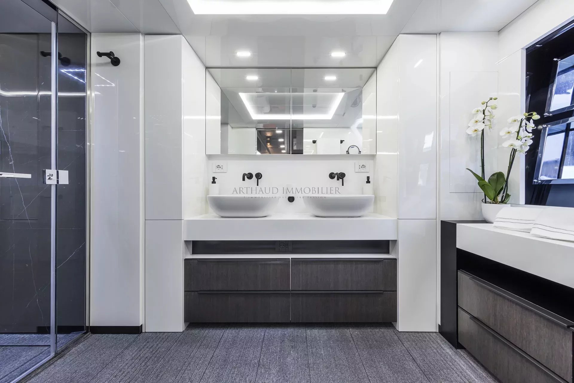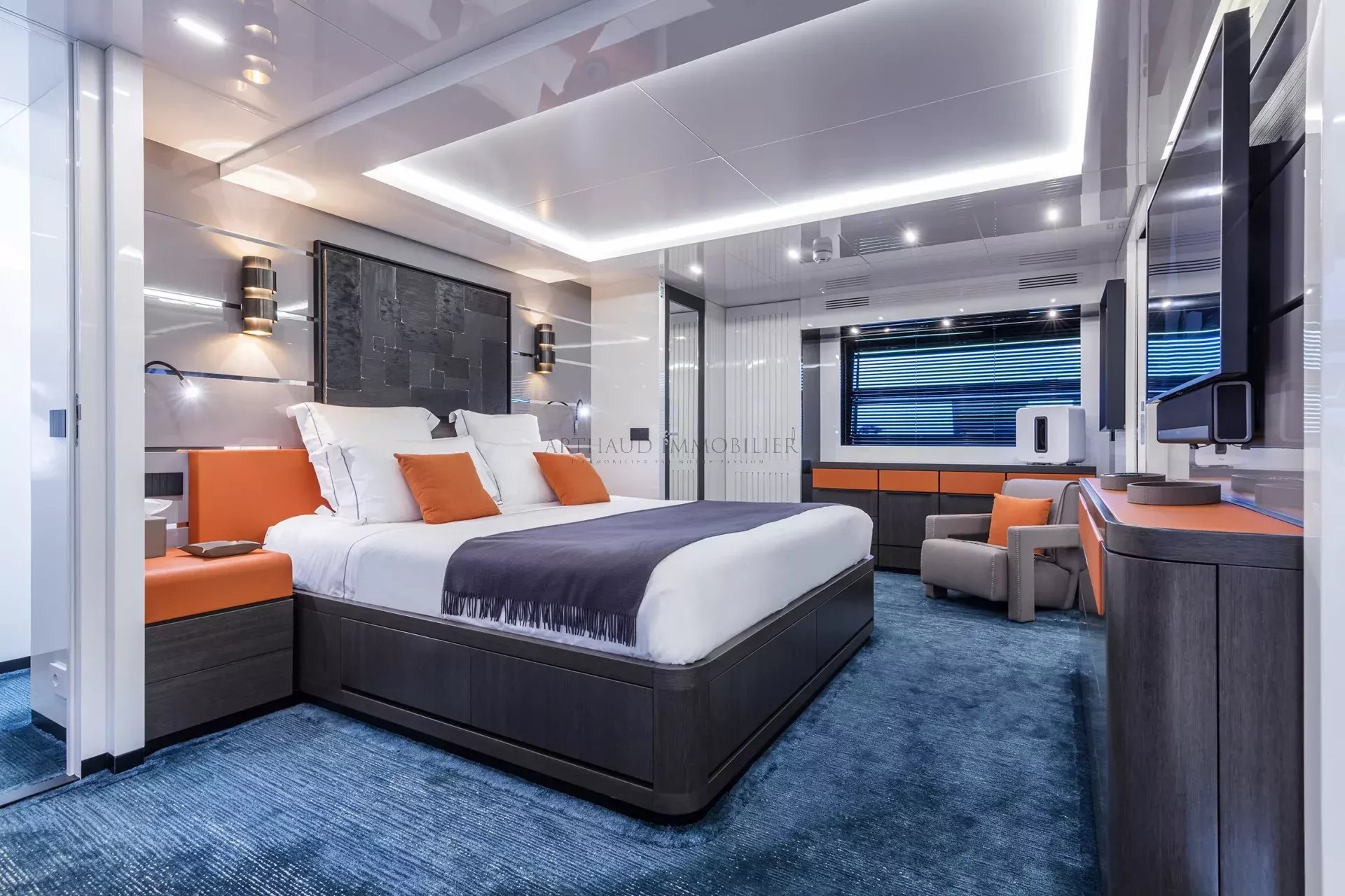 Une cabine VIP de 13 m² avec salle de bain de 3 m²