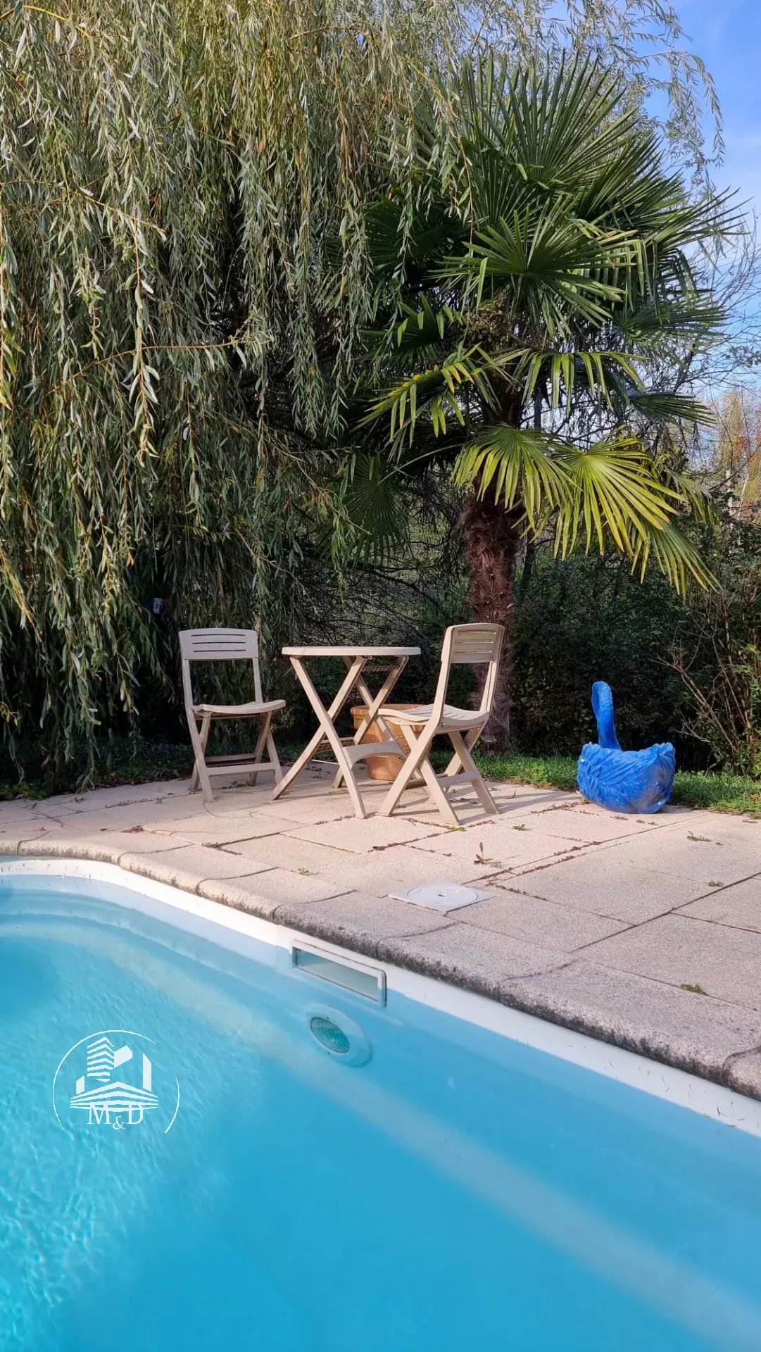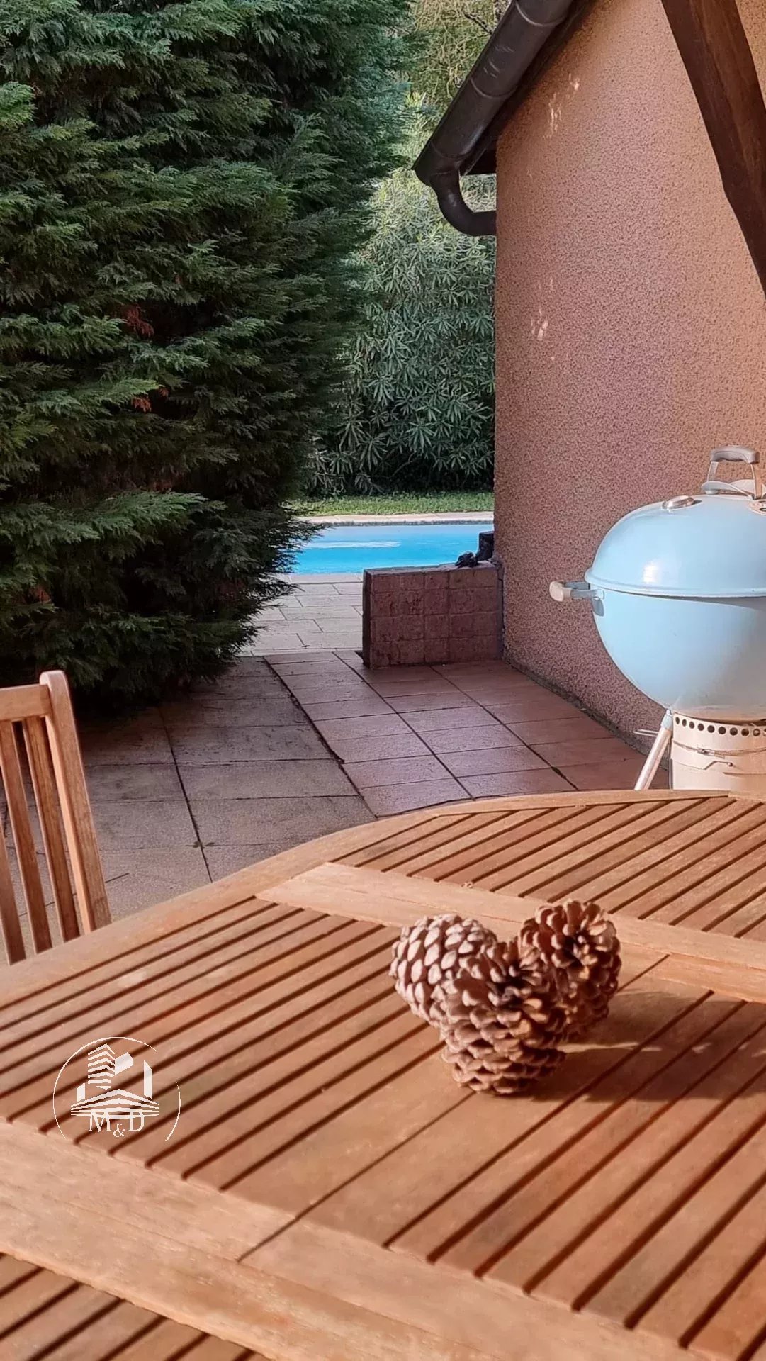 Édifiée sur un beau terrain arboré de presque 1 200 m², la terrasse couverte, la piscine et l'absence totale de vis-à-vis finiront de vous convaincre.