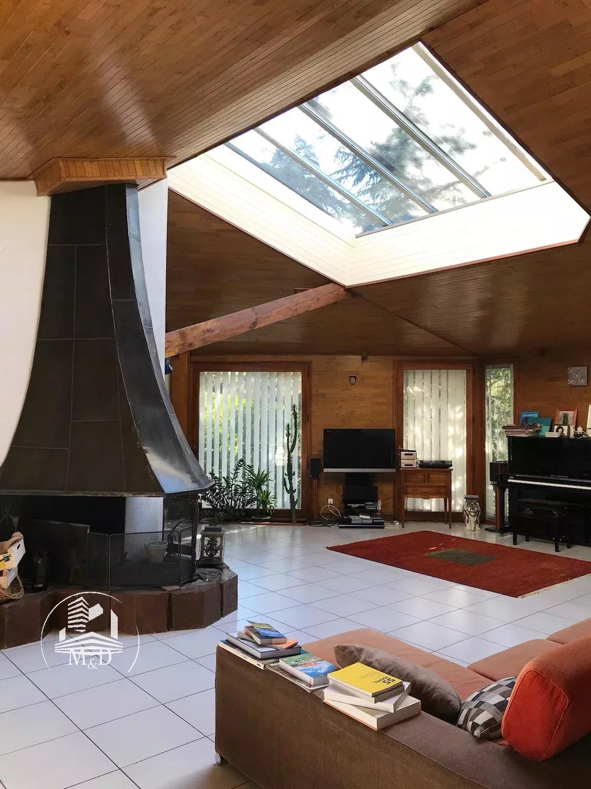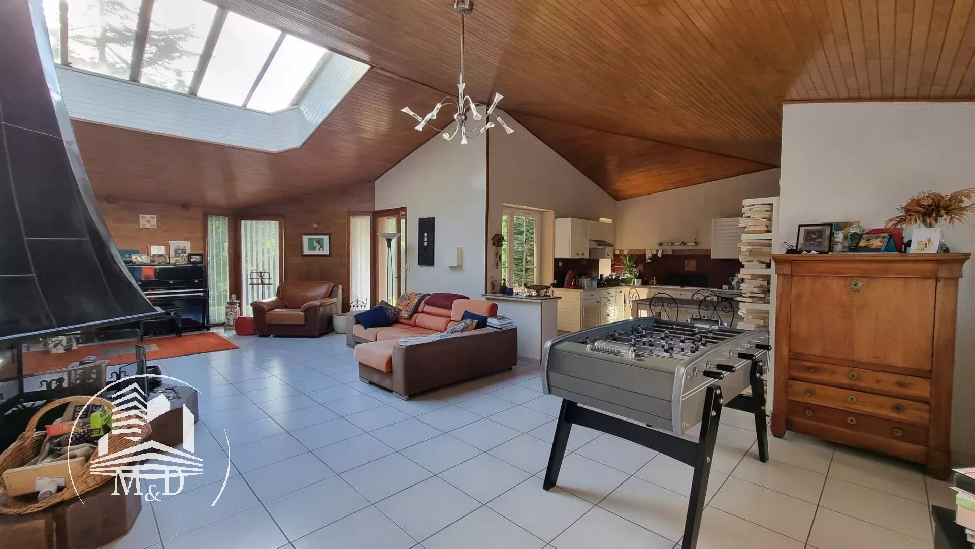 Dès l'entrée, vous serez accueilli par une abondante lumière naturelle qui inonde les espaces de vie grâce à une vaste verrière surplombant le salon. Cette luminosité met en valeur une atmosphère chaleureuse et contemporaine, sublimée par une cheminée au design remarquable, qui ajoute une touche d'élégance et de confort à cet espace central, véritable cœur de la maison.