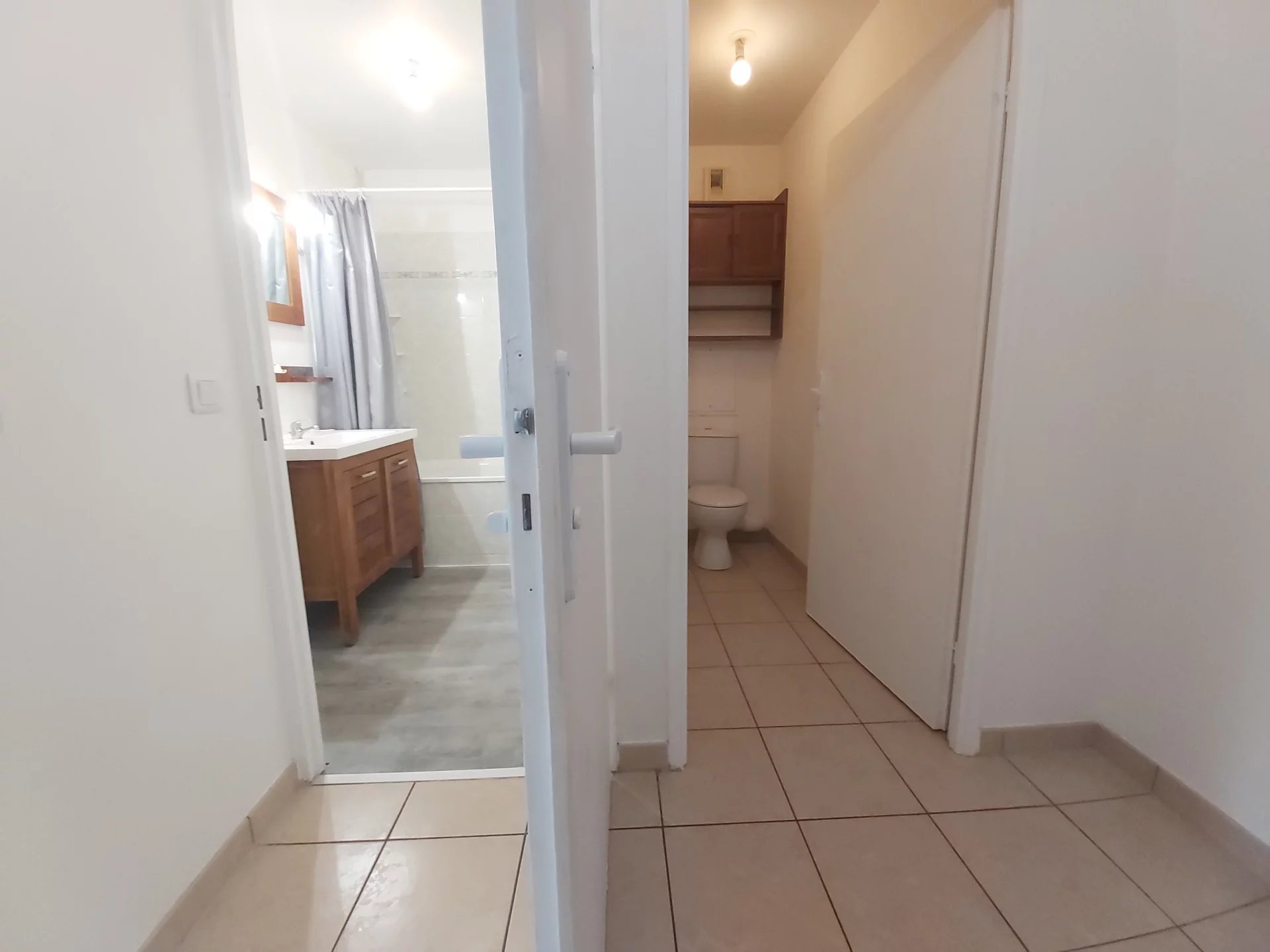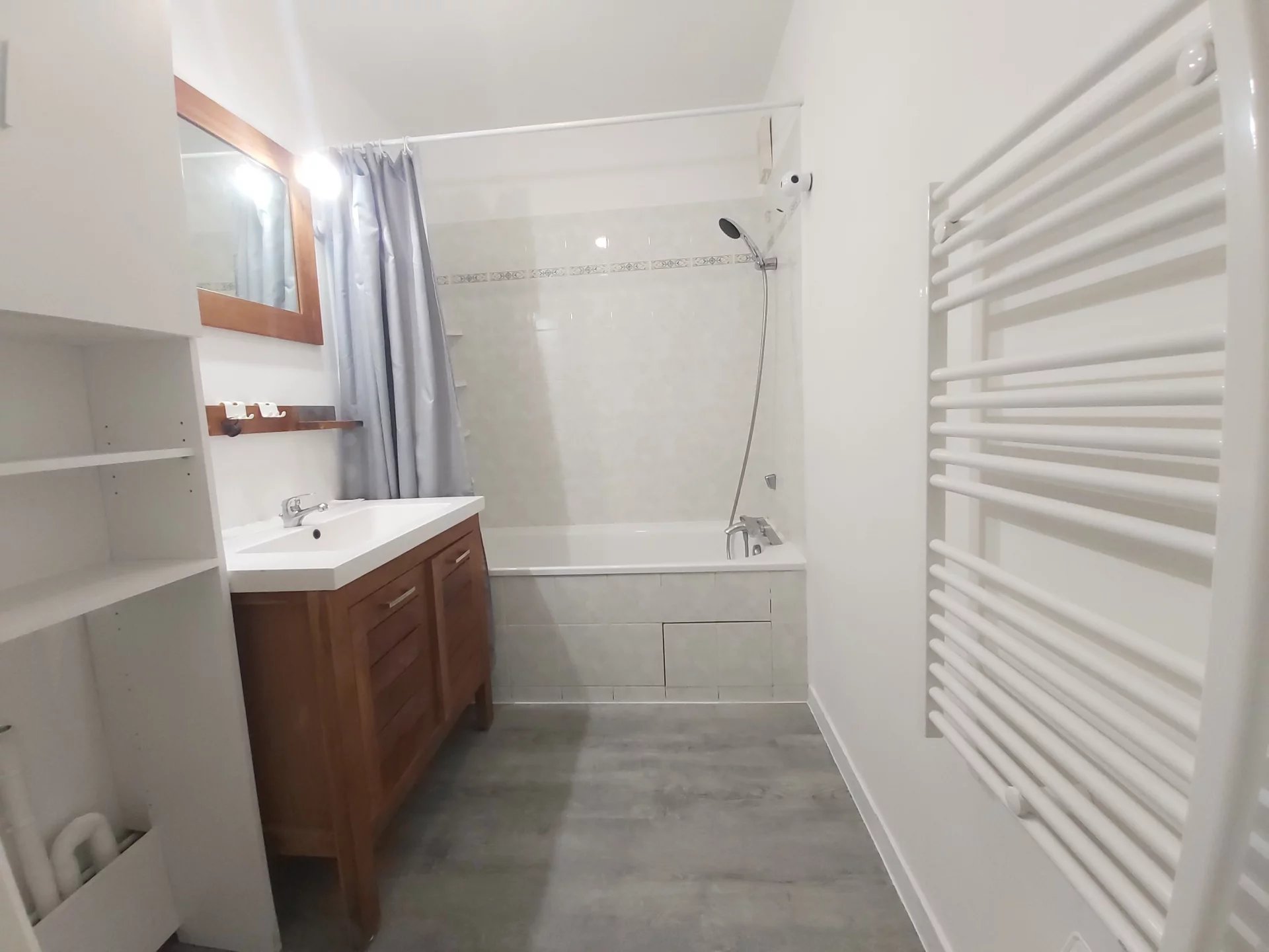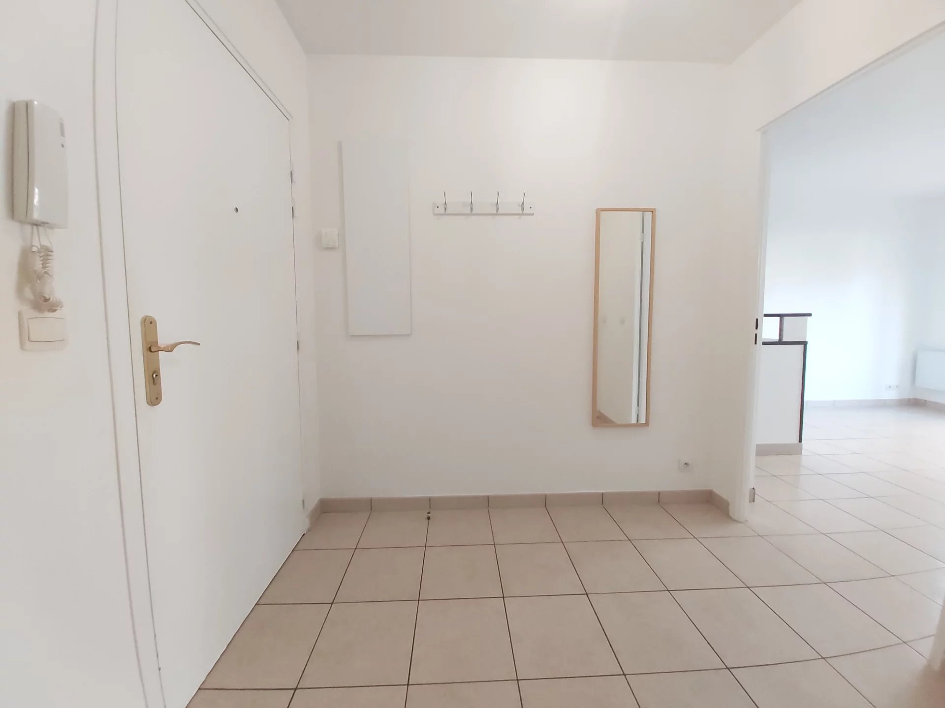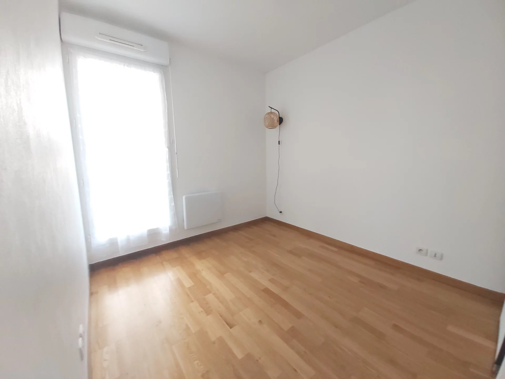 Mignon 2 pièces comprenant une entrée, cuisine aménagée, séjour avec terrasse, chambre, salle de bains, toilette. Parking privé. A MOINS DE 12 MN A PIED DU RER E / PROCHE TOUTES COMMODITÉS ! Revenu minimum mensuel net : 2 400 €