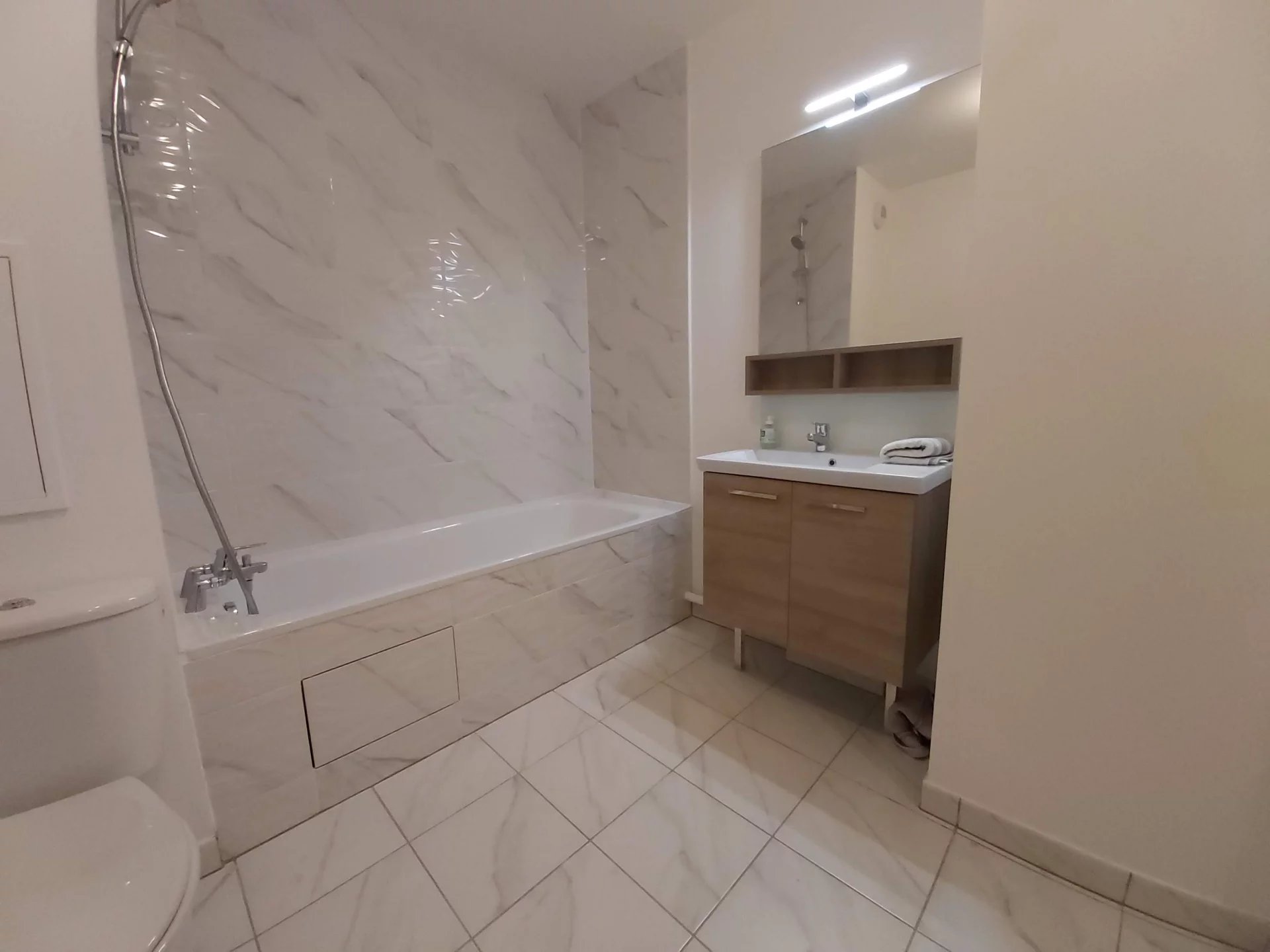 Bel appartement de type F2 comprenant une entrée, une cuisine aménagée, un séjour, une chambre, une salle de bains avec toilette, un balcon. Parking en sous sol. A MOINS DE 8 MN A PIED DE LA GARE ET DU CENTRE VILLE. Compris dans les charges chauffage, eau froide et chaude. Revenu minimum demandé : 2 415 euros net / mois