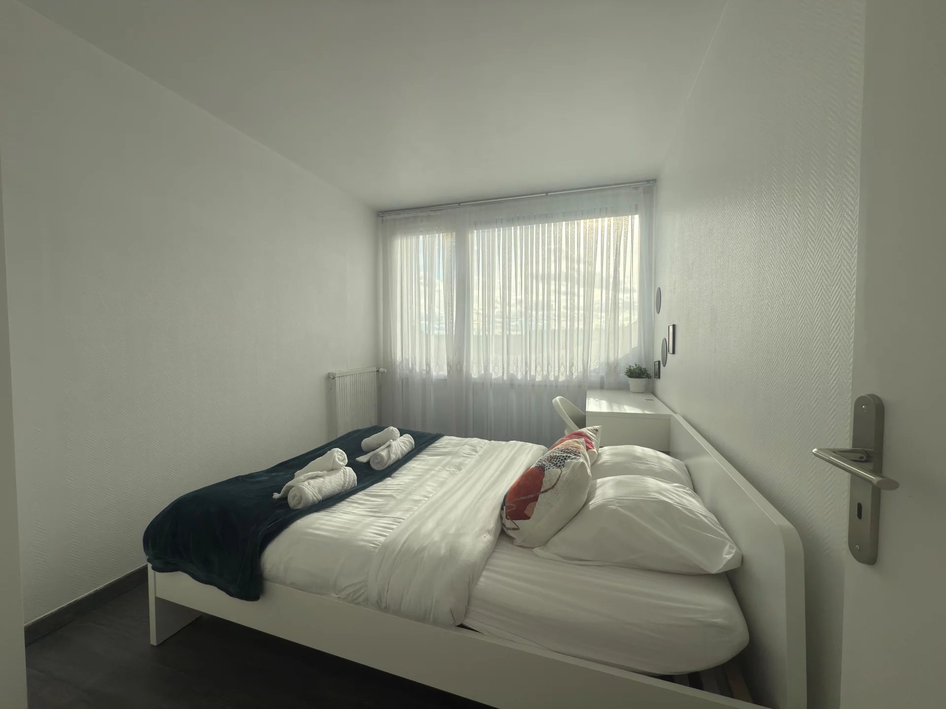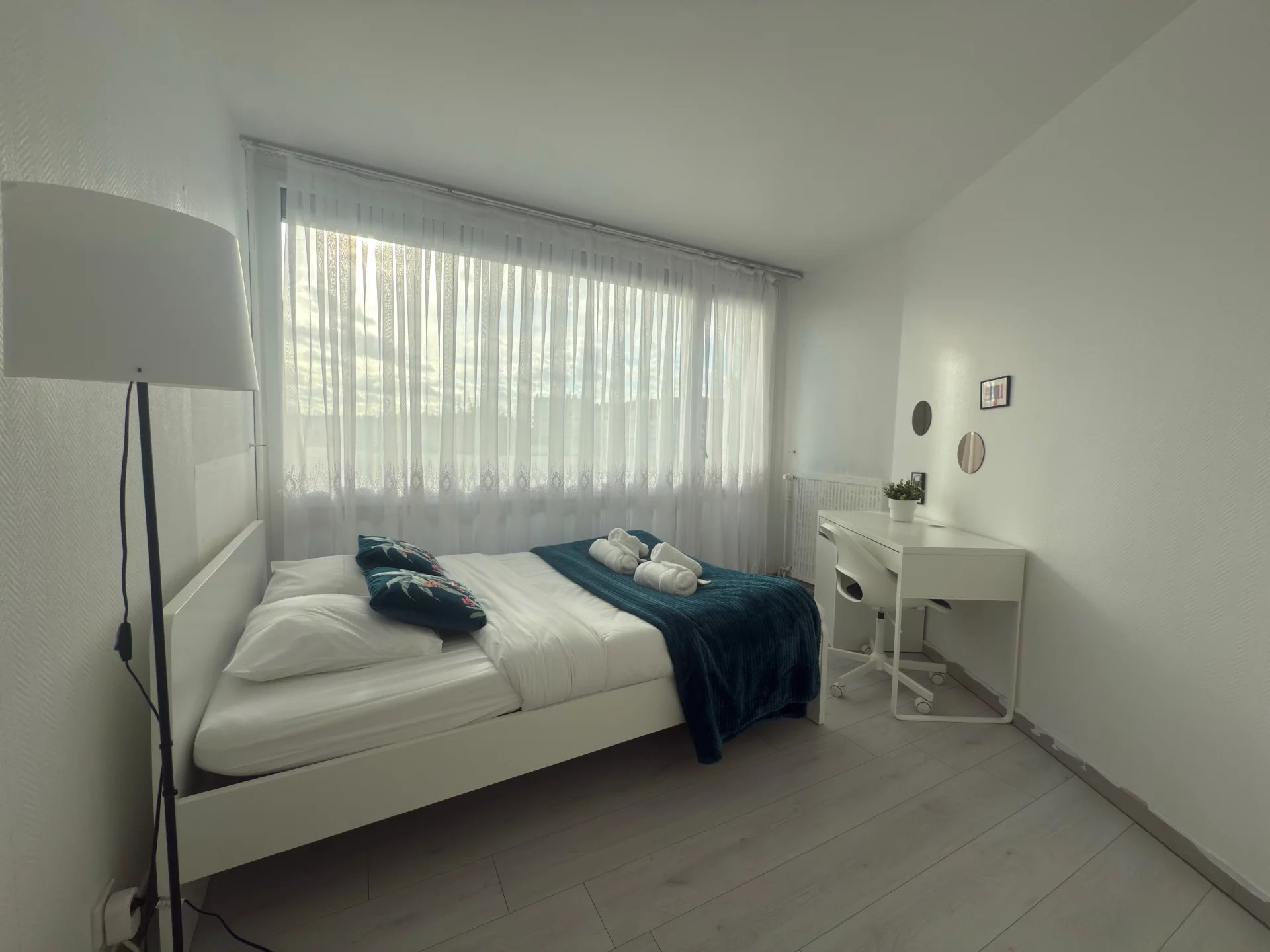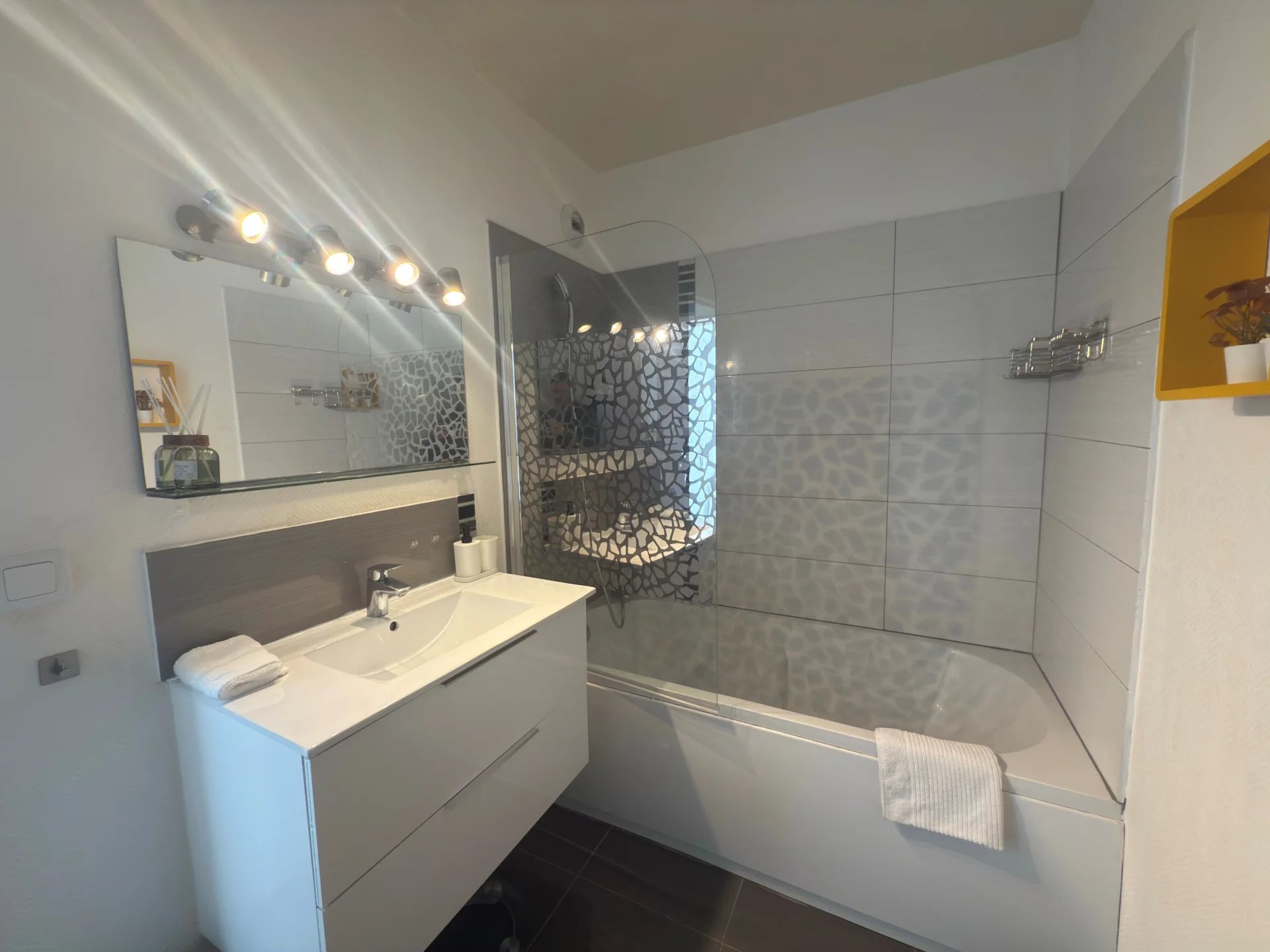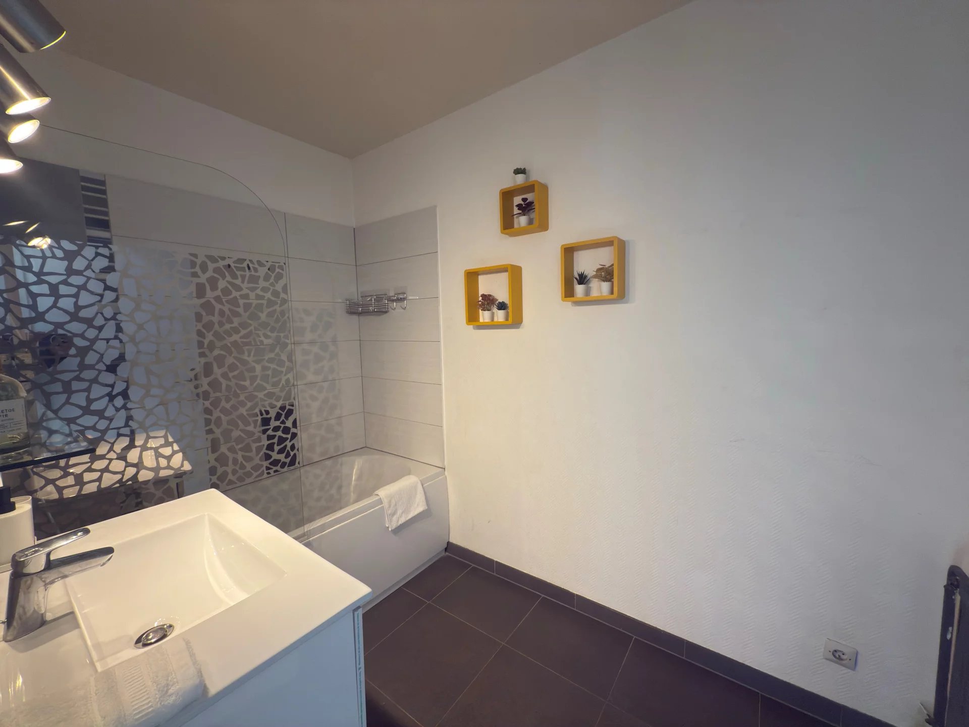 Composé d'une entrée avec placard, une cuisine moderne aménagée et équipée, 4 chambres, un séjour lumineux traversant avec deux balcons, un dressing, une buanderie, une salle de bains avec baignoire, toilette.