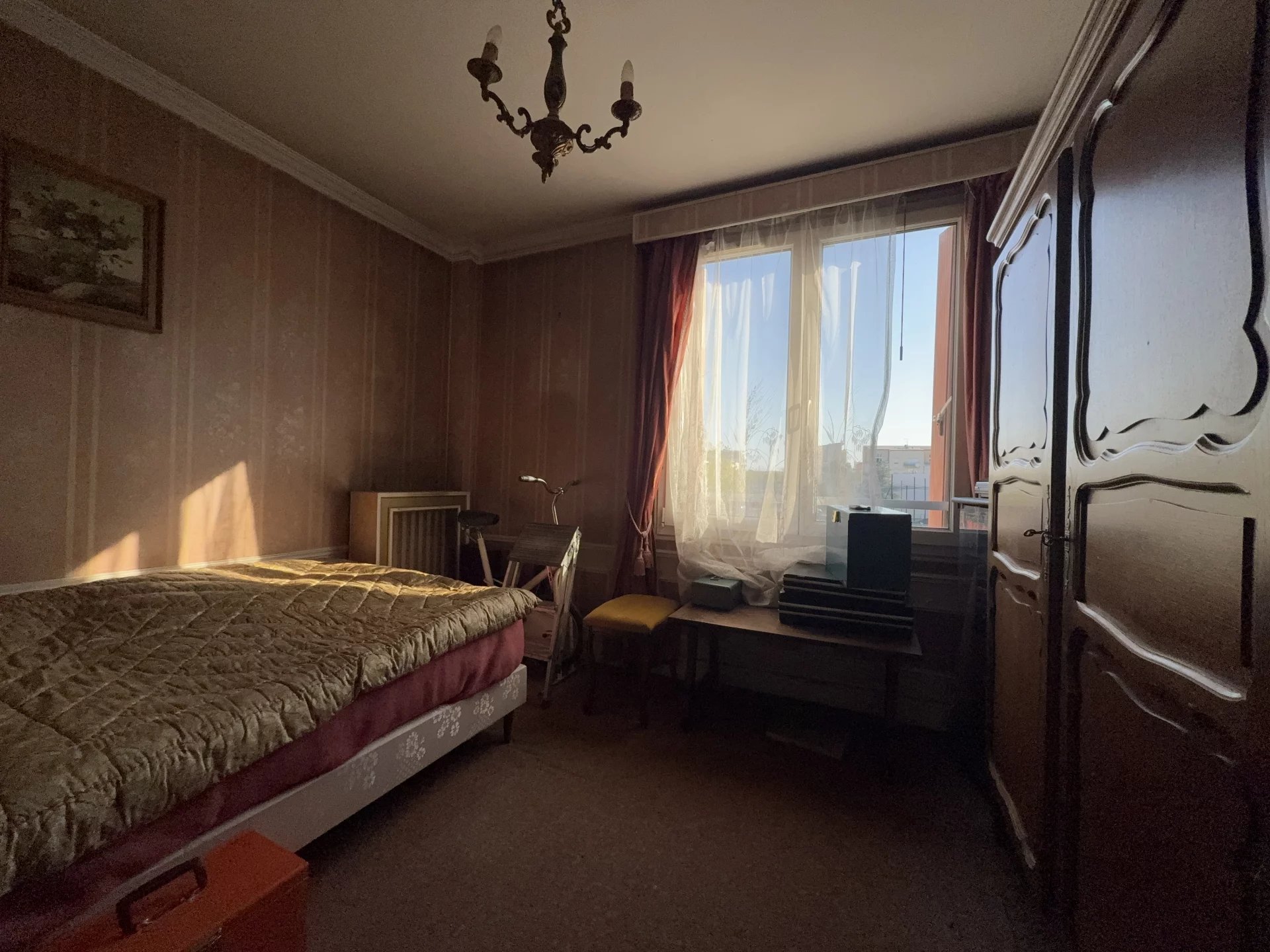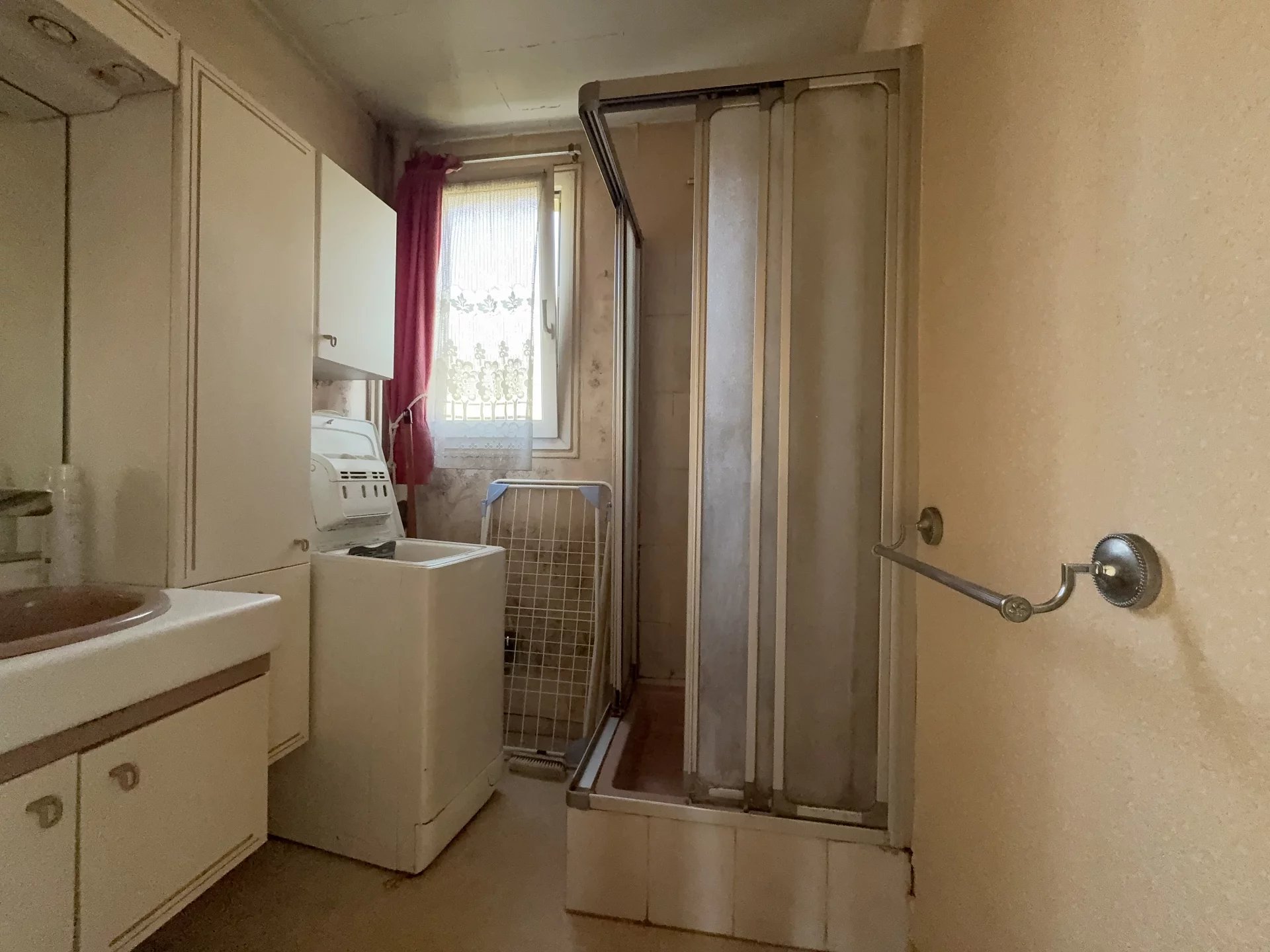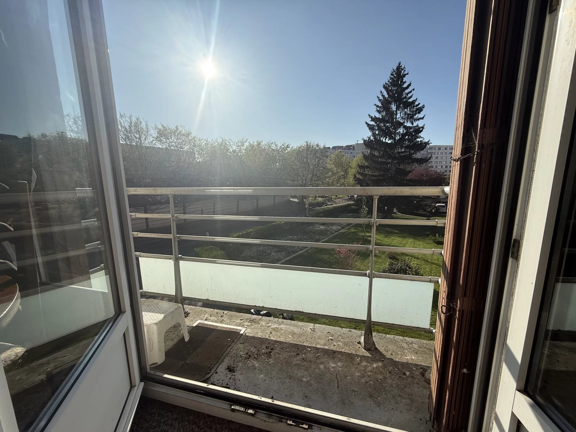 Un appartement de type F3 de + de 50 m² comprenant une entrée avec placard, une cuisine aménagée, un séjour donnant sur un petit balcon avec vue sur jardin, deux chambres avec placards, un dégagement, un toilette séparé, une salle d'eau avec fenêtre.