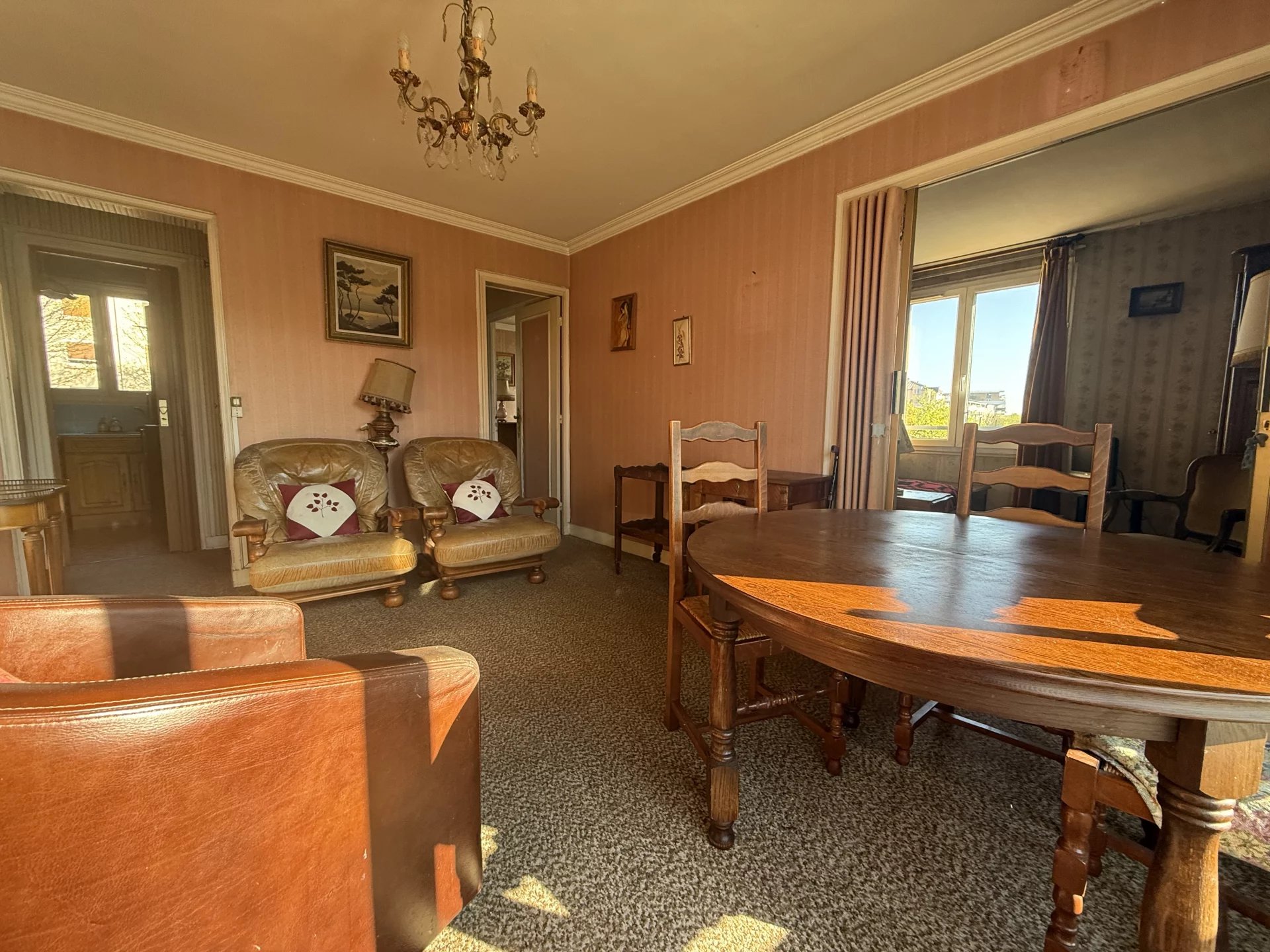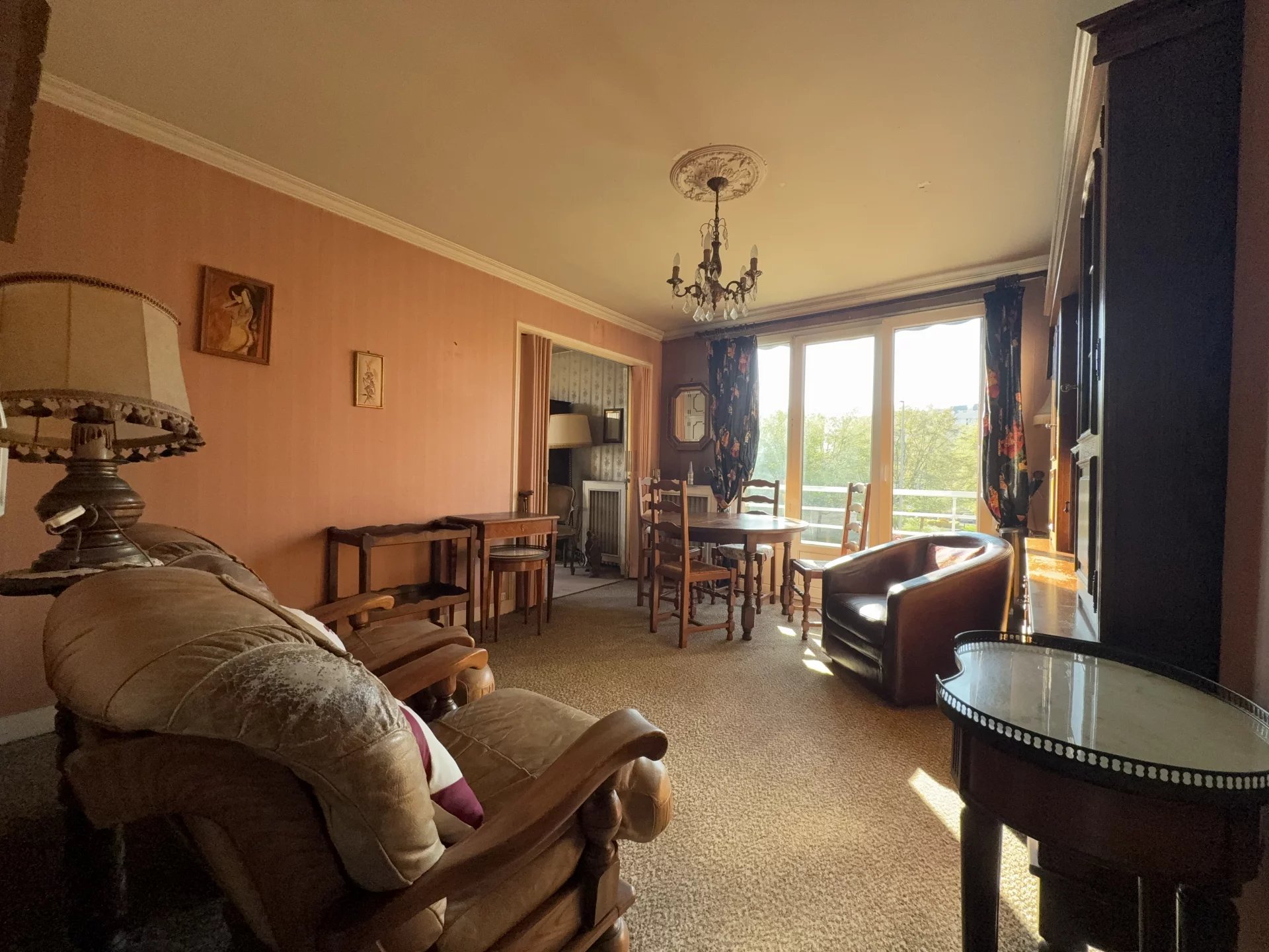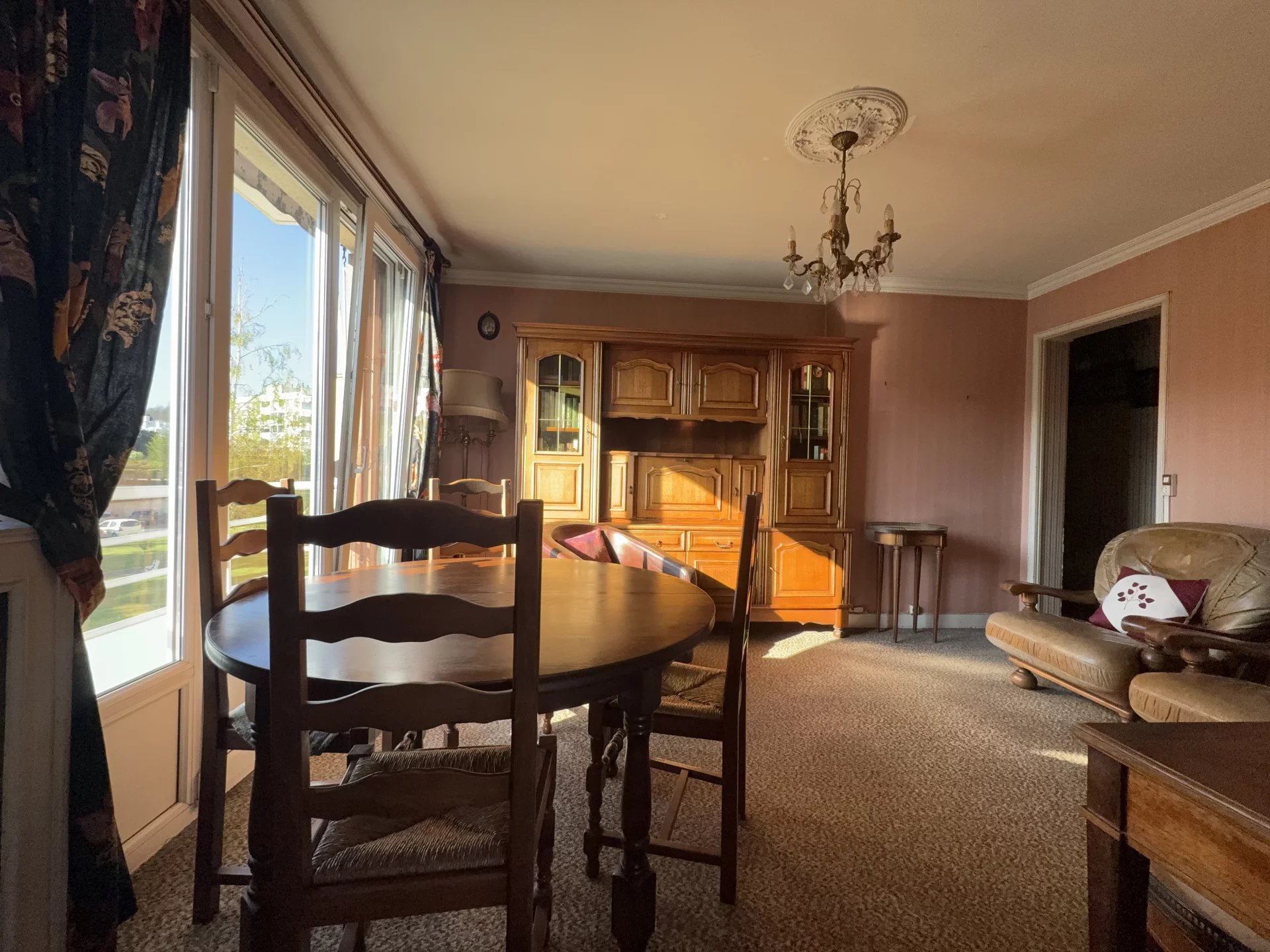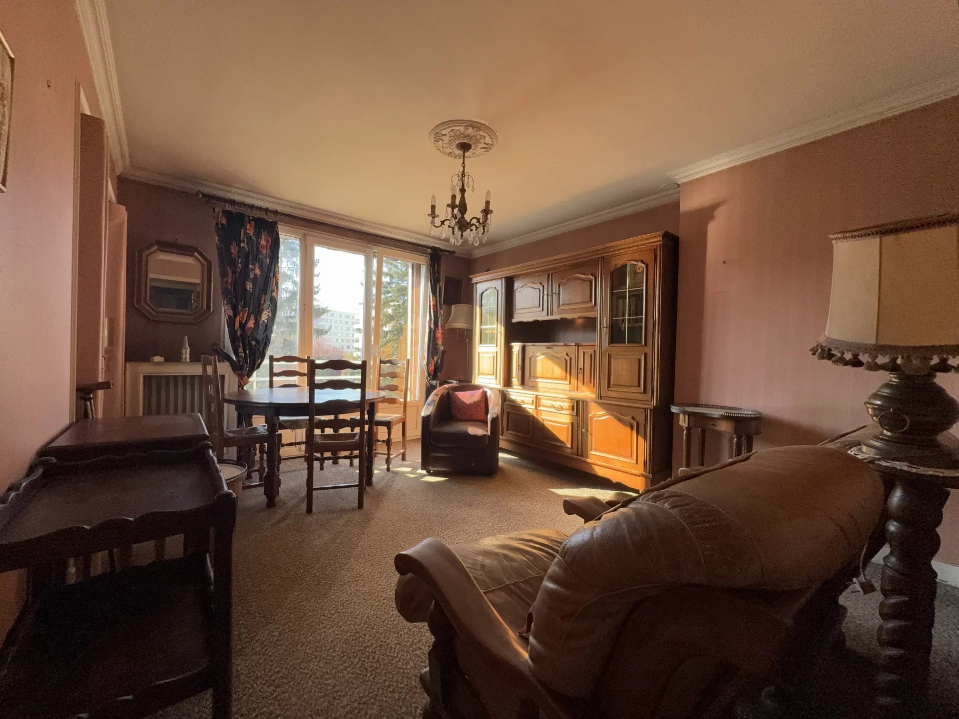 Un appartement de type F3 de + de 50 m² comprenant une entrée avec placard, une cuisine aménagée, un séjour donnant sur un petit balcon avec vue sur jardin, deux chambres avec placards, un dégagement, un toilette séparé, une salle d'eau avec fenêtre.