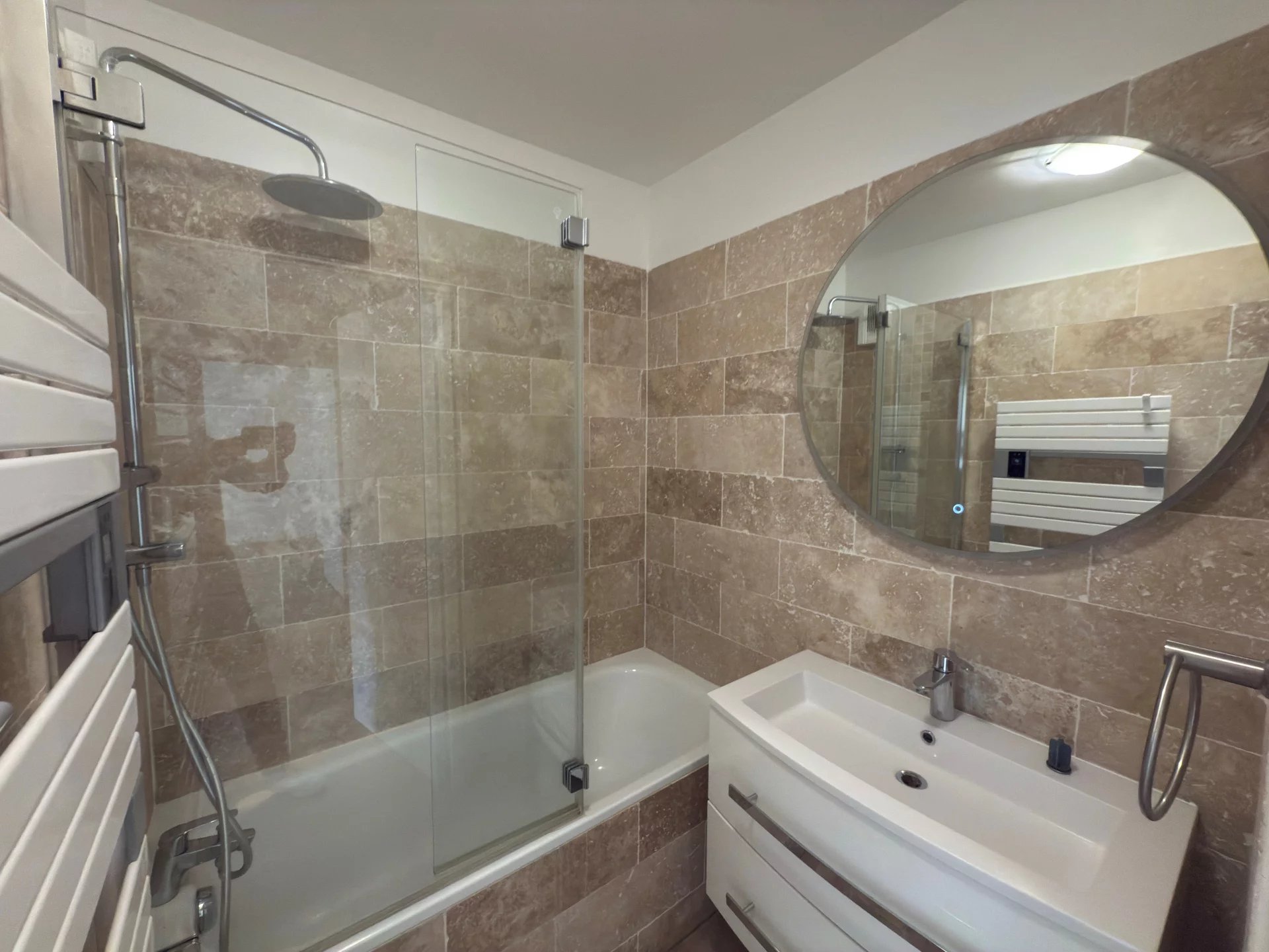 Très beau 2 pièces comprenant entrée, cuisine aménagée, séjour, dégagement, chambre, salle de bains, toilette, placards et terrasse de 18,5 m² exposée Sud. Un parking en sous sol. PROPRE ET CALME ! Revenus demandés : 2750 € net/mois