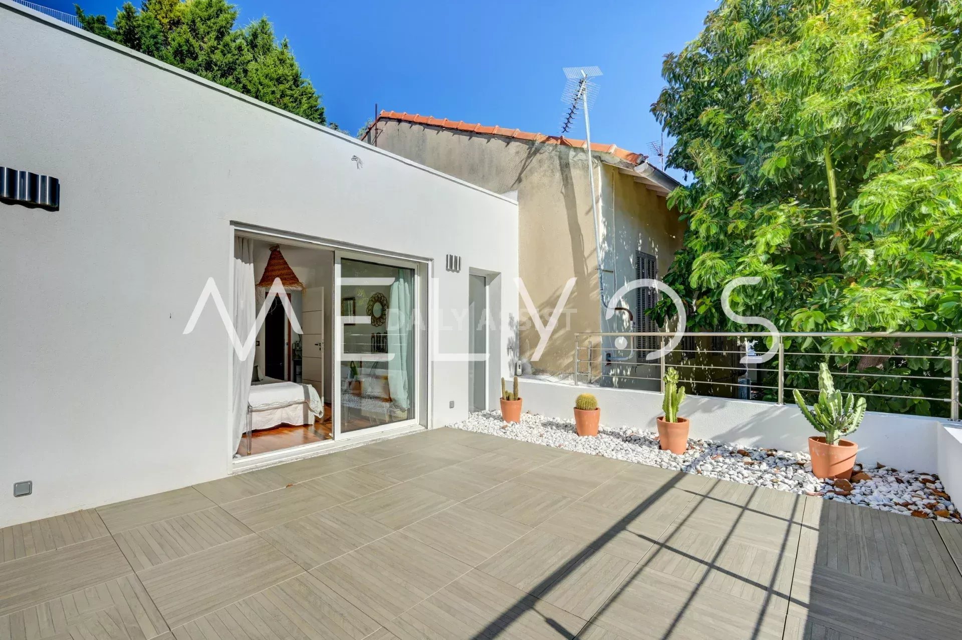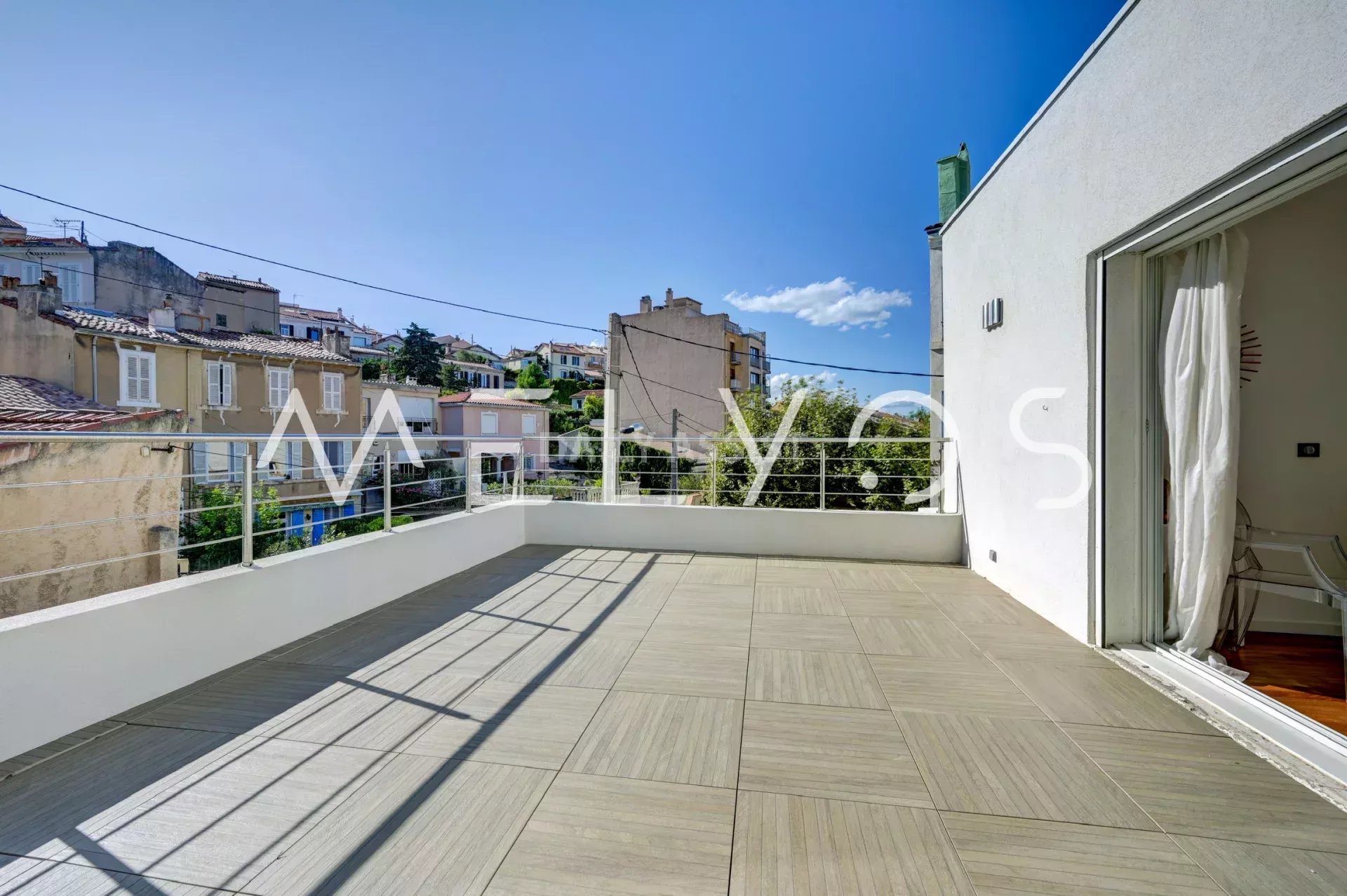 Cette magnifique maison de 110 mètres carrés située dans le charmant quartier d'Endoume à Marseille offre un cadre de vie exceptionnel, à proximité de toutes les commodités de la ville. Avec ses 90 mètres carrés de terrasse, elle combine à la perfection le confort intérieur et les espaces extérieurs ensoleillés. Au rez-de-chaussée, vous serez accueilli par un vaste séjour lumineux, comprenant une cuisine américaine entièrement équipée, ainsi qu'un espace salle à manger, le tout ouvert sur une grande terrasse ensoleillée. Cette terrasse offre à la fois un espace salon détente et un coin repas, parfait pour profiter du climat méditerranéen. Le rez-de-chaussée comprend également une buanderie pratique, une chambre confortable et un WC avec lave-main pour plus de commodité. À l'étage, deux chambres spacieuses vous attendent, dont une bénéficiant d'une terrasse privative et d'un dressing. Vous trouverez également une salle de bain équipée d'une baignoire et d'un WC. Pour votre confort, la maison est équipée d'un chauffage électrique et de la climatisation, assurant des températures agréables toute l'année. De plus, elle dispose d'une alarme pour votre sécurité, ainsi que de fenêtres en double vitrage pour une isolation phonique et thermique optimale. Enfin, un atout précieux, un box fermé en sous-sol est inclus, offrant un espace sécurisé pour stationner votre voiture. Cette maison représente une opportunité unique de vivre dans le quartier prisé d'Endoume à Marseille, offrant un espace de vie spacieux, lumineux et fonctionnel, avec une terrasse ensoleillée pour profiter pleinement de la douceur du climat méditerranéen.