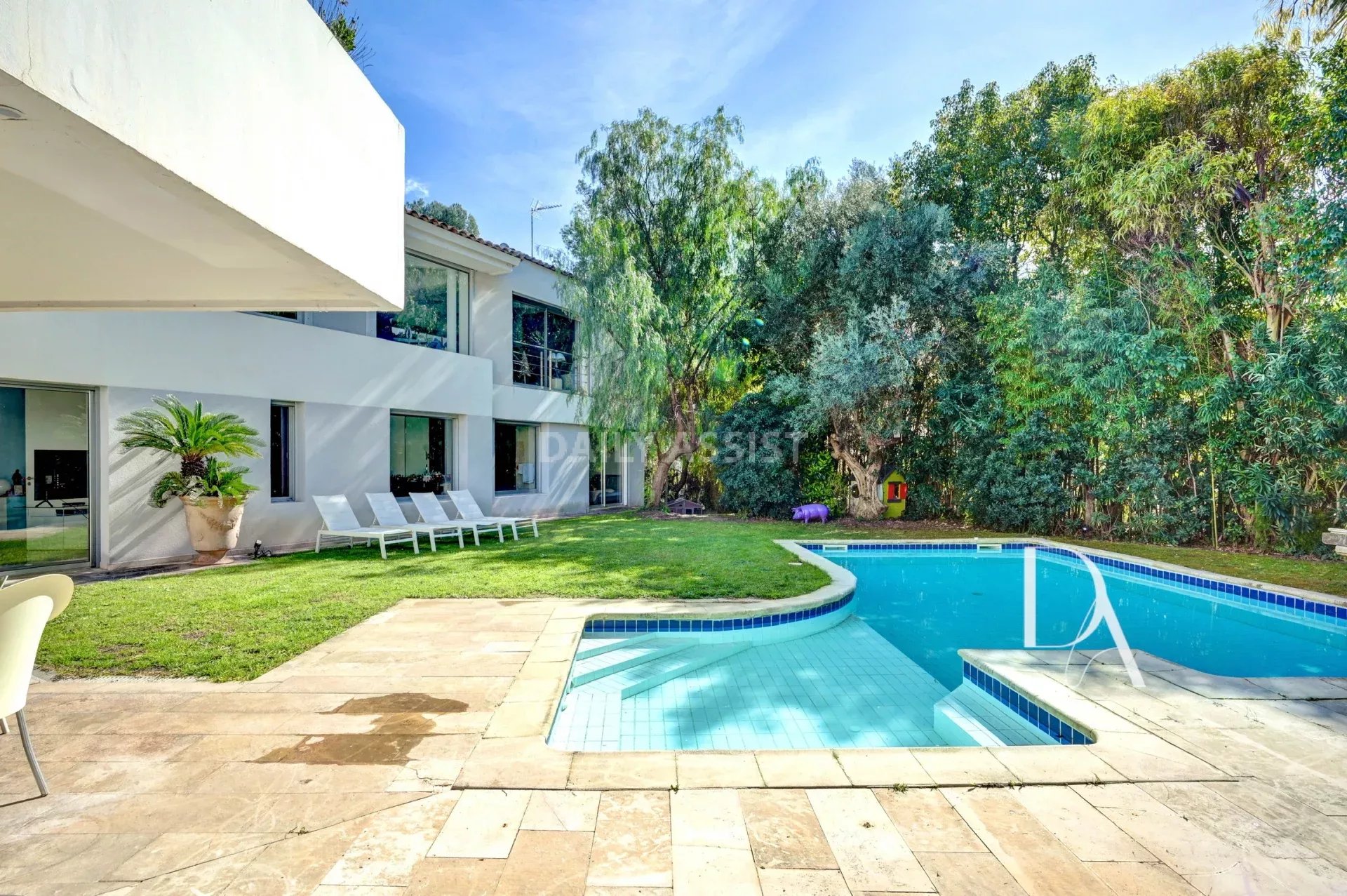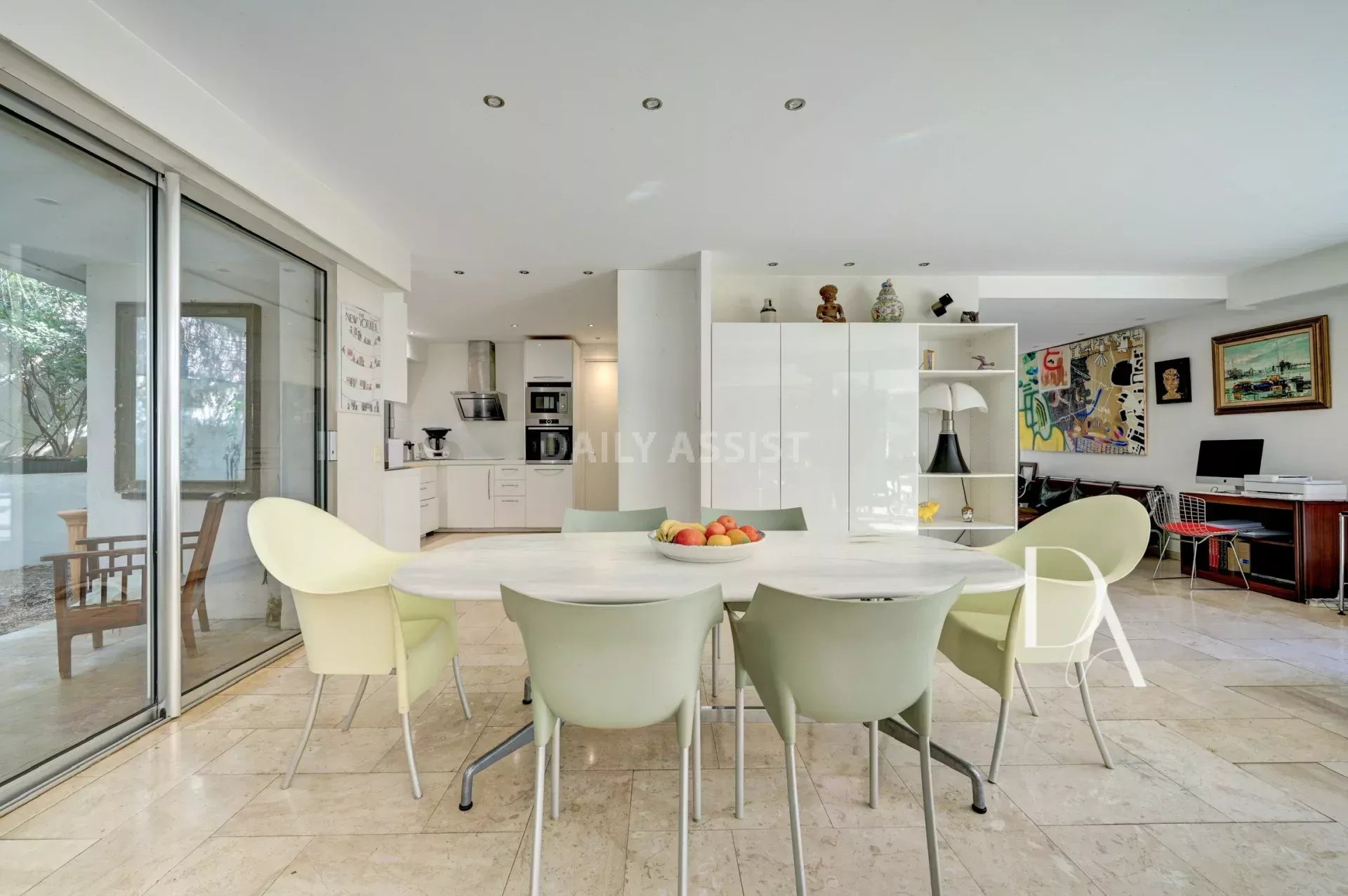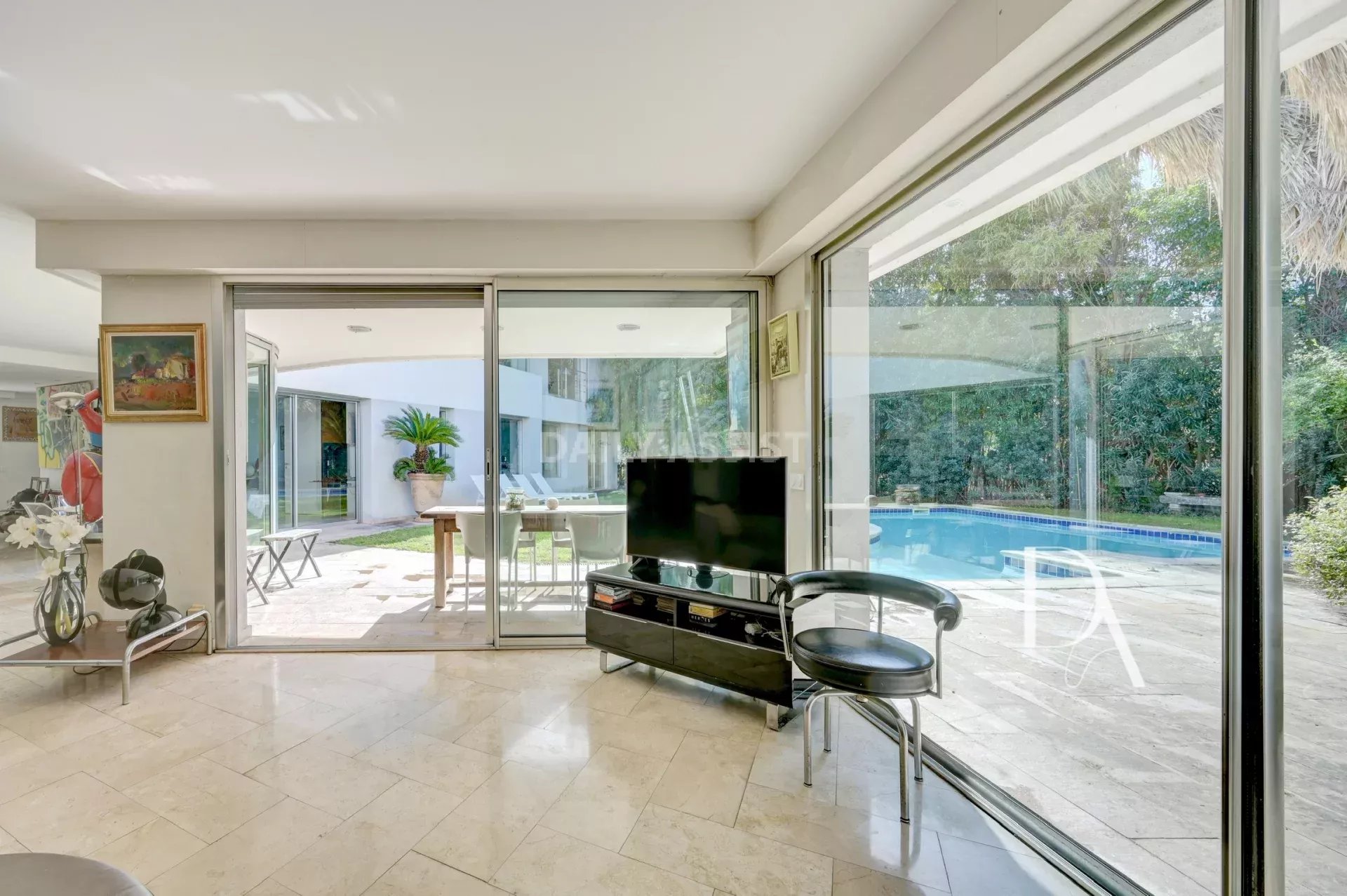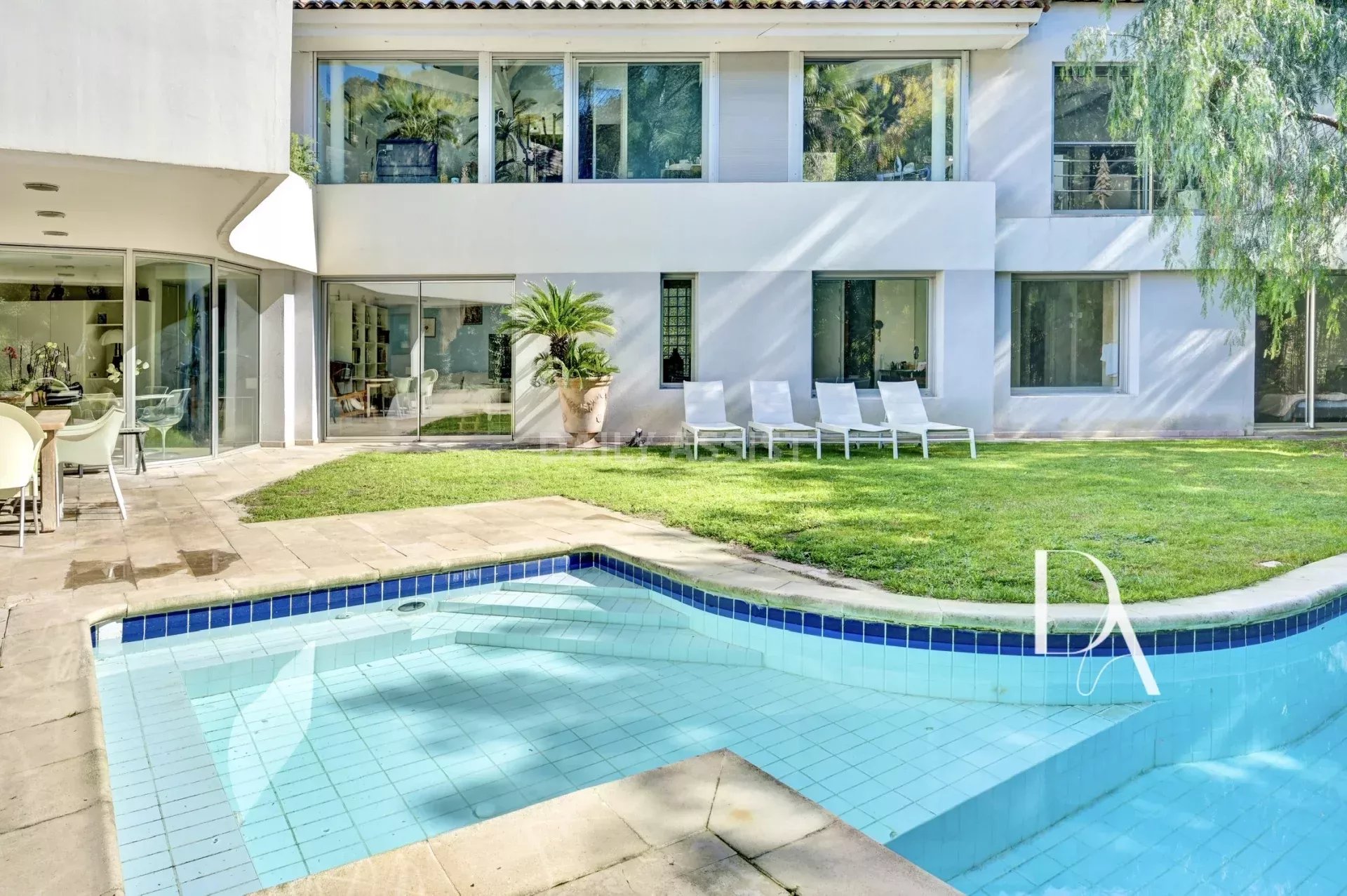 Lot 1 (183,24 m²) : Un appartement T5 en rez-de-jardin baigné de lumière composé d'une vaste entrée, un séjour spacieux avec cuisine ouverte, un espace salle à manger, l'ensemble ouvrant sur une grande terrasse ensoleillée, le jardin et la piscine.