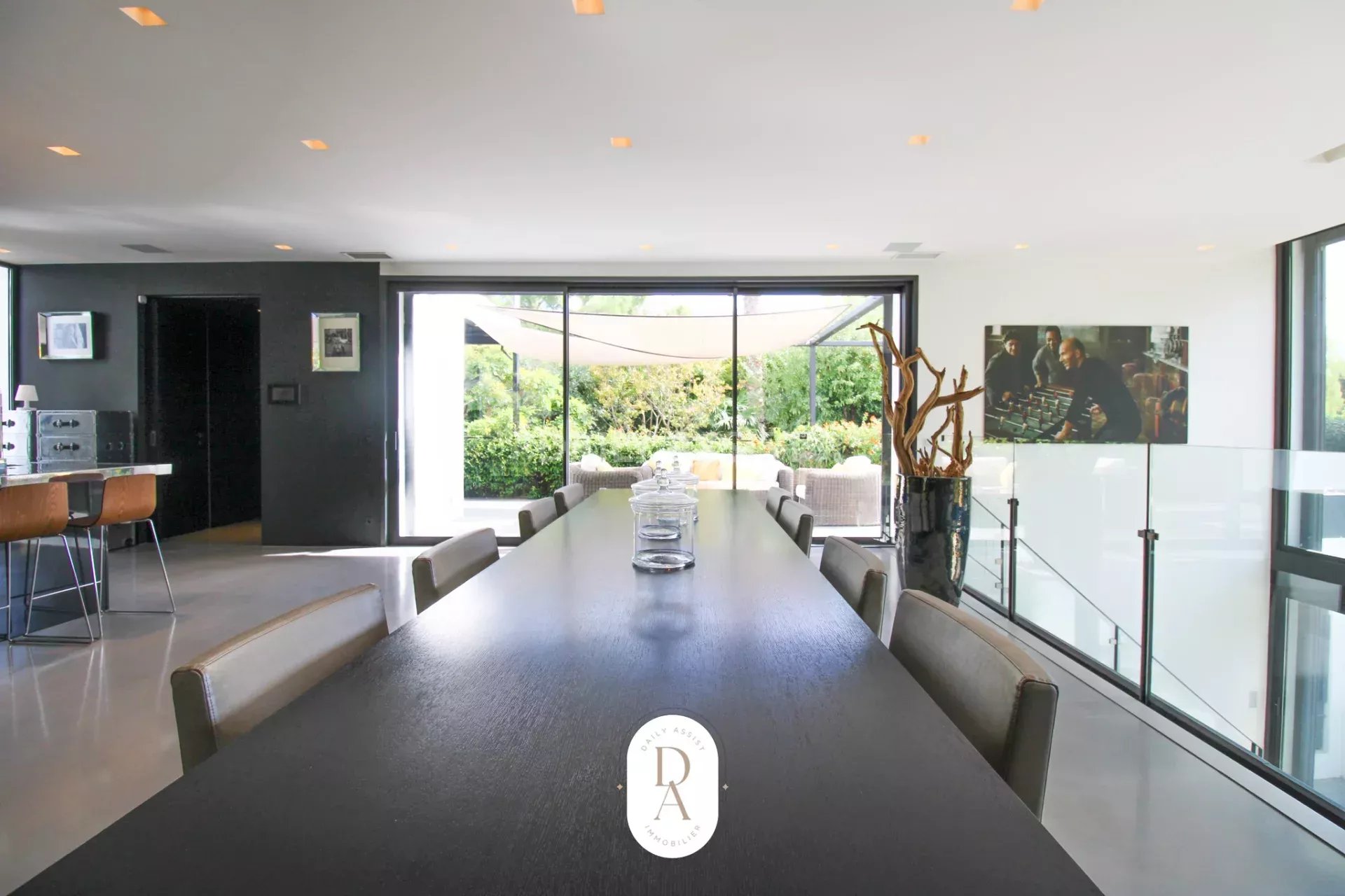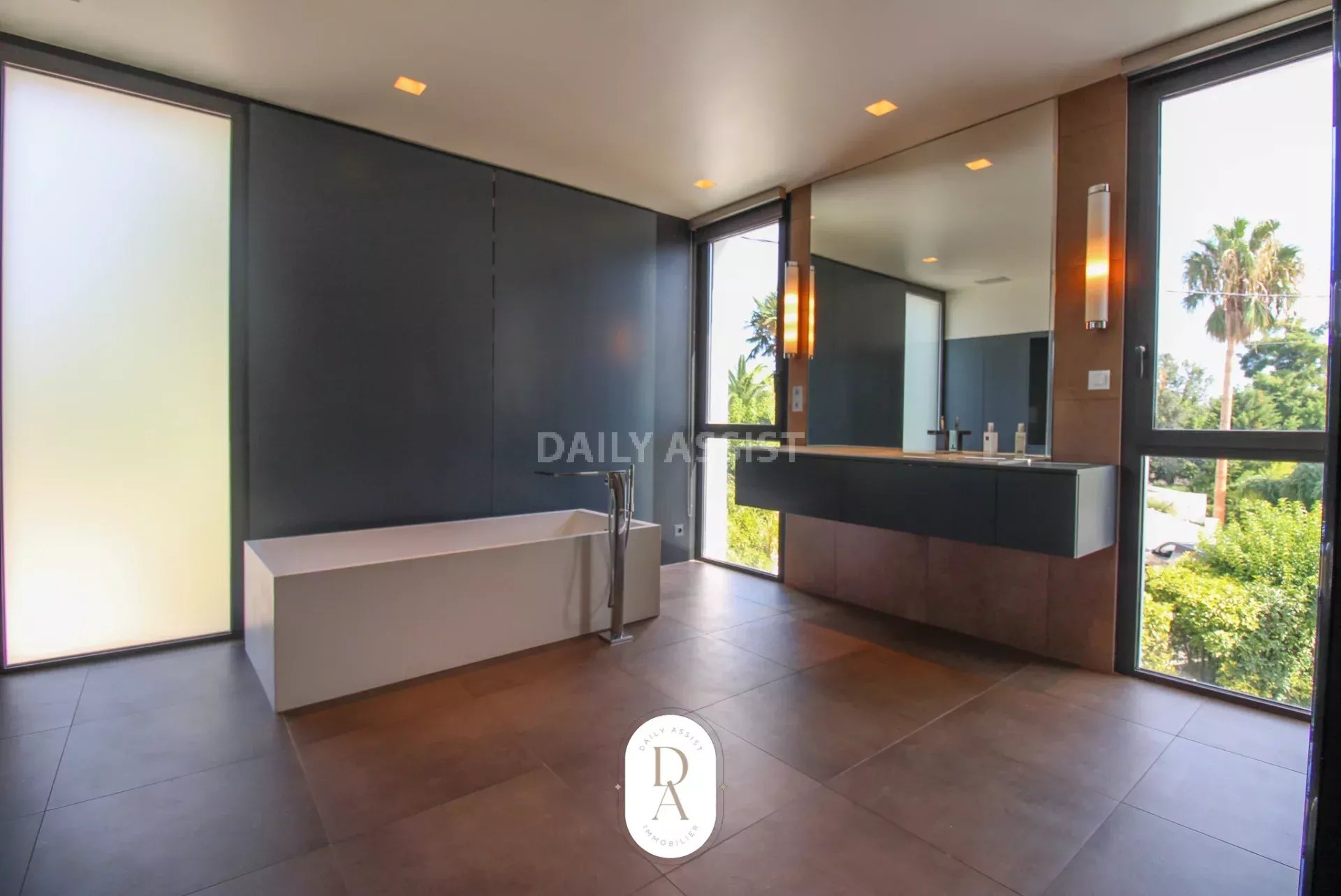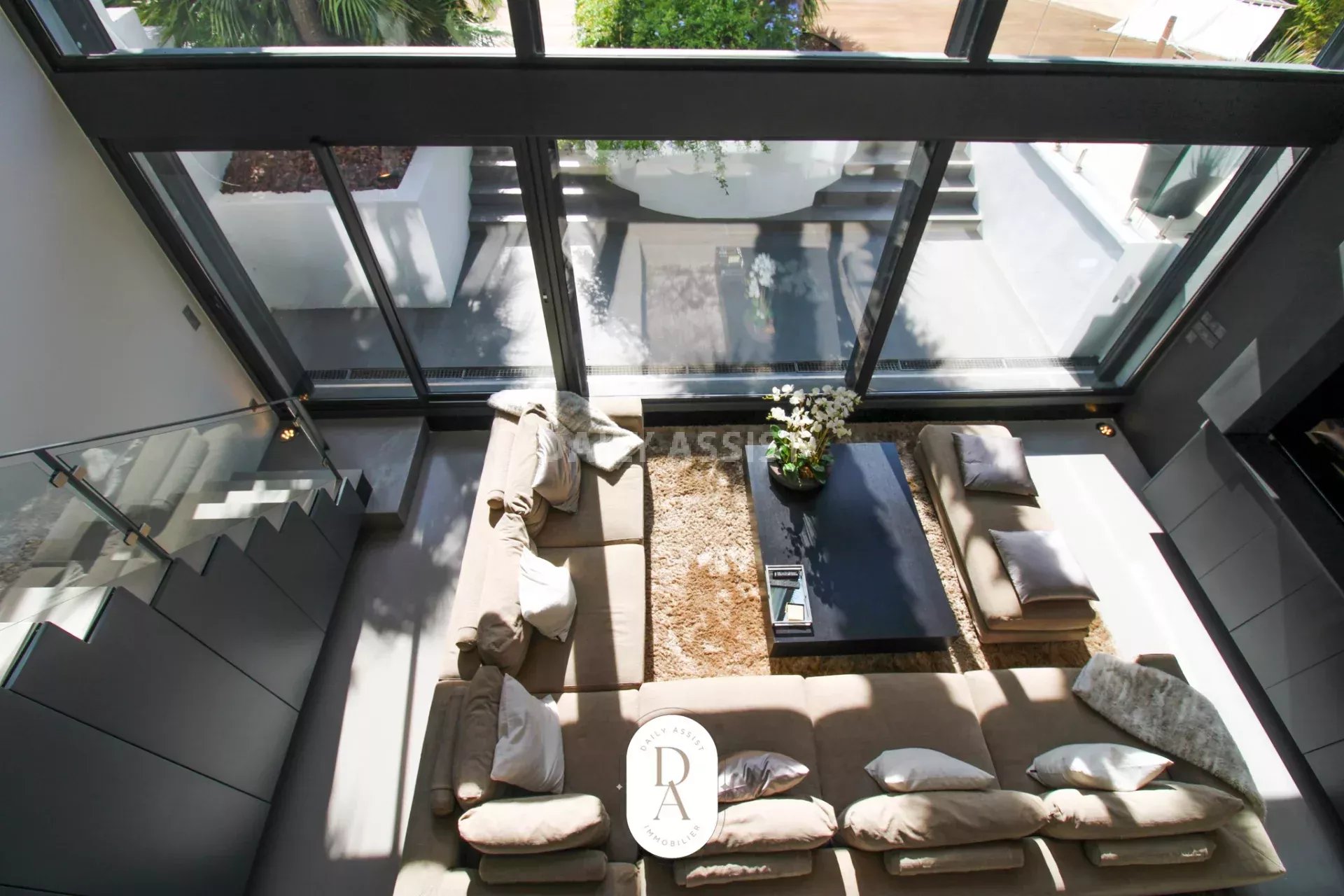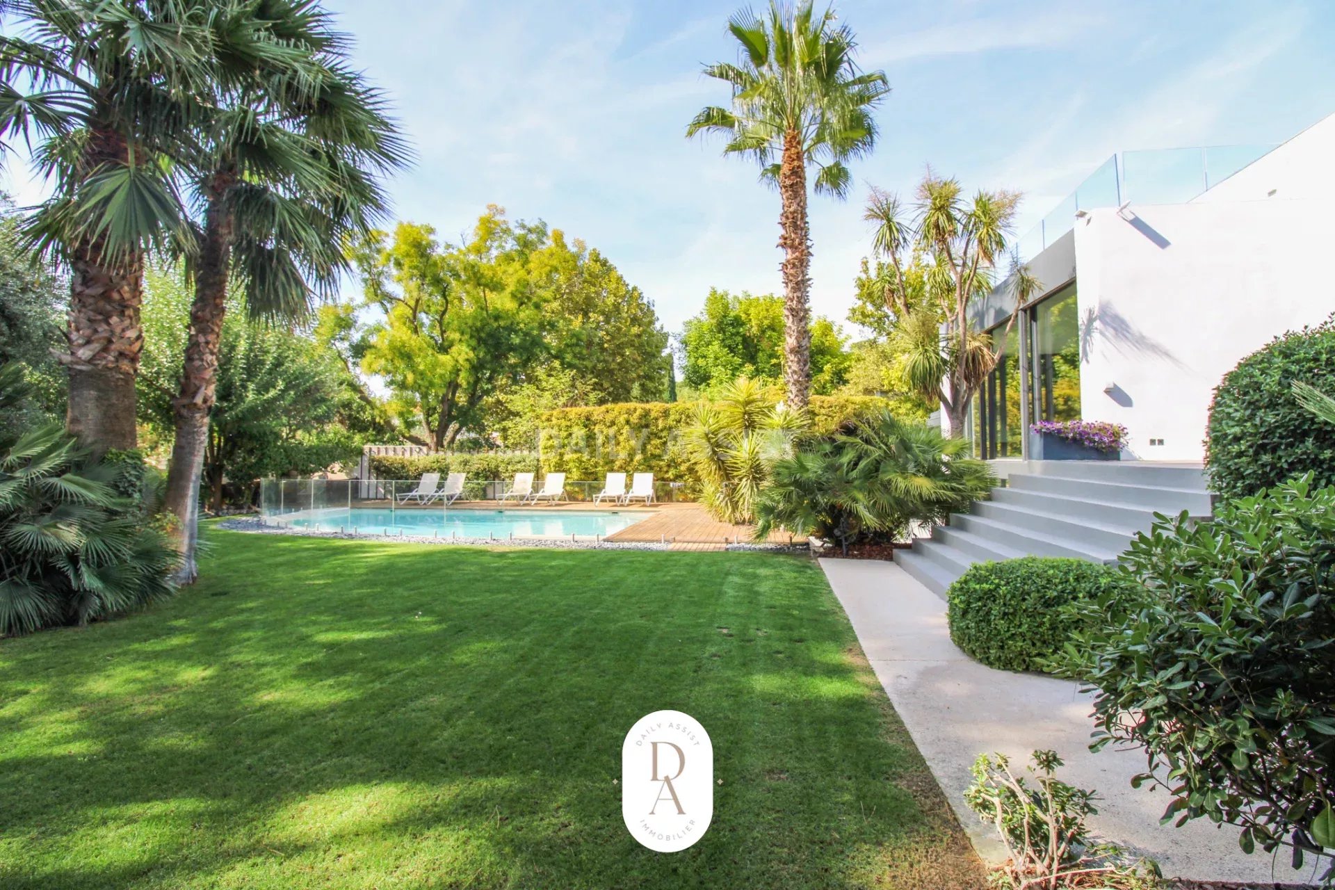 EXCLUSIVITE. LA CALIFORNIENNE est une villa contemporaine dans une copropriété sécurisée très recherchée du 8ème arrondissement, Le Parc Marveyre. Située au bout d'une allée, vous serez charmés dès l'entrée dans le joli jardin arboré par son calme et sa sérénité. Une grande pièce de vie de 58m2 très lumineuse grâce à ses immenses baies vitrées. L'une d'elle s'ouvre sur une belle terrasse ombragée. L'autre, de la hauteur de la maison, donne sur le jardin et la piscine. Une très belle cuisine avec îlot central est aménagée de très nombreux rangements qui vous conduisent sur l'arrière-cuisine et la buanderie. Un bel escalier vous amène en bas sur un salon et une master room (séparée du salon par une porte accordéon isolée phoniquement) son grand dressing et sa salle de bain et une chambre d'amis/bureau. La baie vitrée vous amène sur le jardin, la piscine et une salle de sport de 20m2. Le dernier étage abrite deux chambres de 16m2 qui bénéficient d'un grand solarium, et une belle salle de bain avec baignoire et douche, ainsi que d'un espace lecture/bureau. Le terrain de 1436m2 est un havre de paix. Entièrement engazonné, il est complanté de beaux arbres et d'immenses palmiers. Enfin, une jolie piscine sécurisée par des panneaux de verre et sa plage de bois vous invitera au farniente. Toute la CALIFORNIENNE est domotisée, et vous offrira toute la sécurité et le confort dont vous rêvez.