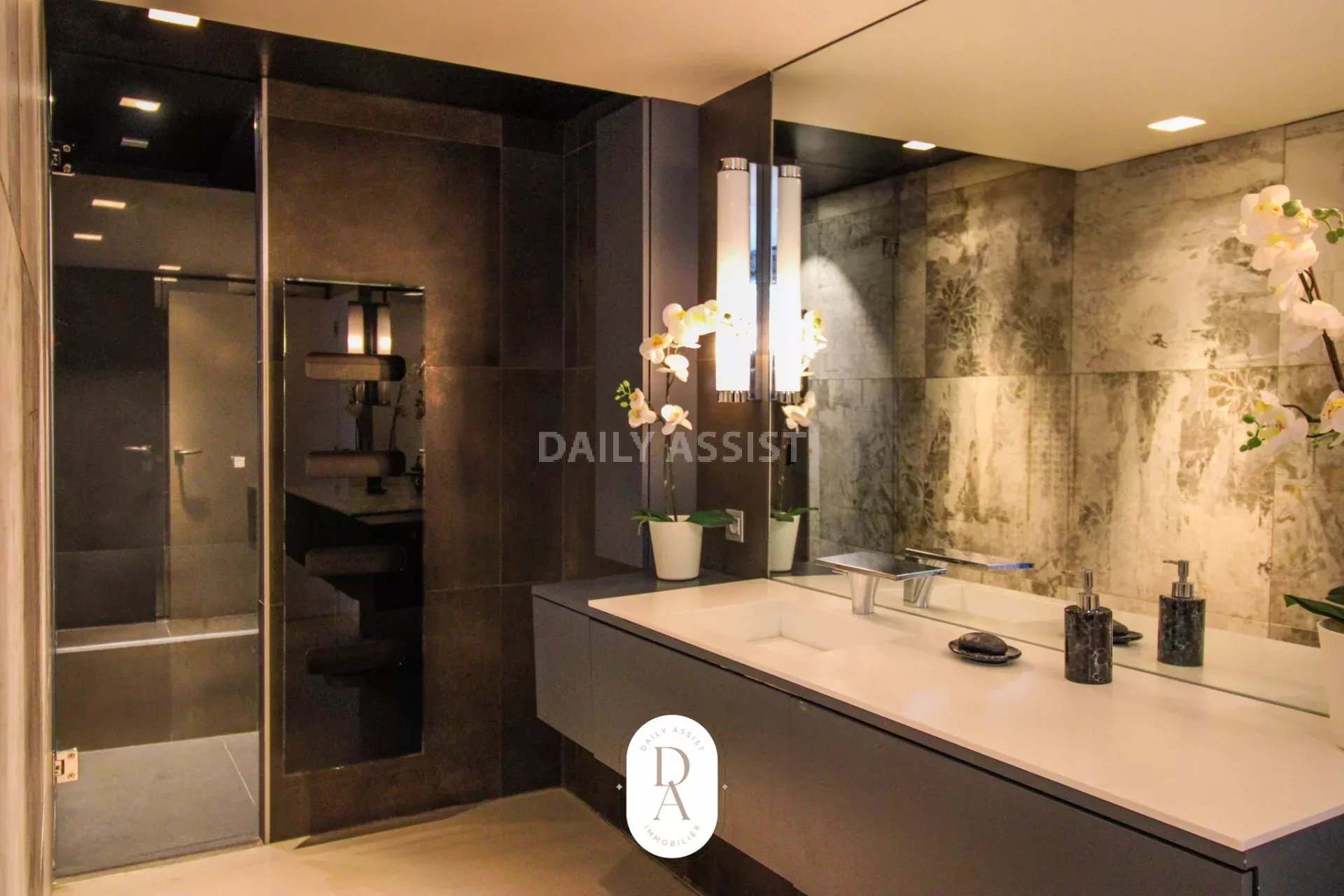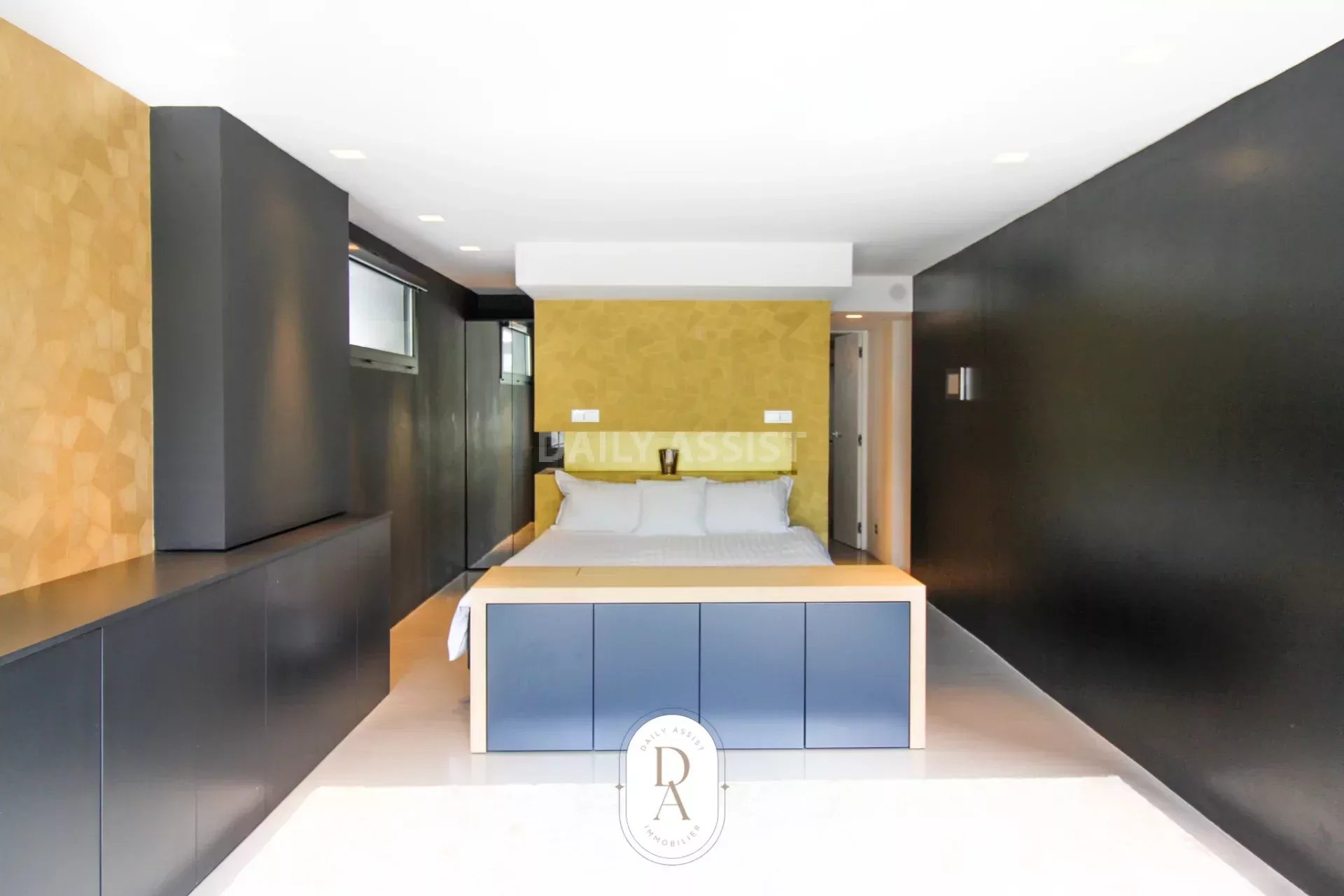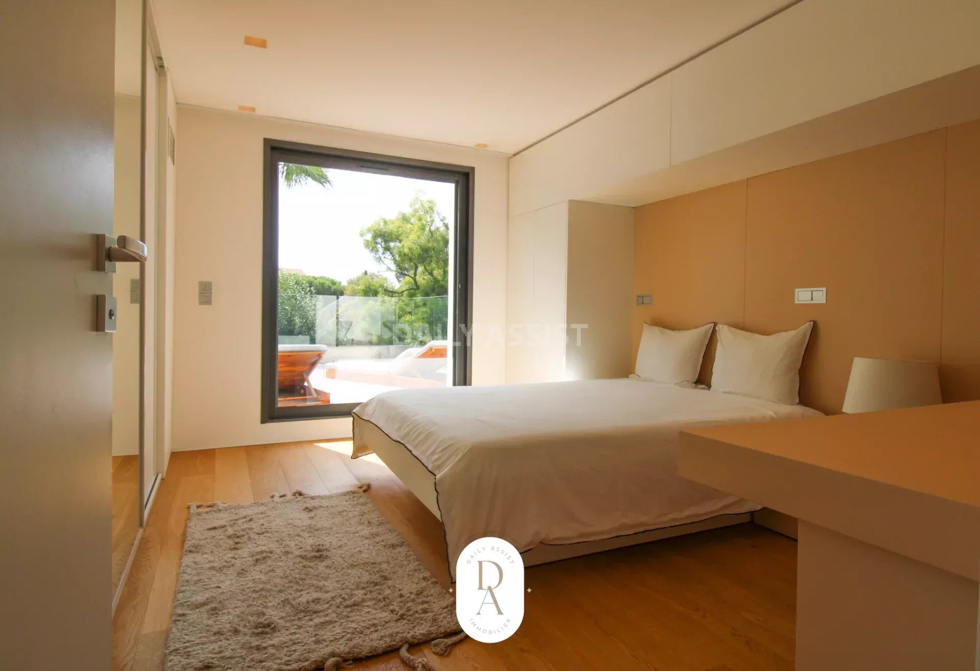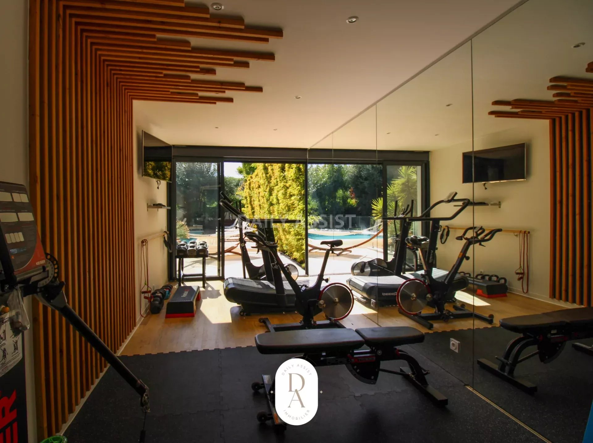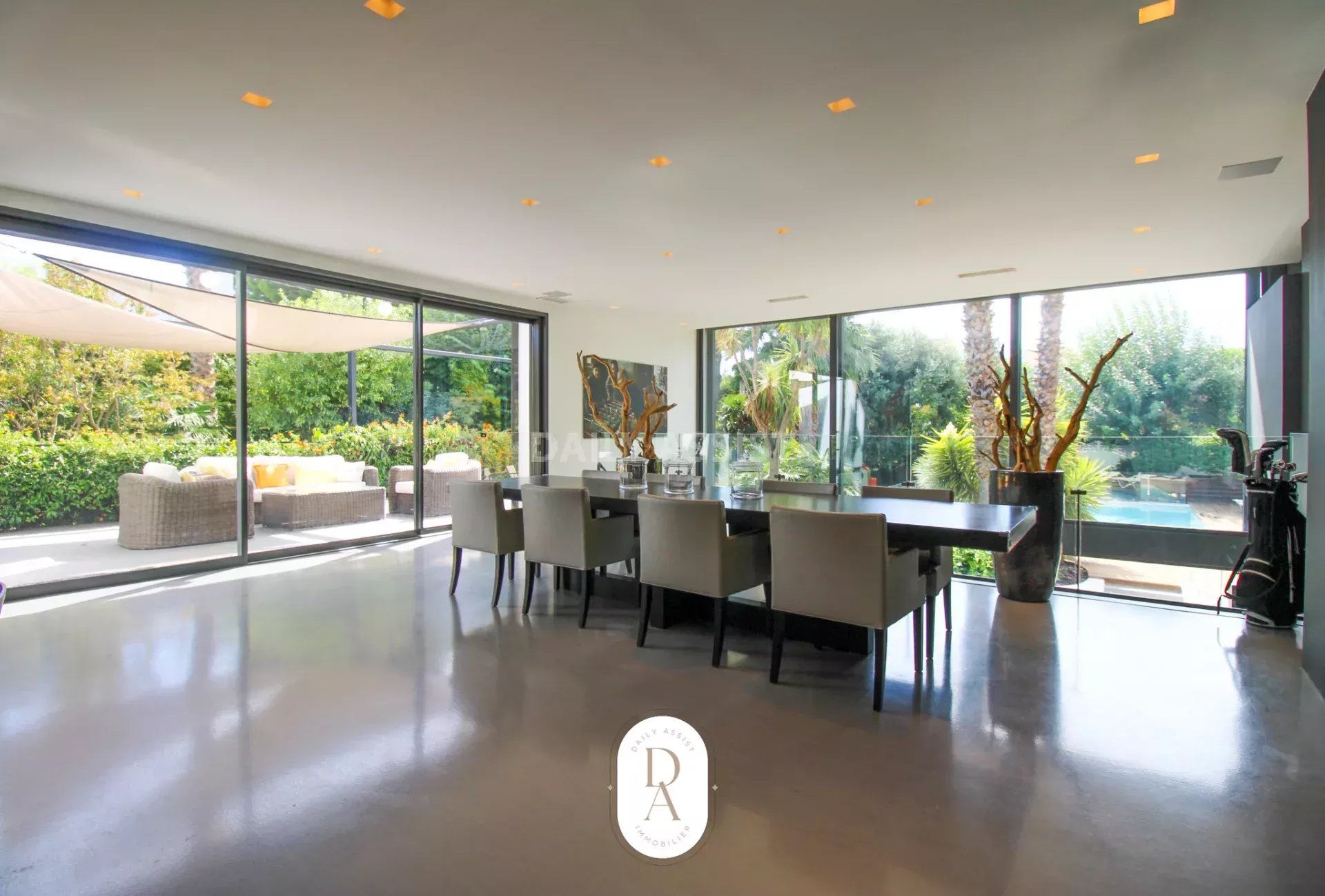 EXCLUSIVITE. LA CALIFORNIENNE est une villa contemporaine dans une copropriété sécurisée très recherchée du 8ème arrondissement, Le Parc Marveyre. Située au bout d'une allée, vous serez charmés dès l'entrée dans le joli jardin arboré par son calme et sa sérénité. Une grande pièce de vie de 58m2 très lumineuse grâce à ses immenses baies vitrées. L'une d'elle s'ouvre sur une belle terrasse ombragée. L'autre, de la hauteur de la maison, donne sur le jardin et la piscine. Une très belle cuisine avec îlot central est aménagée de très nombreux rangements qui vous conduisent sur l'arrière-cuisine et la buanderie. Un bel escalier vous amène en bas sur un salon et une master room (séparée du salon par une porte accordéon isolée phoniquement) son grand dressing et sa salle de bain et une chambre d'amis/bureau. La baie vitrée vous amène sur le jardin, la piscine et une salle de sport de 20m2. Le dernier étage abrite deux chambres de 16m2 qui bénéficient d'un grand solarium, et une belle salle de bain avec baignoire et douche, ainsi que d'un espace lecture/bureau. Le terrain de 1436m2 est un havre de paix. Entièrement engazonné, il est complanté de beaux arbres et d'immenses palmiers. Enfin, une jolie piscine sécurisée par des panneaux de verre et sa plage de bois vous invitera au farniente. Toute la CALIFORNIENNE est domotisée, et vous offrira toute la sécurité et le confort dont vous rêvez.