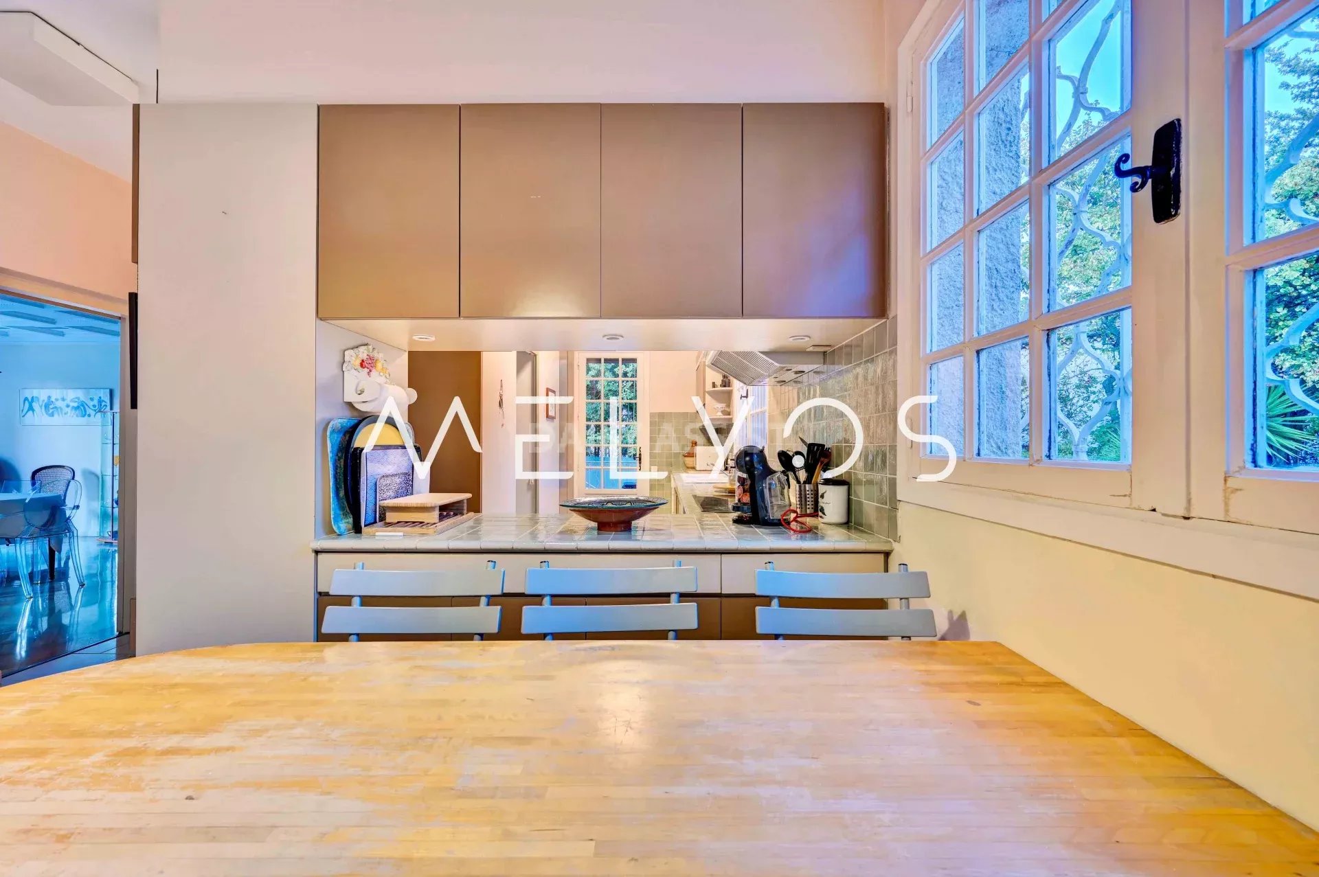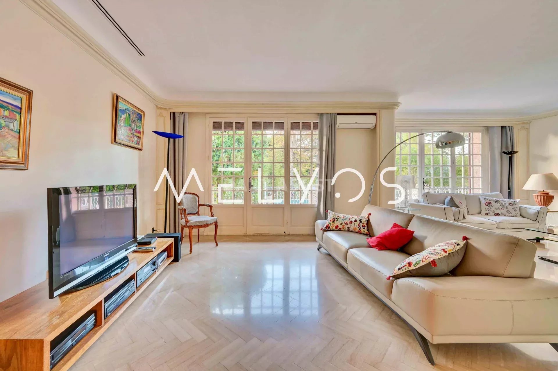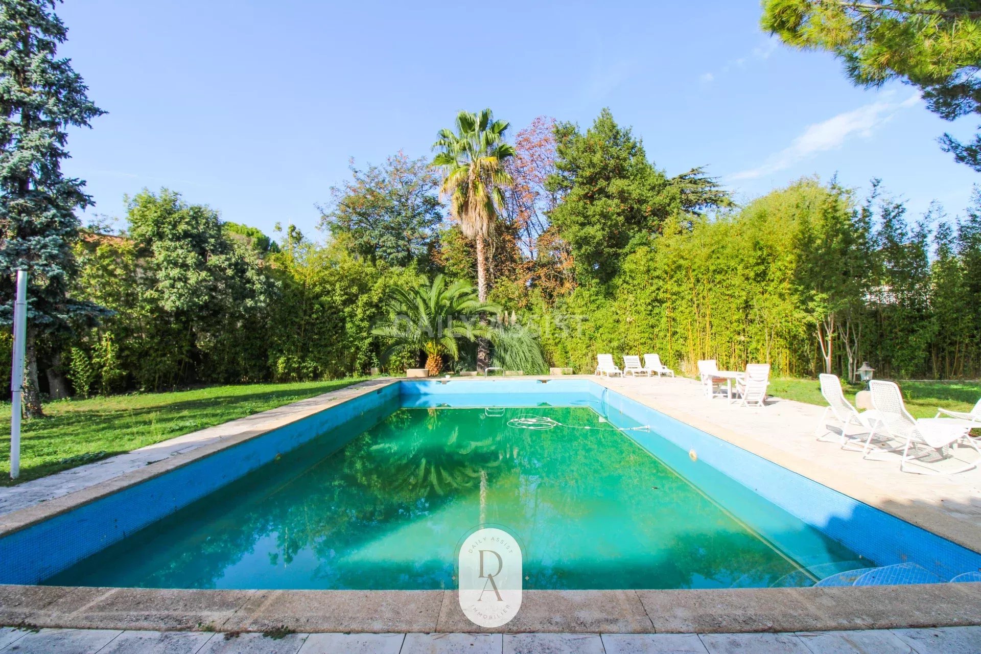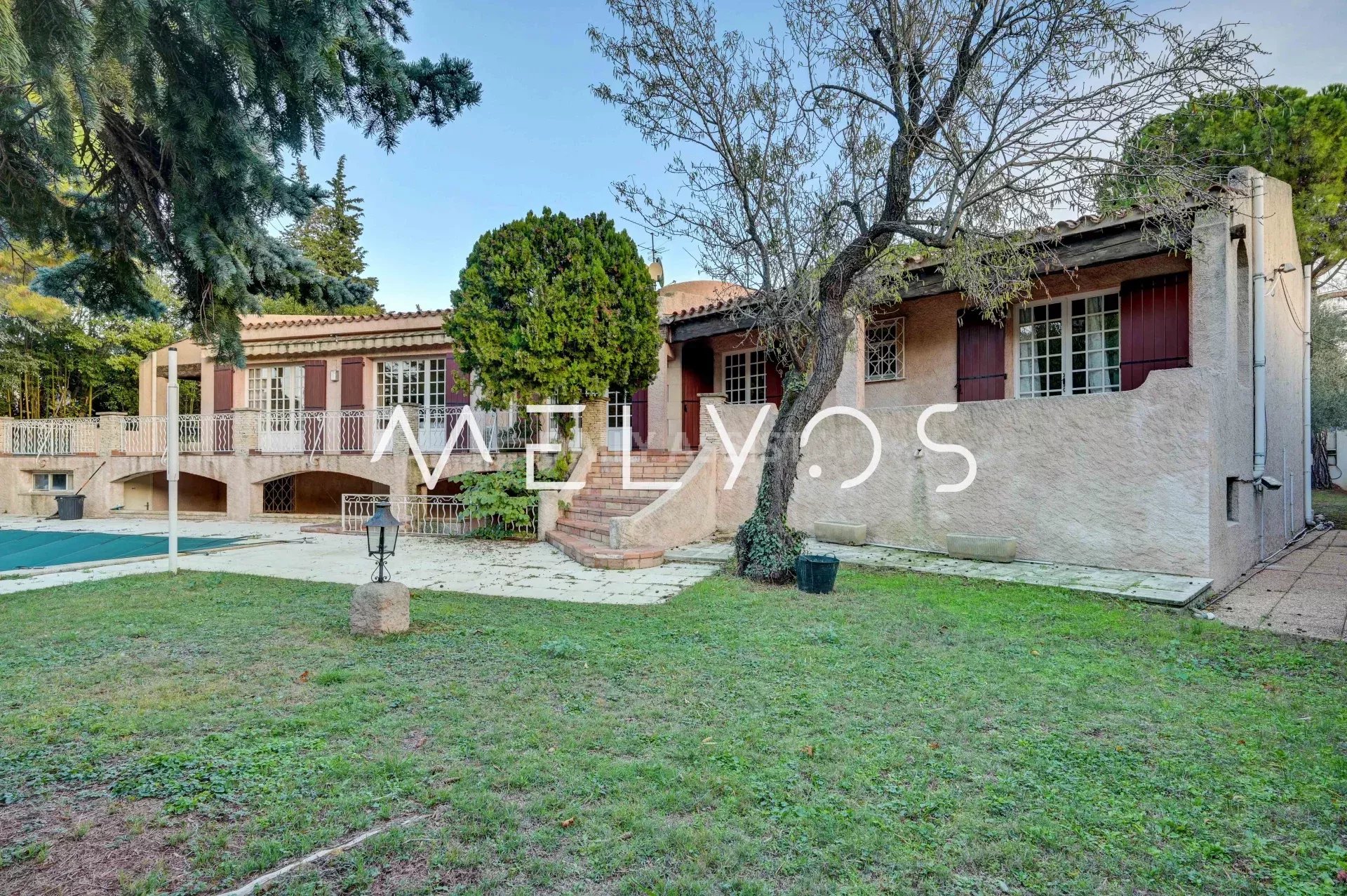 SERENITY est une villa idéalement située dans une traverse calme dans le secteur très recherché de ST Julien. Vous ressentirez sa sérénité dès l'entrée sur son terrain de 2300m2 complanté de nombreux arbres, sans vis à vis. Son entrée principale spectaculaire vous amène dans la vaste pièce à vivre : un double séjour de 70 m2 très lumineux grâce à ses 3 grandes portes-fenêtres s'ouvrent sur une belle terrasse. De là, vous admirez son grand jardin et sa piscine de 18X6m. La cuisine séparée est complétée par une buanderie et a un accès direct sur l'extérieur. Un couloir distribue le coin nuit composé de 4 chambres, de 3 salles de bains et 3 wc. Tout le sol est en marbre style chevrons. Le 2ème plan de 230m2 en rez de jardin est déjà partiellement aménagé :un grand T2 donne sur la piscine. Le reste de la surface est idéale pour installer une salle de sport, un SPA, une salle de home cinéma, des chambres d'amis. Vous y trouverez également un grand garage de 40 m2. Vous ne resterez pas insensible à SERENITY, son charme, sa tranquillité et son potentiel pour en faire un bien exceptionnel, à votre goût, idéal pour une vie familiale proche des commerces et des accès autoroutiers. Rare à la vente dans ce secteur.