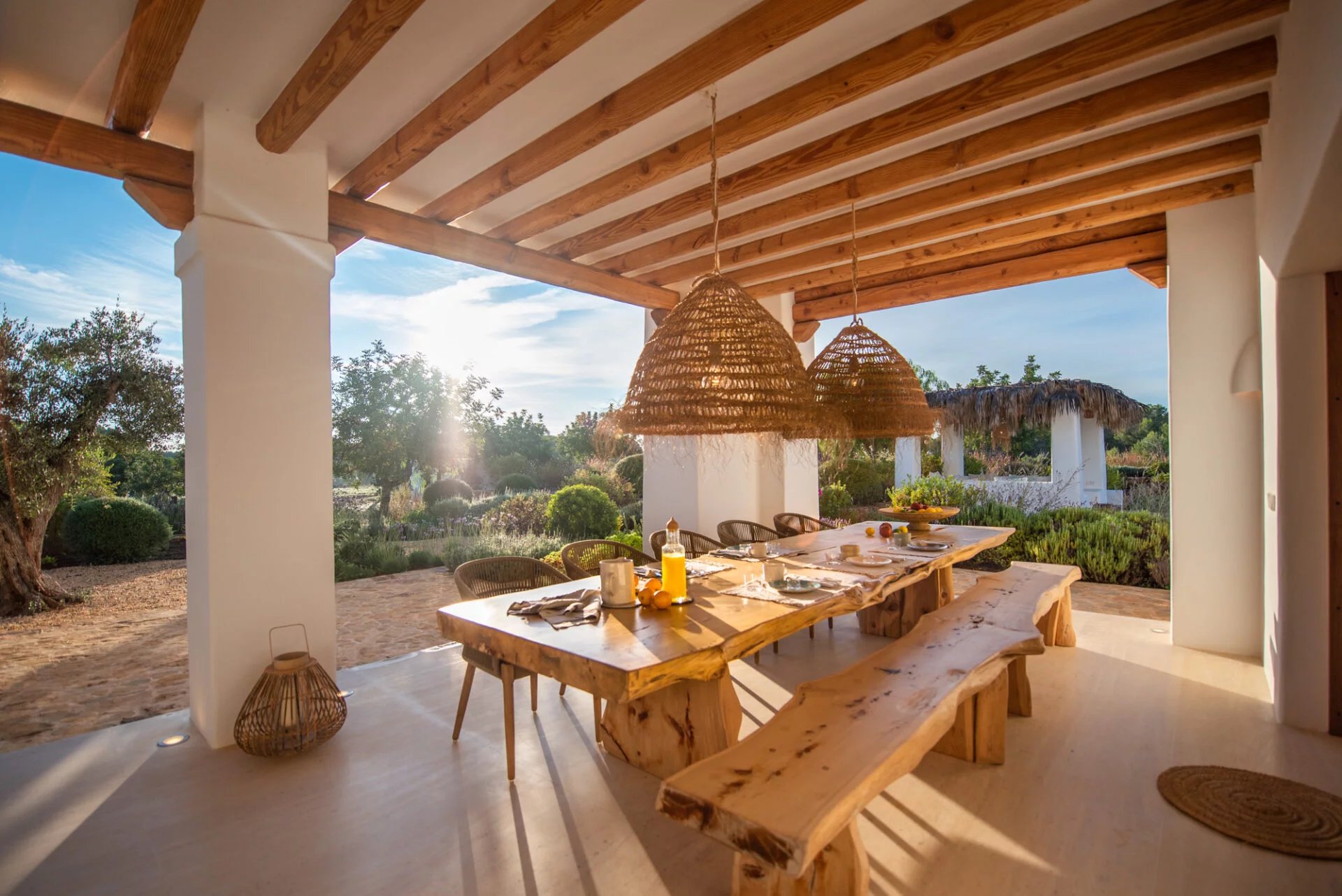L’impressionnante table à manger, faite d’un vieil arbre de sabina, est parfaite pour s’asseoir avec la famille et les amis, raconter des histoires, rire ensemble et profiter des repas en plein air les chaudes nuits d’été.
