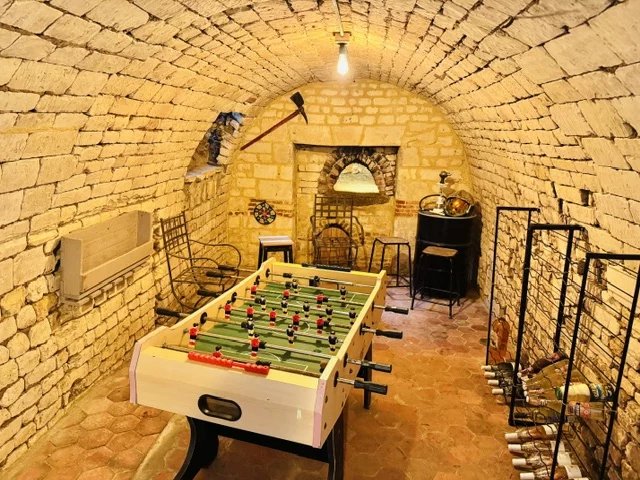 • Une cave aménagée en salle de baby-foot pour vos loisirs.