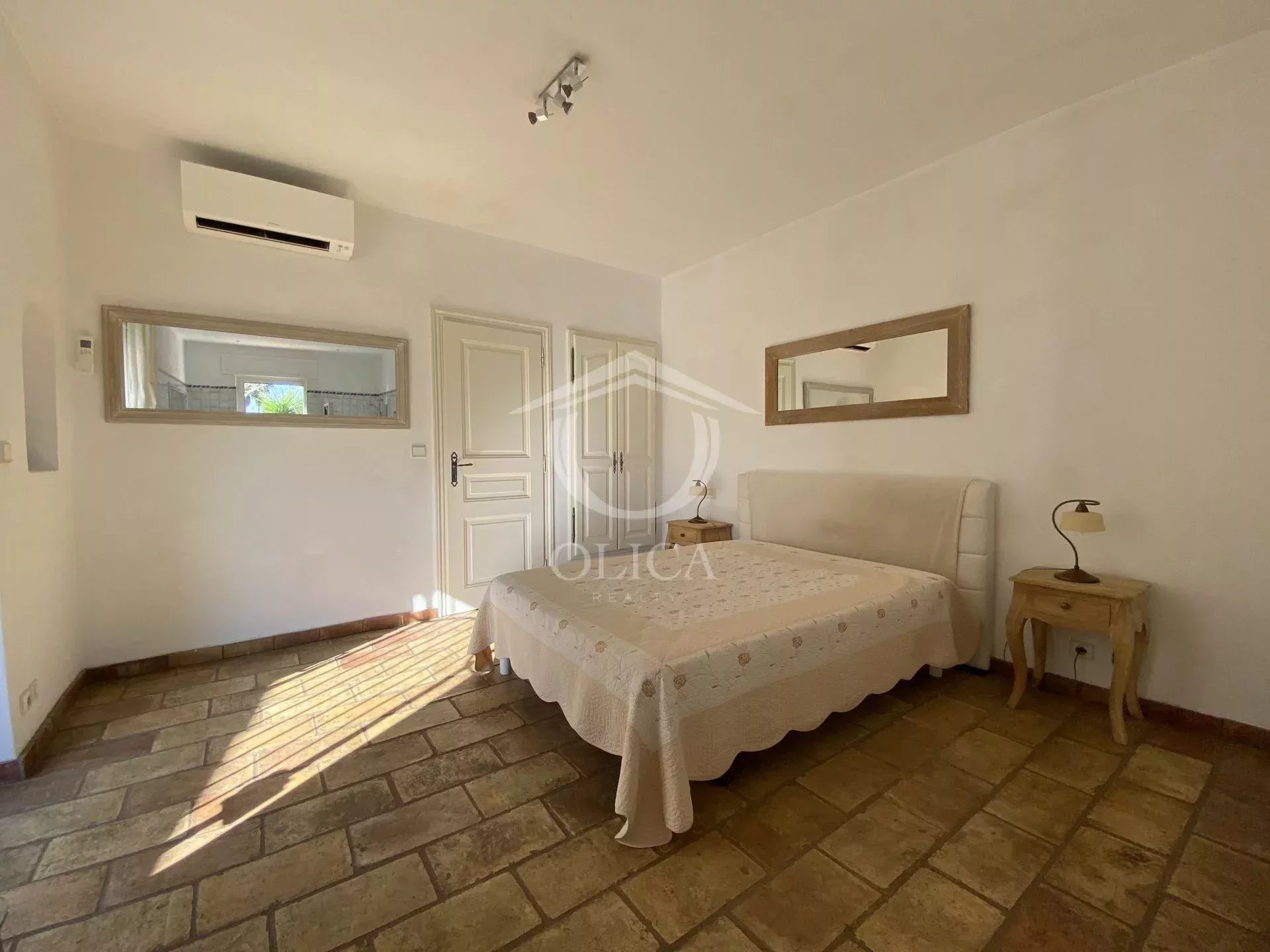 La villa est agencée avec goût, offrant des prestations de qualité comme son agréable séjour avec sa cheminée en pierres ainsi que de nombreuses chambres accompagnées de leurs salles d'eau.