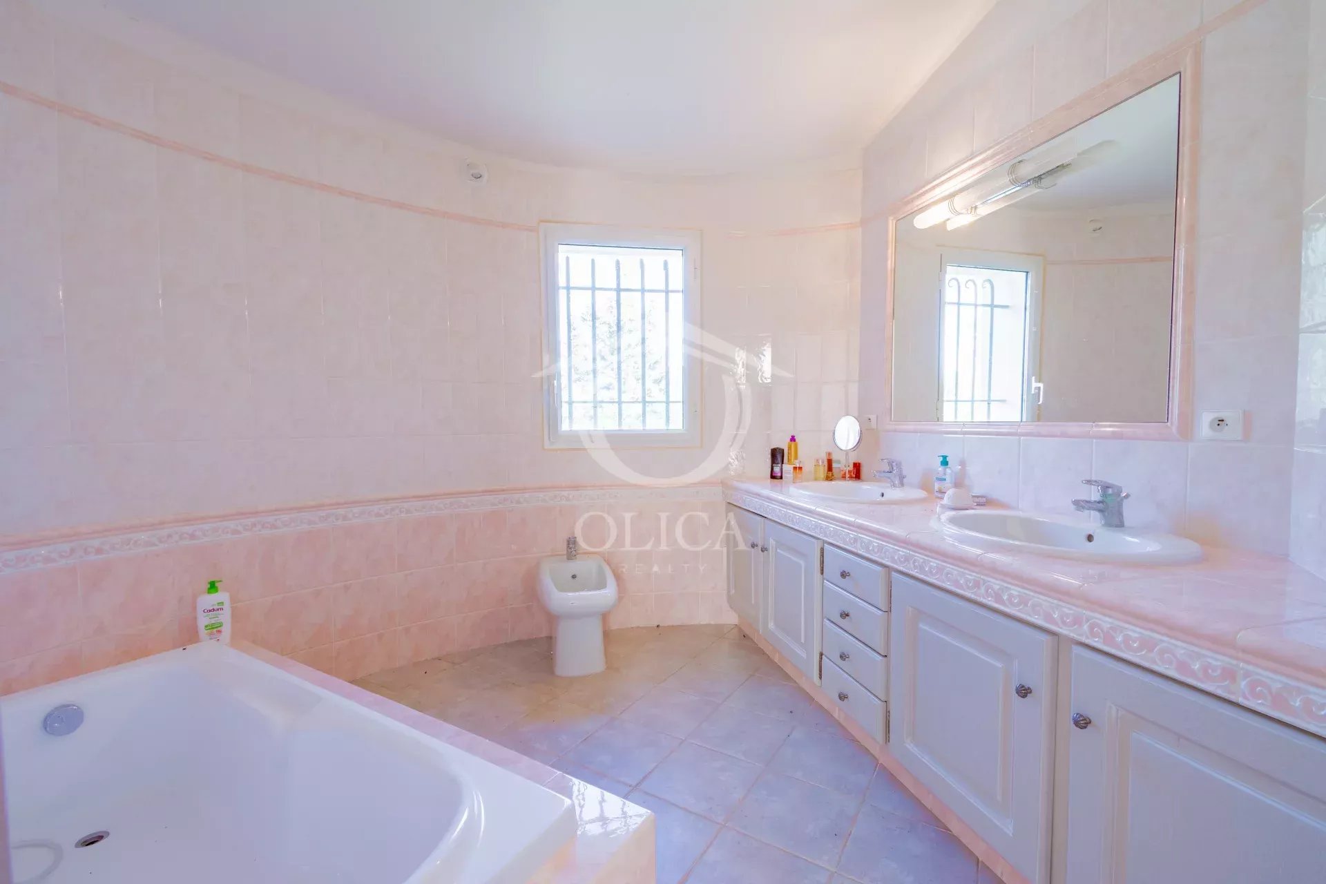 La villa est accompagnée d'un beau terrain plat de 2350m² doté d'une belle exposition.