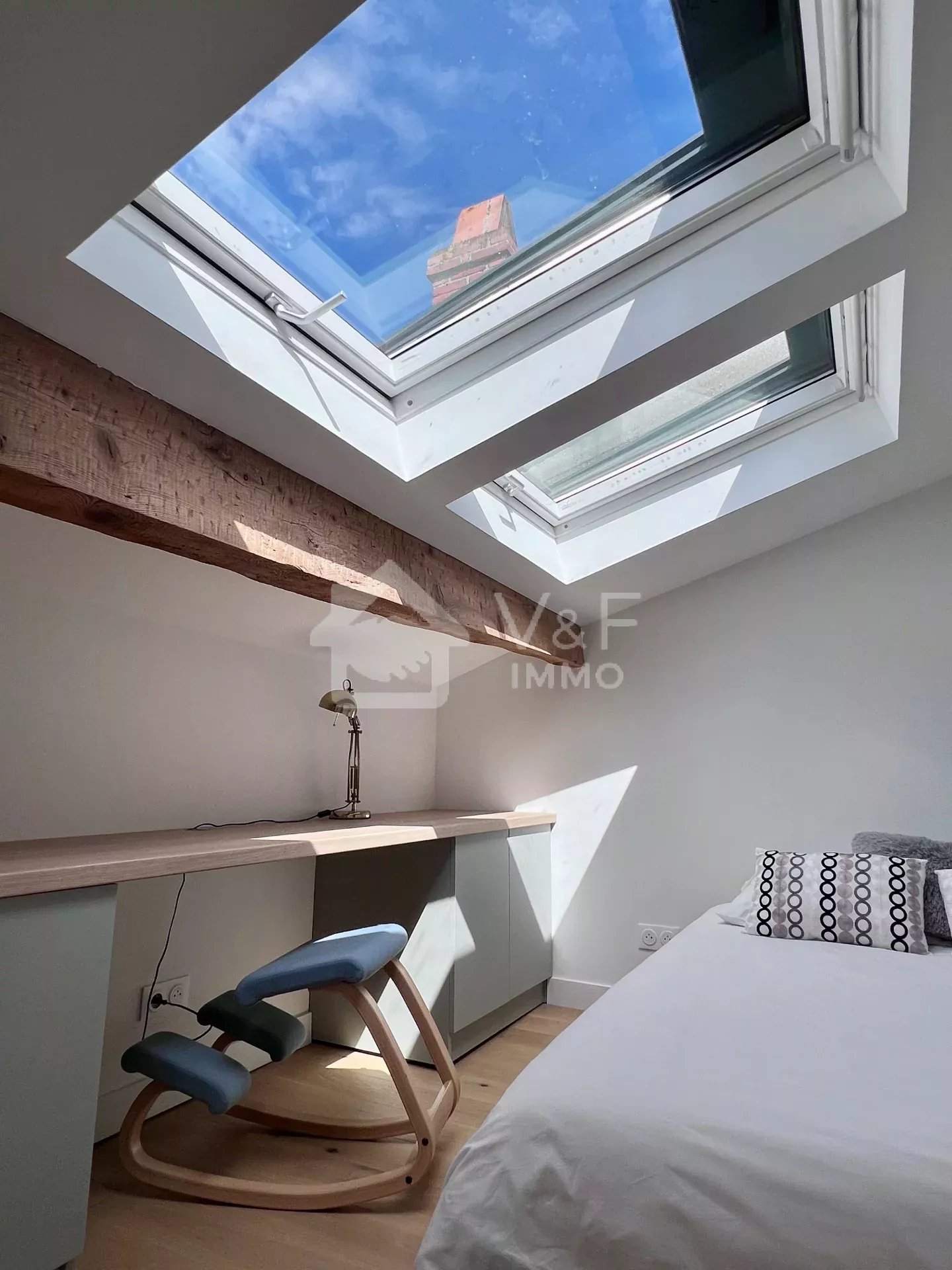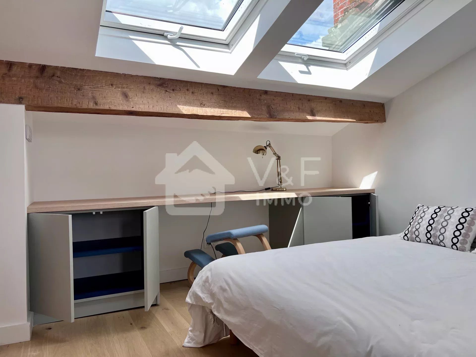 Vous serez charmés par le mélange de l'ancien et du moderne, cheminée, parquet, nombreux rangements.