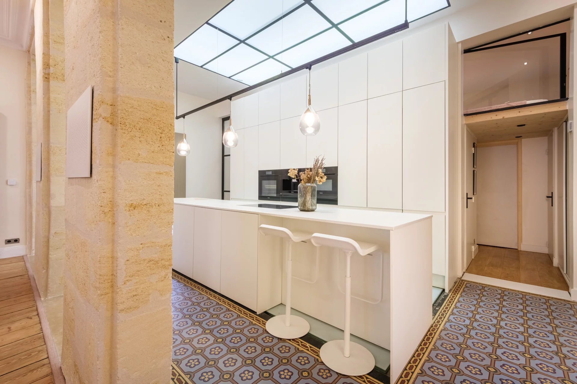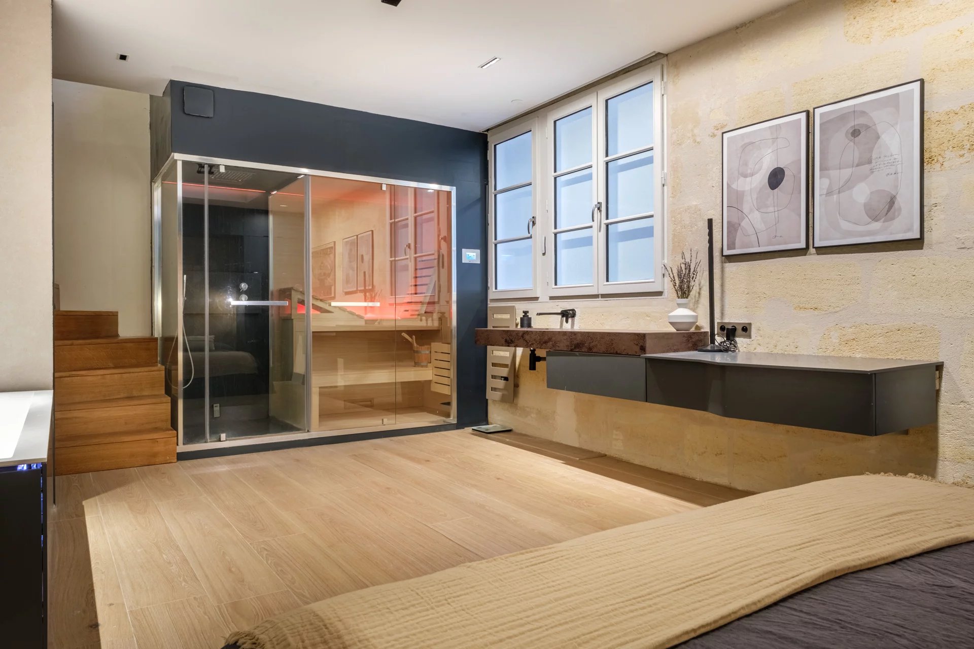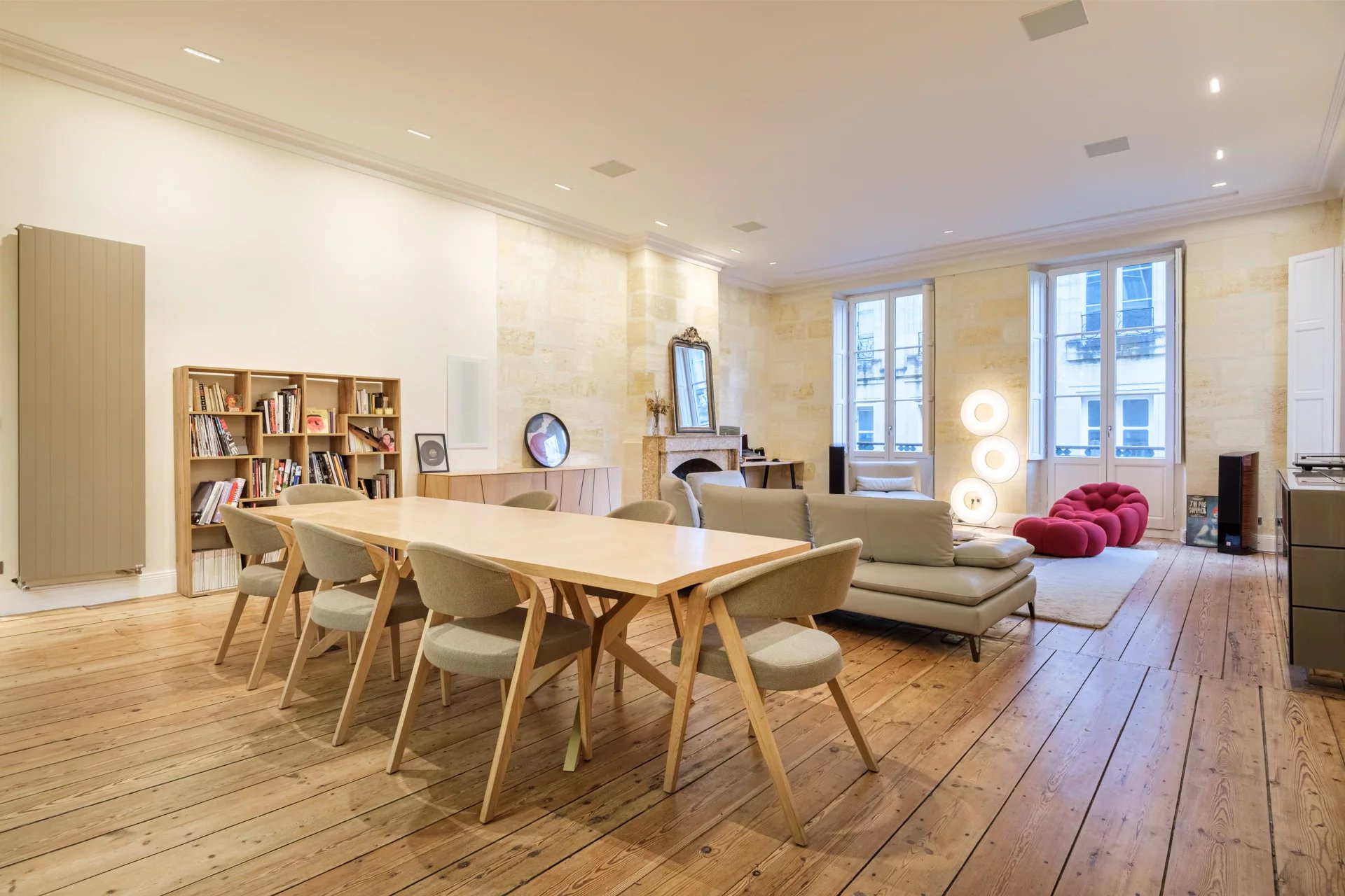 La Maison Duport est fière de vous présenter en exclusivité ce magnifique appartement développant 185 m² de superficie. Niché au deuxième étage d'un bel immeuble en pierre datant du XIXème siècle, ce bien bénéficie d’une véritable adresse, donnant directement sur la très belle Place du Palais. Dès l'entrée dans les lieux, vous serez séduits par les volumes et la luminosité qu'offre l'immense salon-séjour avec sa cuisine ouverte, cet espace généreux vous donnera l’opportunité de créer de parfaits moments de convivialité en famille ou entre amis. L’éclairage joue un rôle majeur dans l’appartement, grâce à un système de lumière indirecte apportant une grande sophistication et créant une ambiance chaleureuse et élégante à chaque coin de l’appartement. Les fenêtres aux dimensions généreuses encadrent de très belles vues sur la Place du Palais, vous offrant un tableau vivant qui évolue au rythme de la ville, avec un véritable plus son joli balcon. La cuisine entièrement équipée et aménagée avec des matériaux haut de gamme, bénéficie d’éléments derniers cri pour les amateurs de cuisine. L'appartement dispose de trois suites, chacune d’elles est un sanctuaire de confort et de style, offrant une intimité inégalée pour ses résidents. Des espaces généreux conçus avec goût où le raffinement rencontre la fonctionnalité. La suite parentale est une ode à la relaxation ultime. Plongez dans l'opulence d'un hammam et d'un sauna privés, offrant une évasion parfaite du tumulte quotidien. Une expérience spa exclusive, chez vous. Les deux autres suites disposent de placards intégrés, ainsi que d’une salle d’eau et d’une mezzanine. L'appartement offre également un espace buanderie et un WC japonais indépendant. Ce bien rare ou chaque détail a été soigneusement pensé pour dépasser vos attentes du quotidien, vous offre l’opportunité de vivre dans un bien rempli de raffinement et de style pour une vie citadine exceptionnelle. Notre agence vous ouvre les portes de cet appartement d’exception.