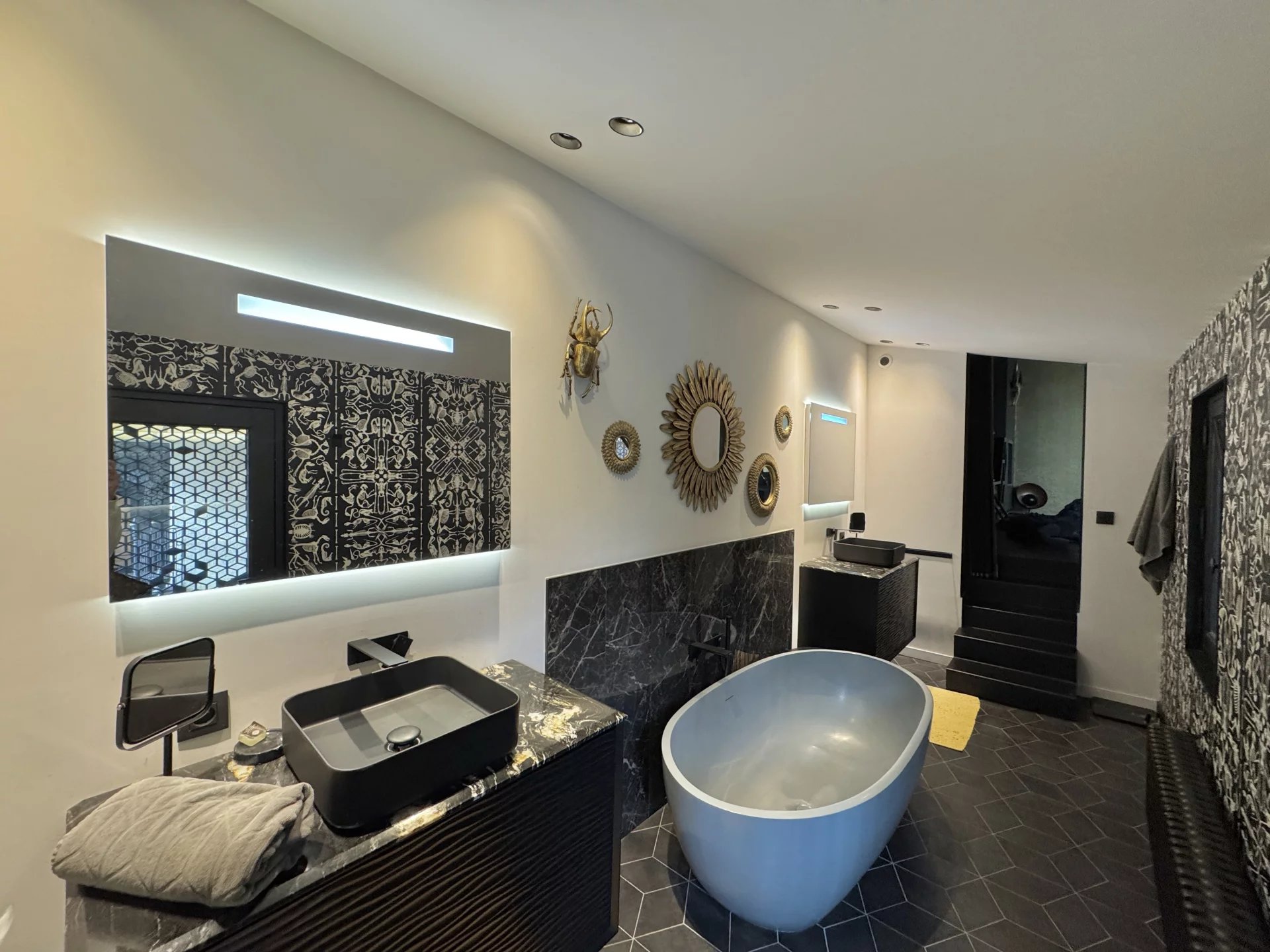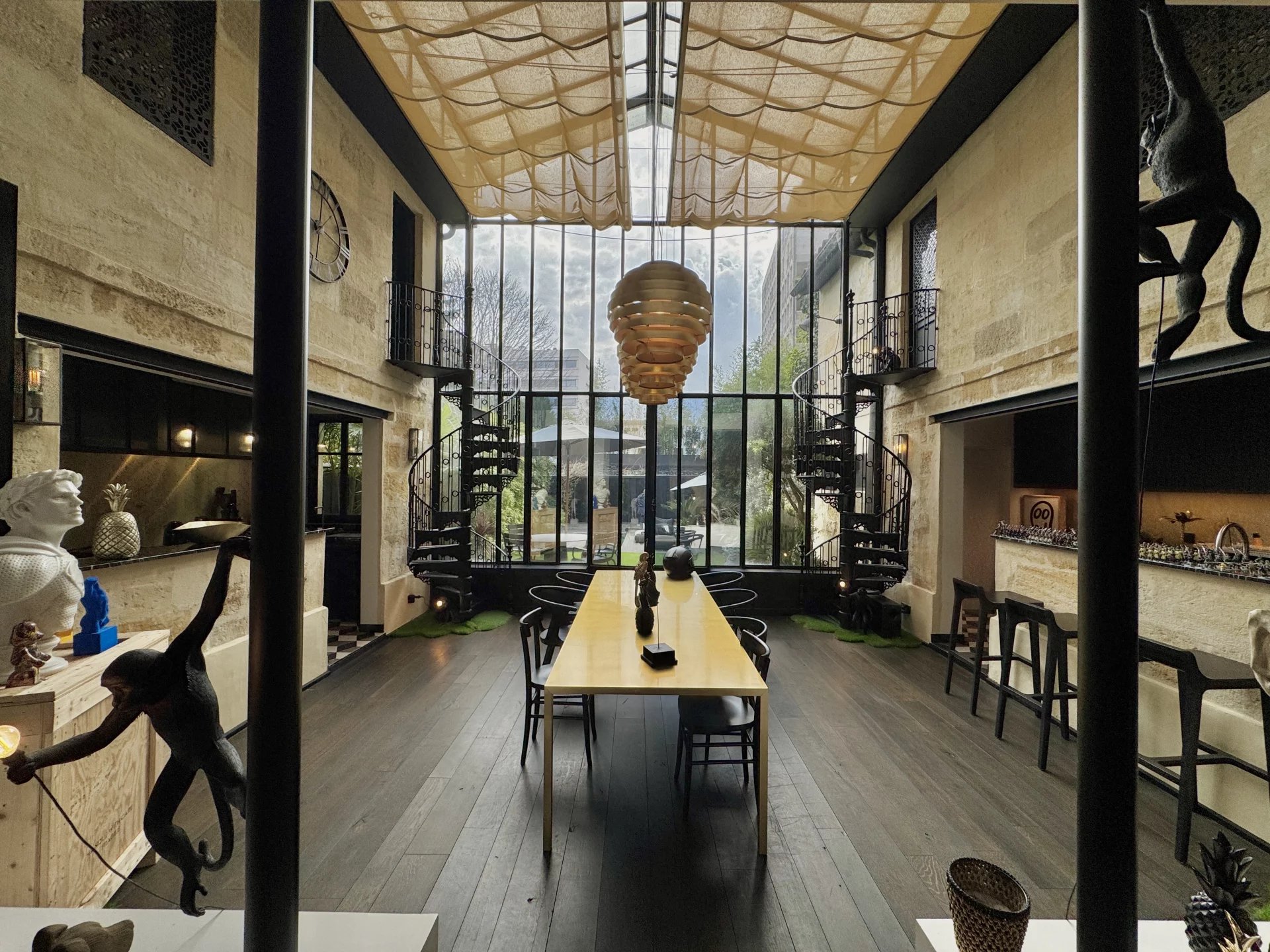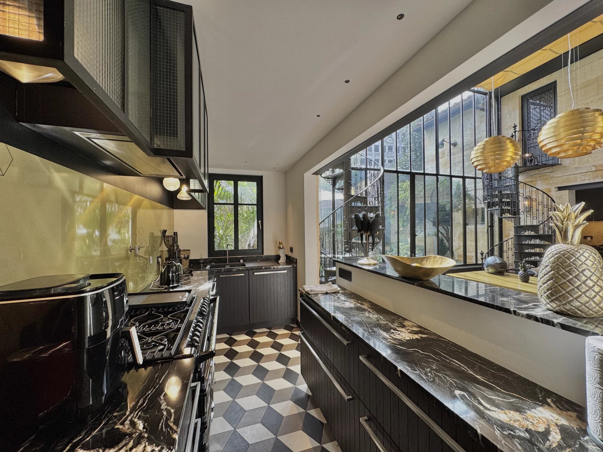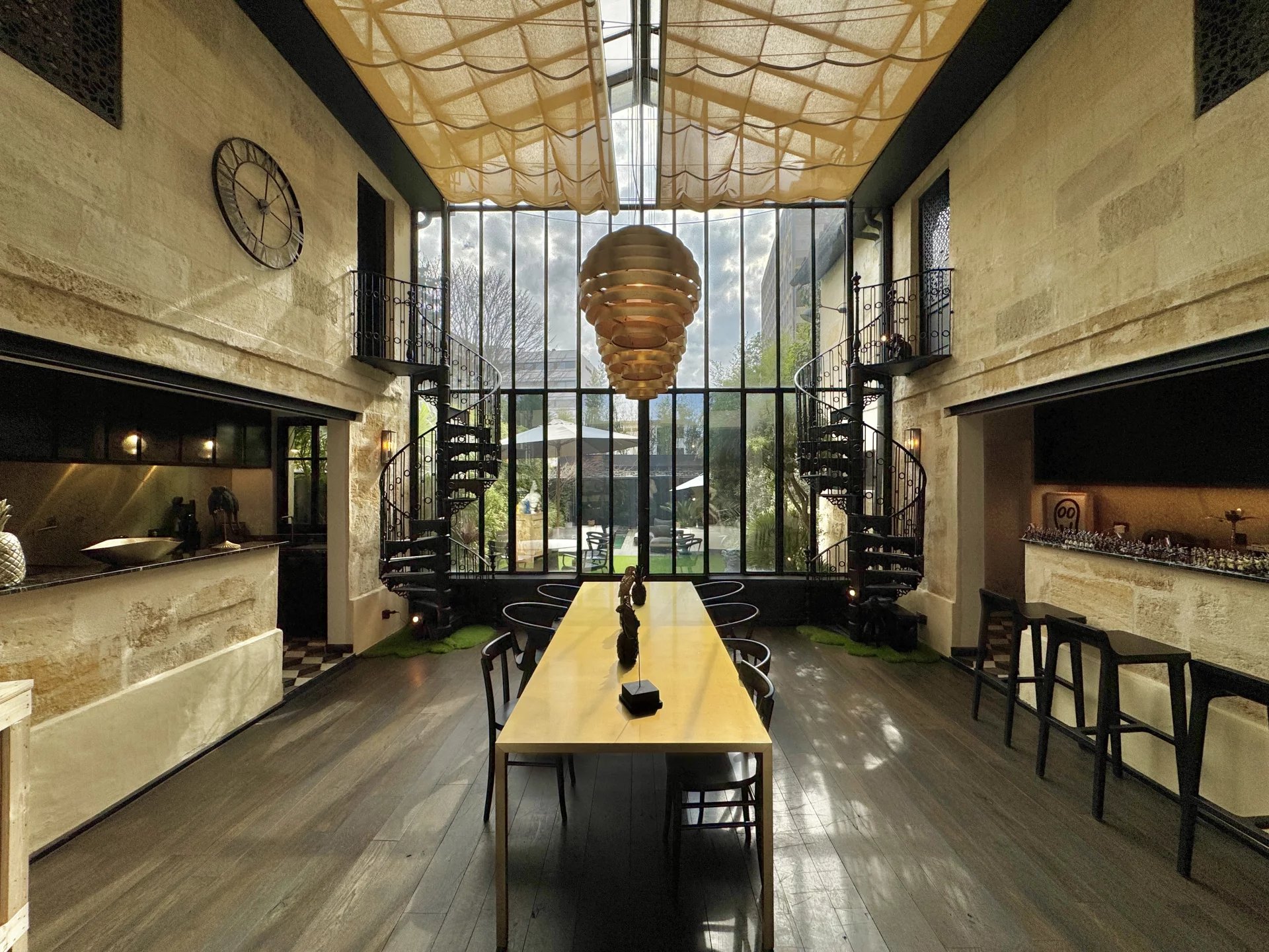 Nichée entre Saint-Seurin et le Parc Bordelais, cette superbe demeure de 300 m² allie élégance et confort dans un cadre raffiné. Imaginée par un designer de renom, elle séduit par son atmosphère intime et son agencement soigné, sublimé par une somptueuse verrière atelier qui baigne la salle à manger de lumière naturelle. Dès l’entrée, le ton est donné avec des volumes généreux et une distribution fluide des espaces. Le rez-de-chaussée accueille une chambre d’amis avec salle de douche et rangements, ainsi qu’un vaste espace de vie comprenant un double salon et une cuisine ouverte sur la salle à manger. À l’étage, la suite parentale impressionne avec son salon privé, sa salle de bains, son hammam et son dressing. Deux autres chambres, chacune dotée de rangements et d’une salle de douche, ainsi qu’un bureau indépendant et une buanderie complètent cet étage. L’extérieur est une véritable invitation à la détente, avec un jardin paysager de 160 m² exposé sud-ouest, une piscine chauffée et une dépendance de 25 m² pouvant servir d’atelier ou de studio. Pour parfaire cet ensemble, la maison dispose d’un grand garage et d’un sous-sol comprenant une cave à vin et une buanderie. Une rénovation de prestige avec des matériaux de haute qualité, pour un bien rare au cœur de Bordeaux.