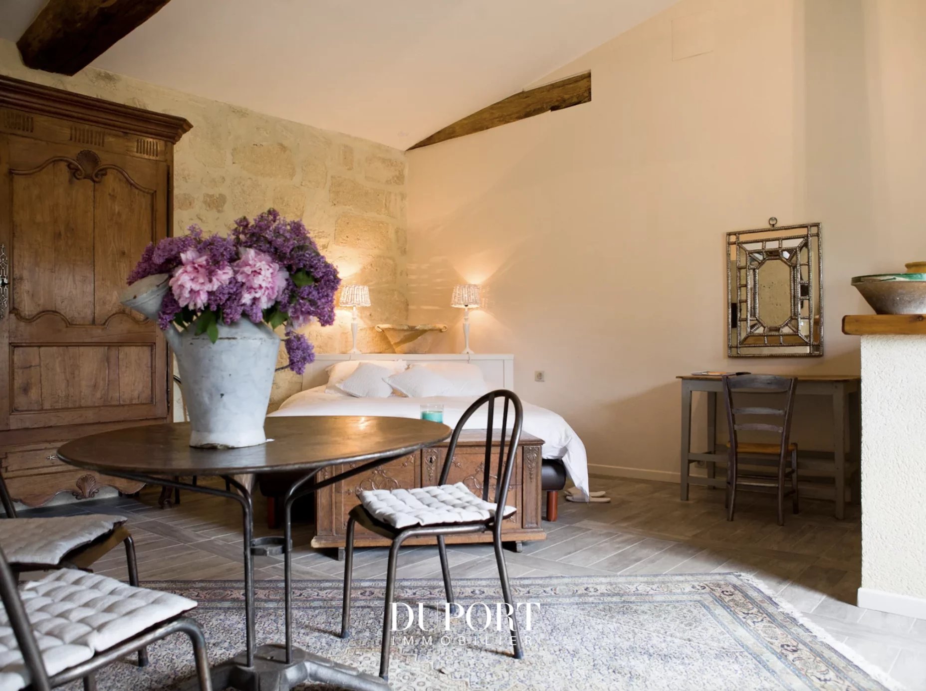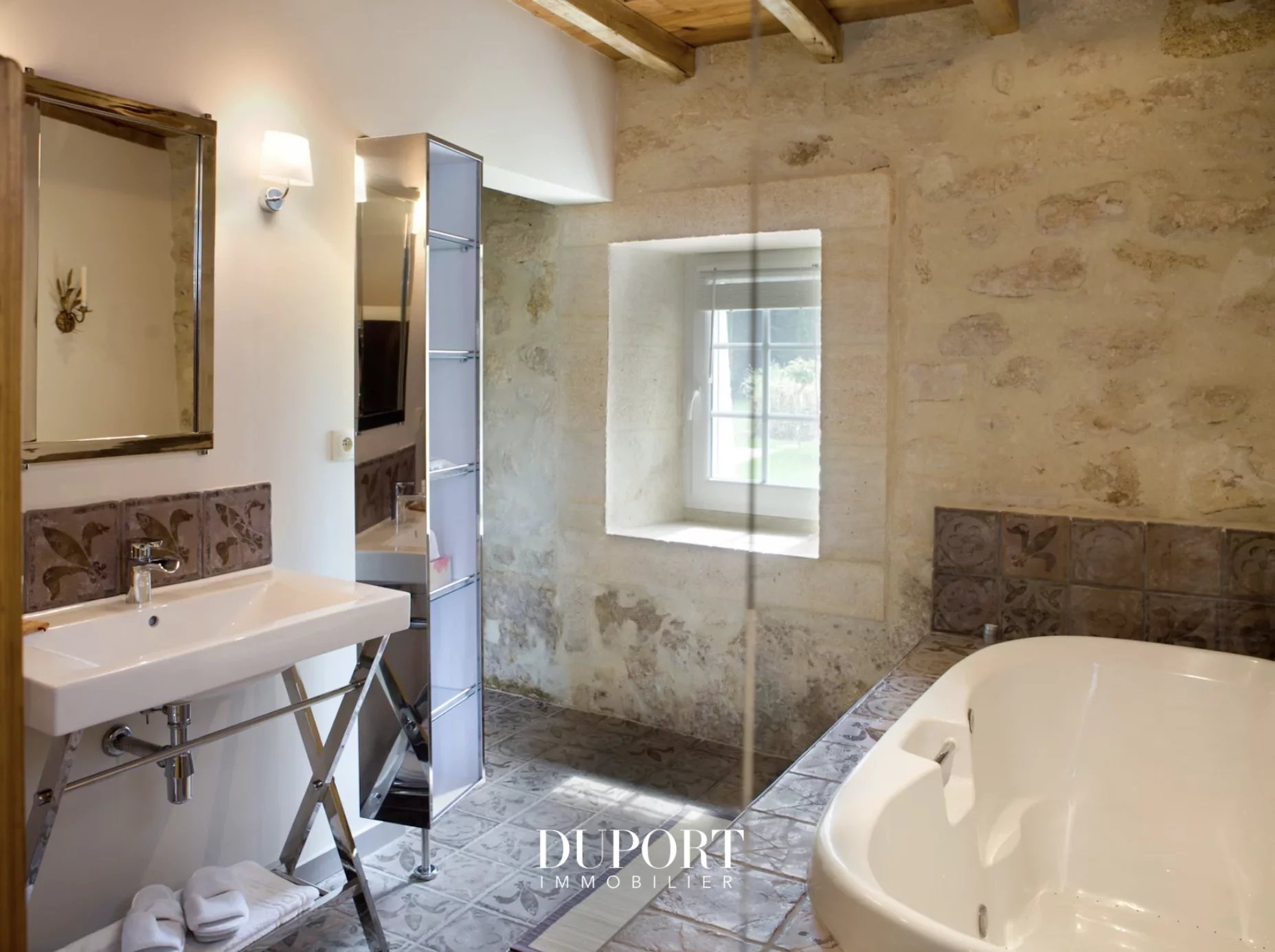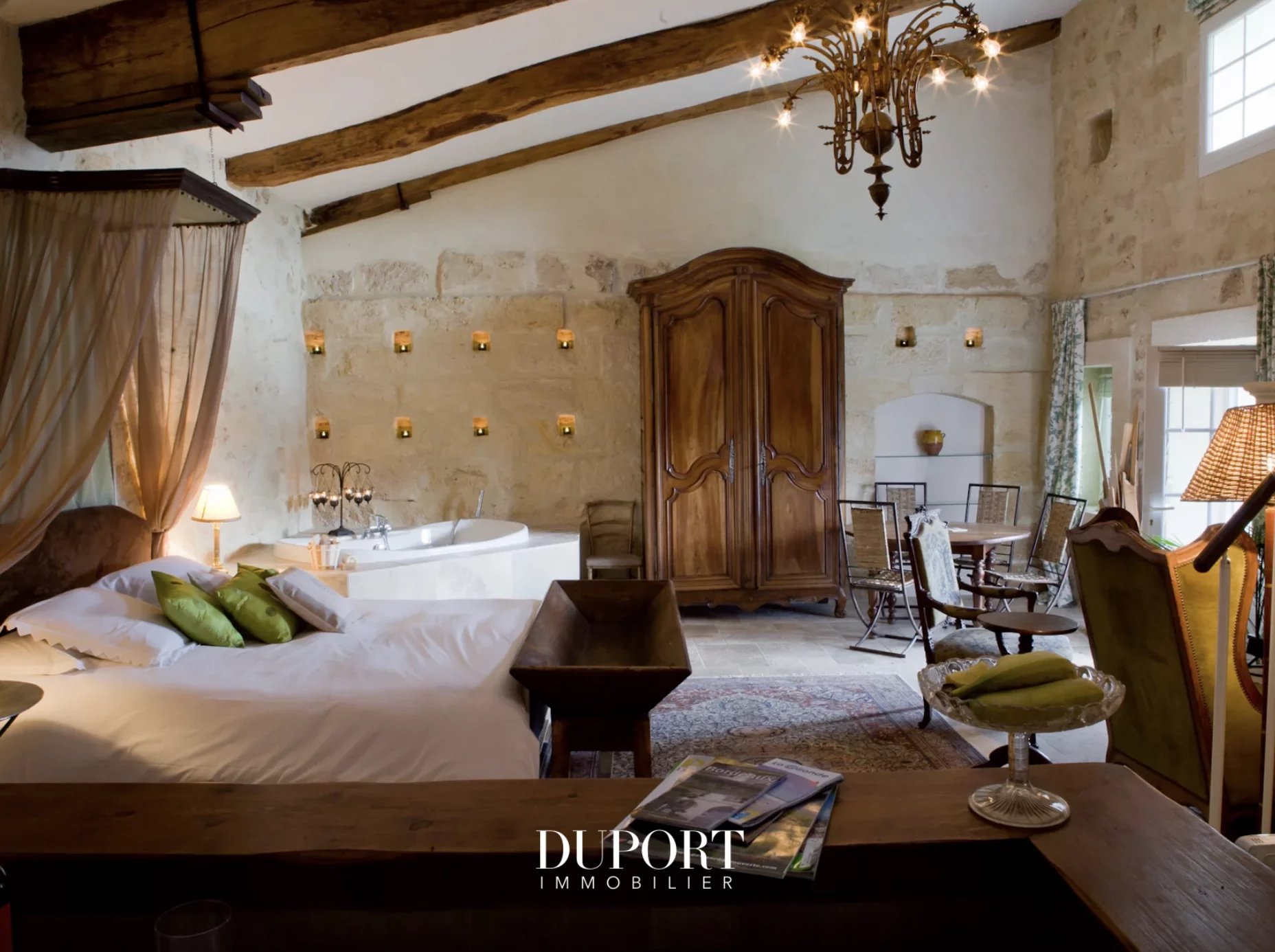 Découvrez l'essence même de l'histoire dans cette magnifique propriété, un authentique château du XIIe siècle, niché à proximité de l'emblématique Saint-Émilion. Témoin vivant des siècles passés, ce château vous invite à un voyage à travers le temps. Le Château présente une symbiose parfaite entre le luxe opulent et l'authenticité de la nature. L'étang privé, habité par des canards et des oies gracieuses, invite à la contemplation paisible, créant une atmosphère de tranquillité et d'harmonie. La végétation luxuriante qui entoure le domaine offre une symphonie de couleurs qui change au fil des saisons, apportant une touche de magie à chaque instant. La Propriété déploie au rez-de-chaussée deux somptueux salons, une élégante salle à manger, une cuisine complète avec son arrière-cuisine ainsi qu'une chaufferie fonctionnelle. À l'étage, des suites de trois vastes chambres, chacune dotée de sa propre salle d'eau, une salle d'eau indépendante et un charmant dortoir. Le second étage offre la possibilité d'accueillir vos biens les plus précieux dans le grenier. À proximité du château, le vaste parc abrite cinq suites et un espace bien-être comprenant des salles de massages, une piscine et un hammam apaisant. La propriété se pare également d'une spacieuse salle de réception de 100m², pourvue d'une charmante cheminée. Ce Château et bien plus qu'une simple propriété. C'est une expérience de vie exceptionnelle où le chic et la nature se mêlent en une harmonie parfaite. Laissez-vous séduire par le charme intemporel de ce domaine, et plongez dans une aventure où le confort somptueux et la nature se rencontrent pour créer une résidence véritablement unique.