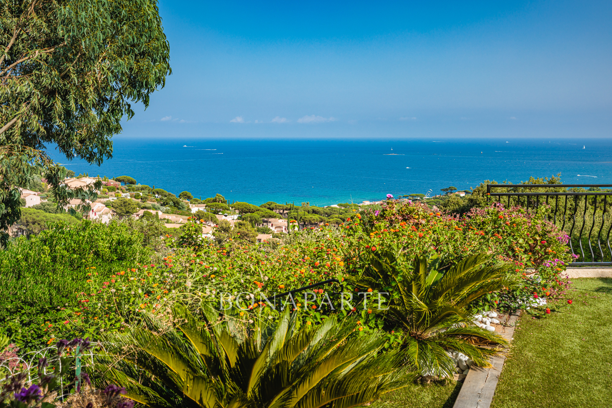 Les extérieurs, soigneusement aménagés, prolongent les espaces de vie vers de larges terrasses ensoleillées et une somptueuse piscine à débordement de forme libre (11 x 5 m), face à la mer.