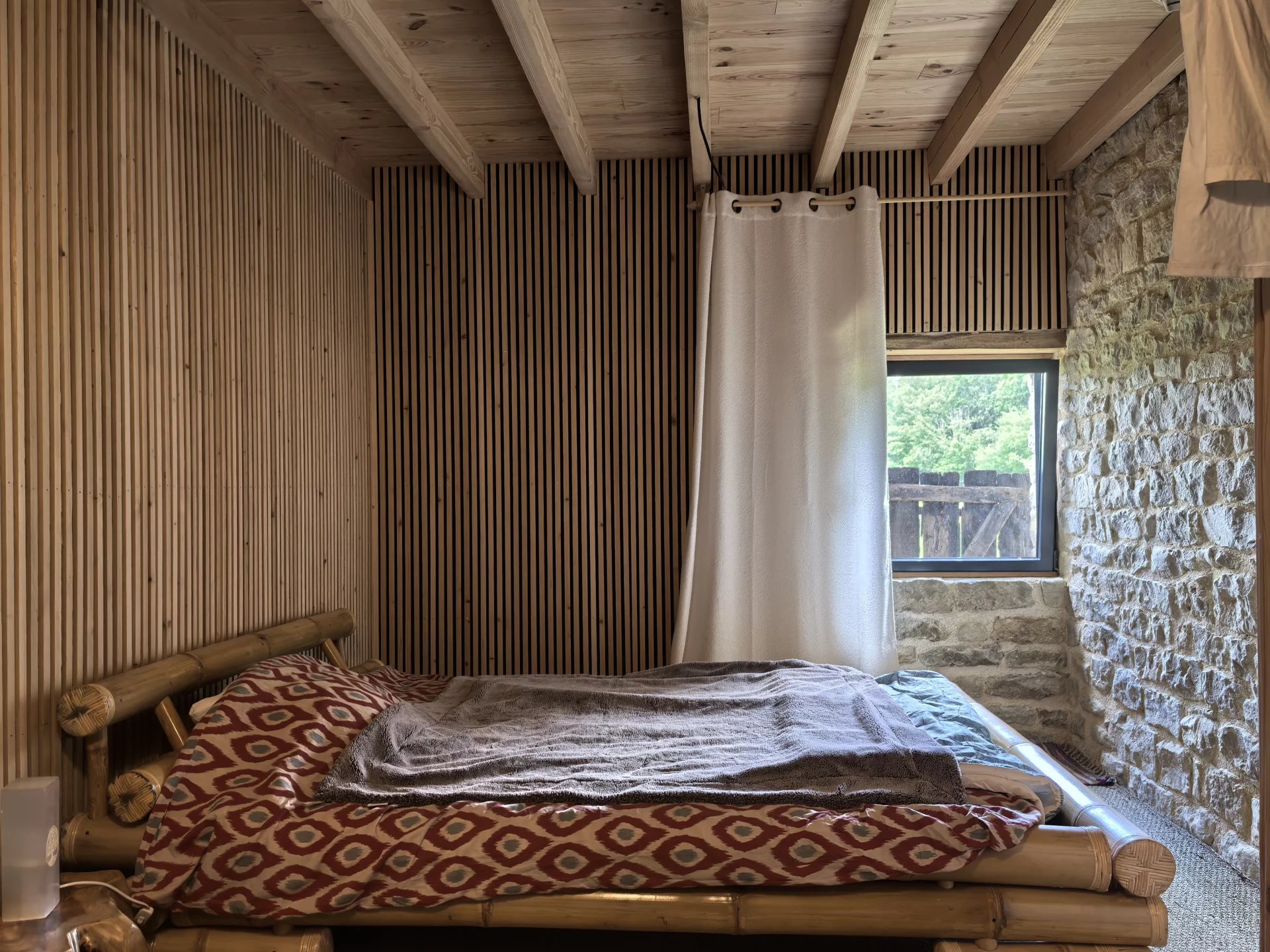 La maison est composée d’une entrée desservant une spacieuse pièce de vie composée d’un séjour avec un accès à la terrasse, une salle à manger et une cuisine. Vous trouverez ensuite une chambre et une petite salle d’eau / WC. Un vaste grenier est également présent pour agrandir cet espace. L’ensemble est en bon état et la toiture sera changée pour la vente.