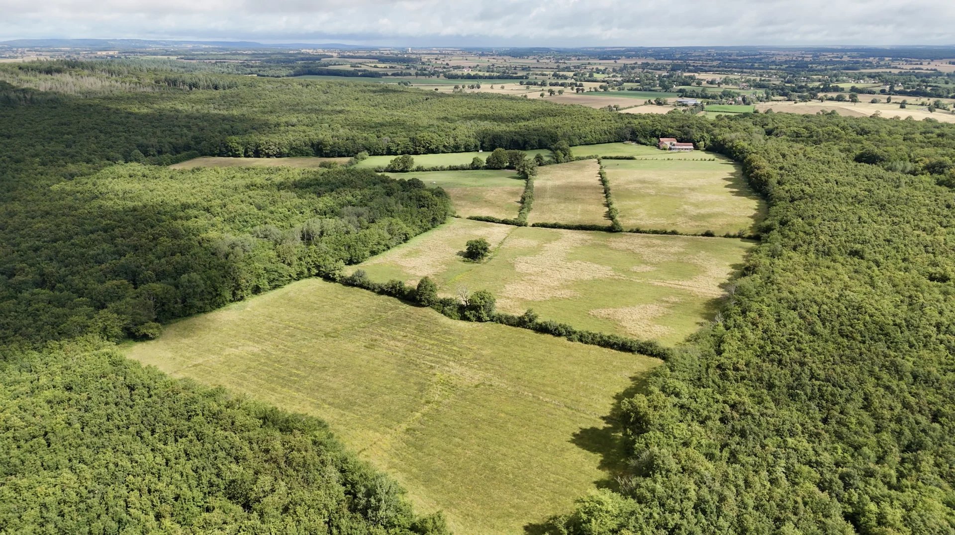 Propriété exceptionnelle située dans une clairière en plein milieu des bois, sans aucun voisins et implantée sur 23 hectares d’un seul tenant.