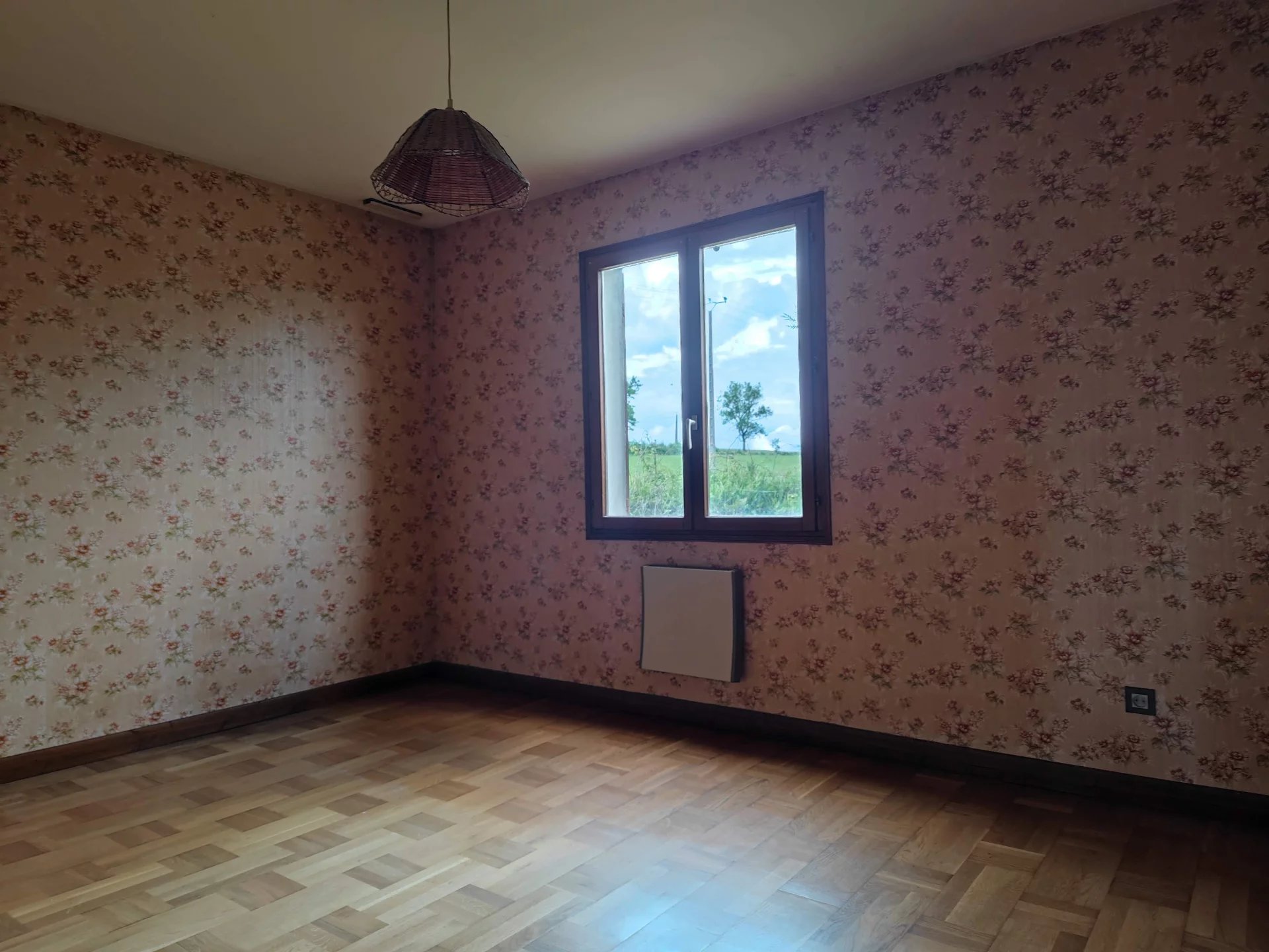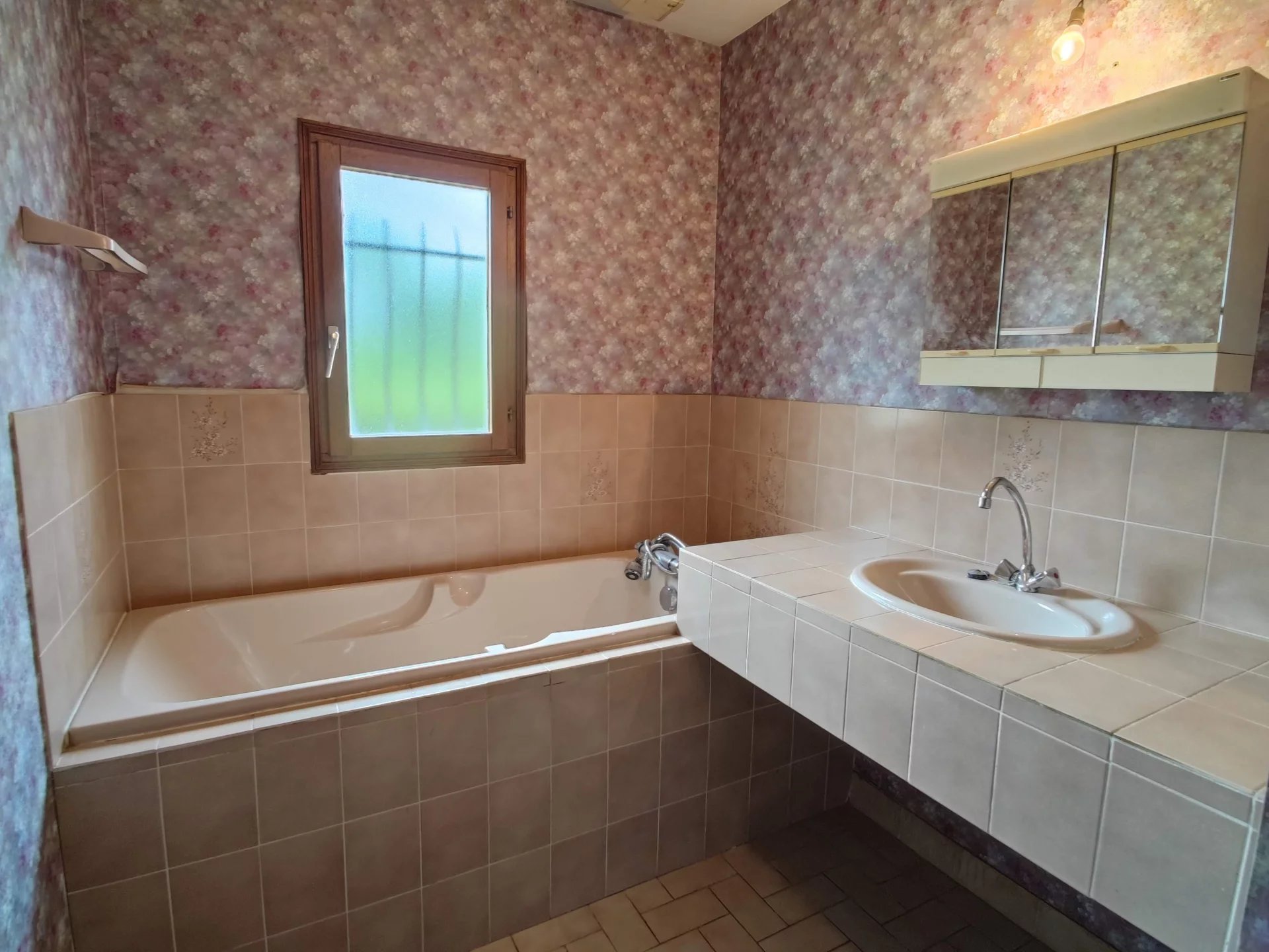 Cette maison se compose au rez-de-chaussée d’une entrée desservant une belle pièce de vie lumineuse de 23m2, suivi d’une cuisine avec salle à manger de 21m2 et de trois belles chambres dont deux de 11m2 et une de 12m2. Une salle de bain et un WC indépendant termine cet espace.