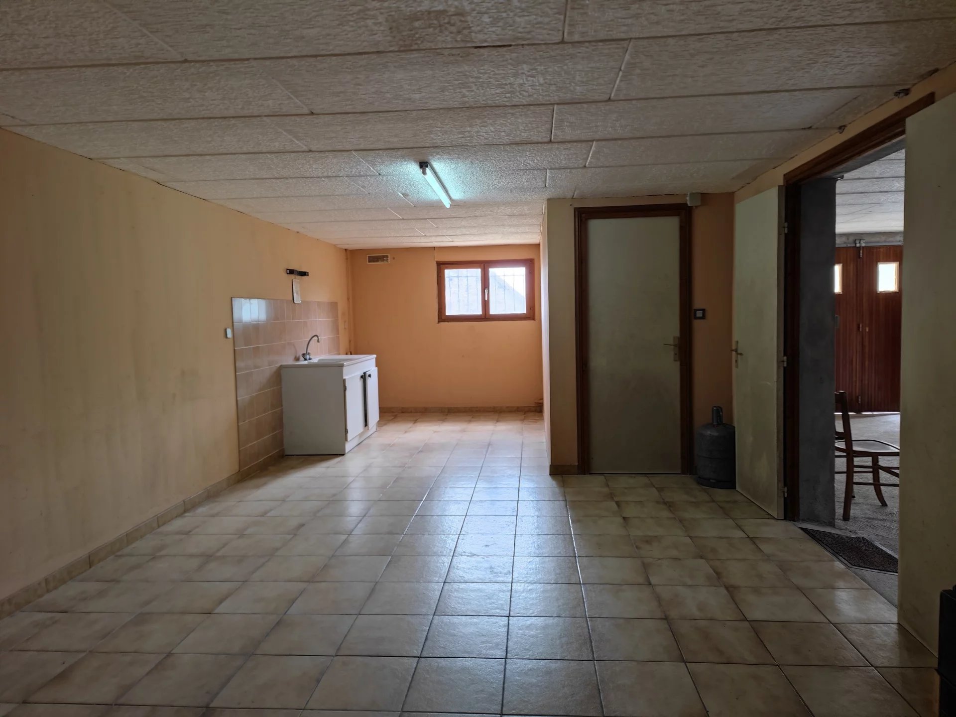 Le sous-sol totalisant 91m2 se compose d’un garage, d’un grand espace avec point d’eau et SDB / WC ainsi que d’une cave. Cet espace est également doté d’huisseries en double vitrages et d’un poêle à bois.