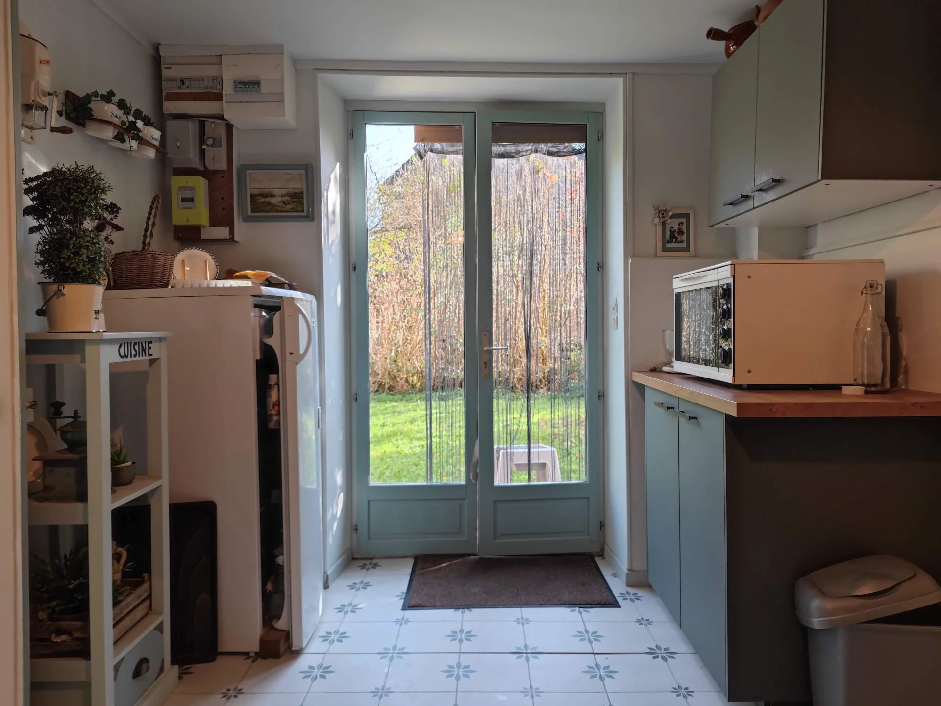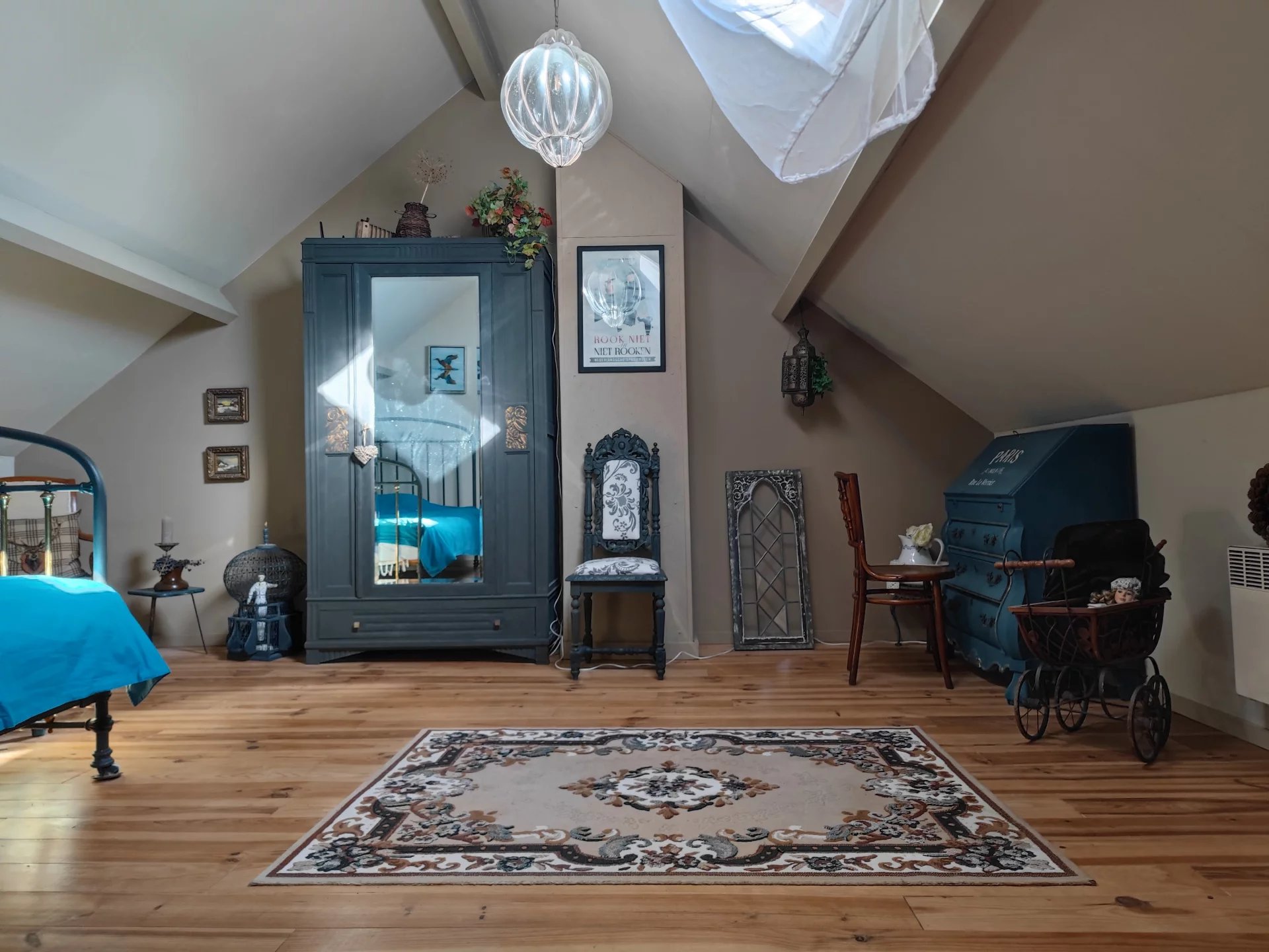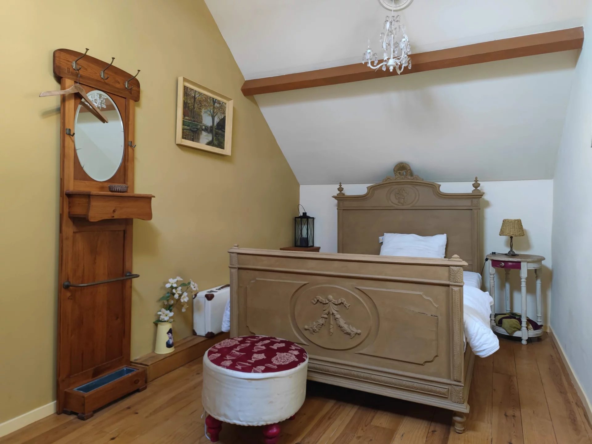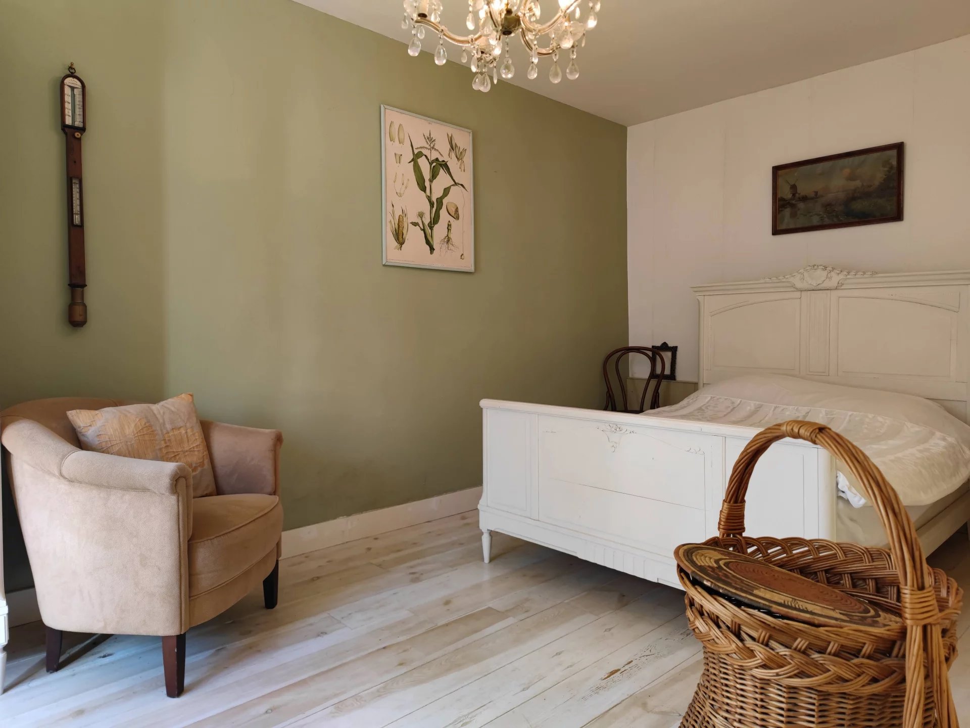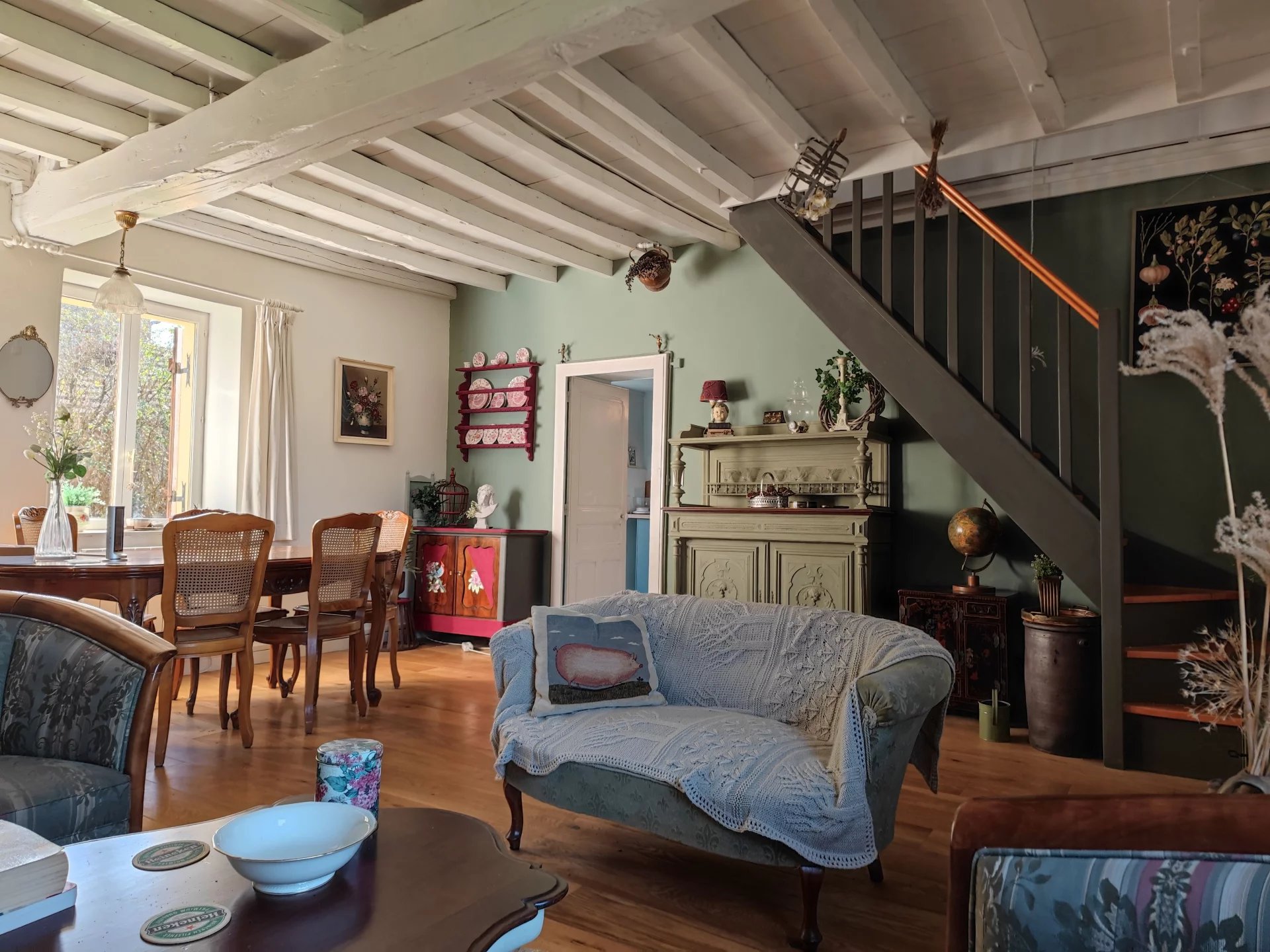 L’habitation se compose au rez-de-chaussée d’une spacieuse pièce de vie de 30m2 avec salon et salle à manger, suivie d’une partie cuisine, d’une chambre ainsi que d’une salle d’eau avec WC. A l’étage, un palier mène à deux chambres supplémentaires, chacune disposant d’un point d’eau. Une autre pièce aménageable peut accueillir une quatrième chambre. Cet espace est actuellement accessible par un escalier extérieur.