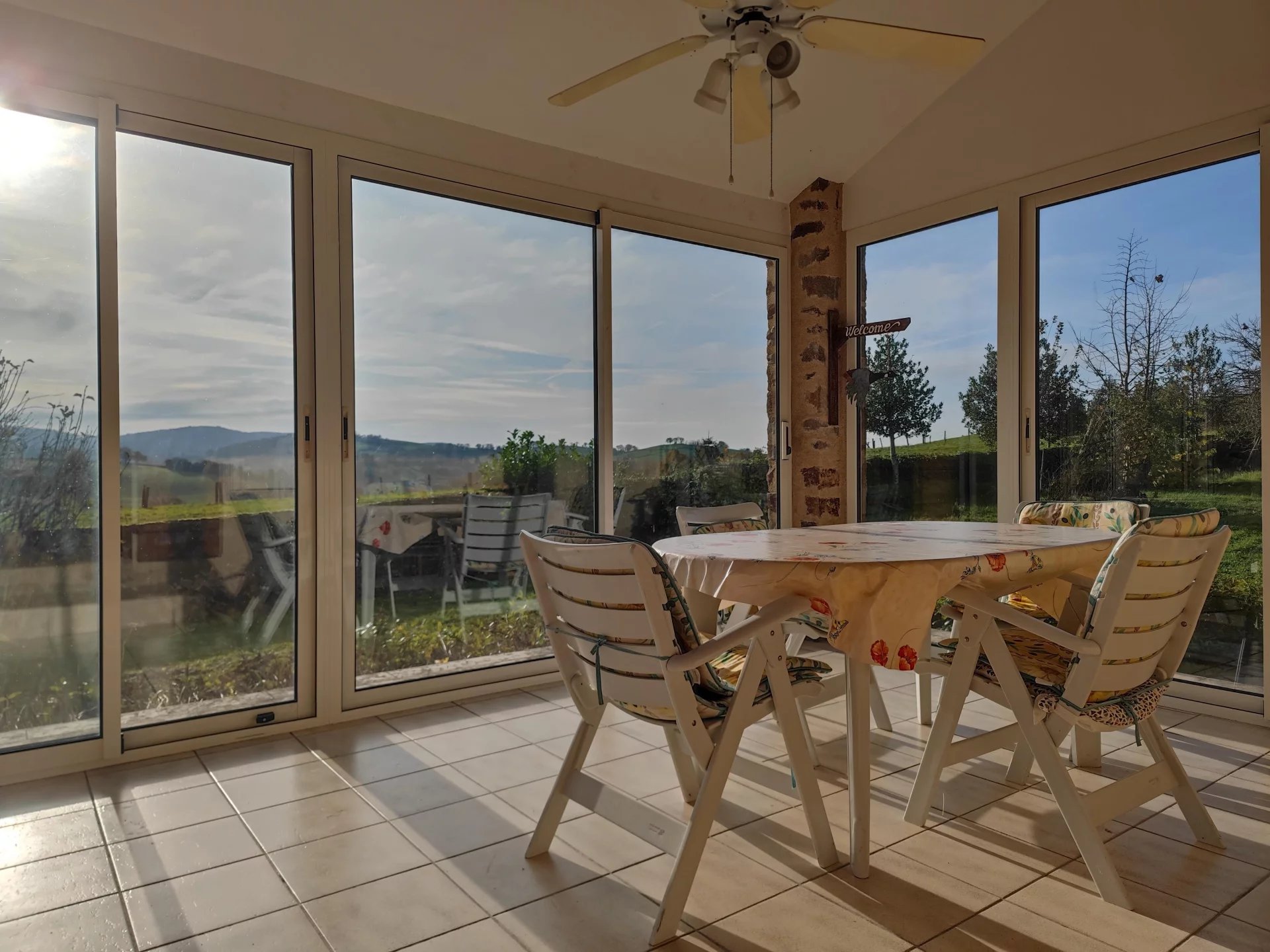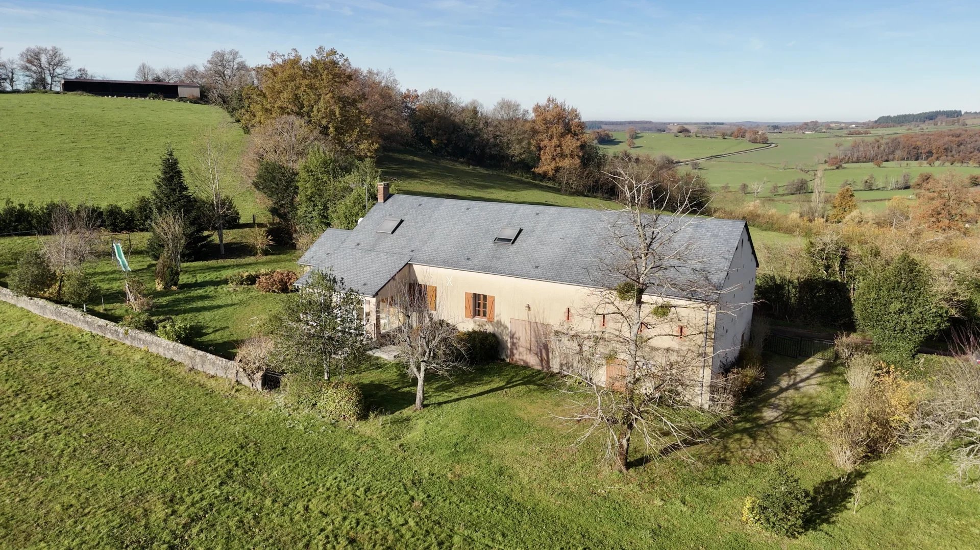 L’ensemble est situé sur un joli jardin arboré de 4642m2 avec une magnifique vue sur les champs environnants.