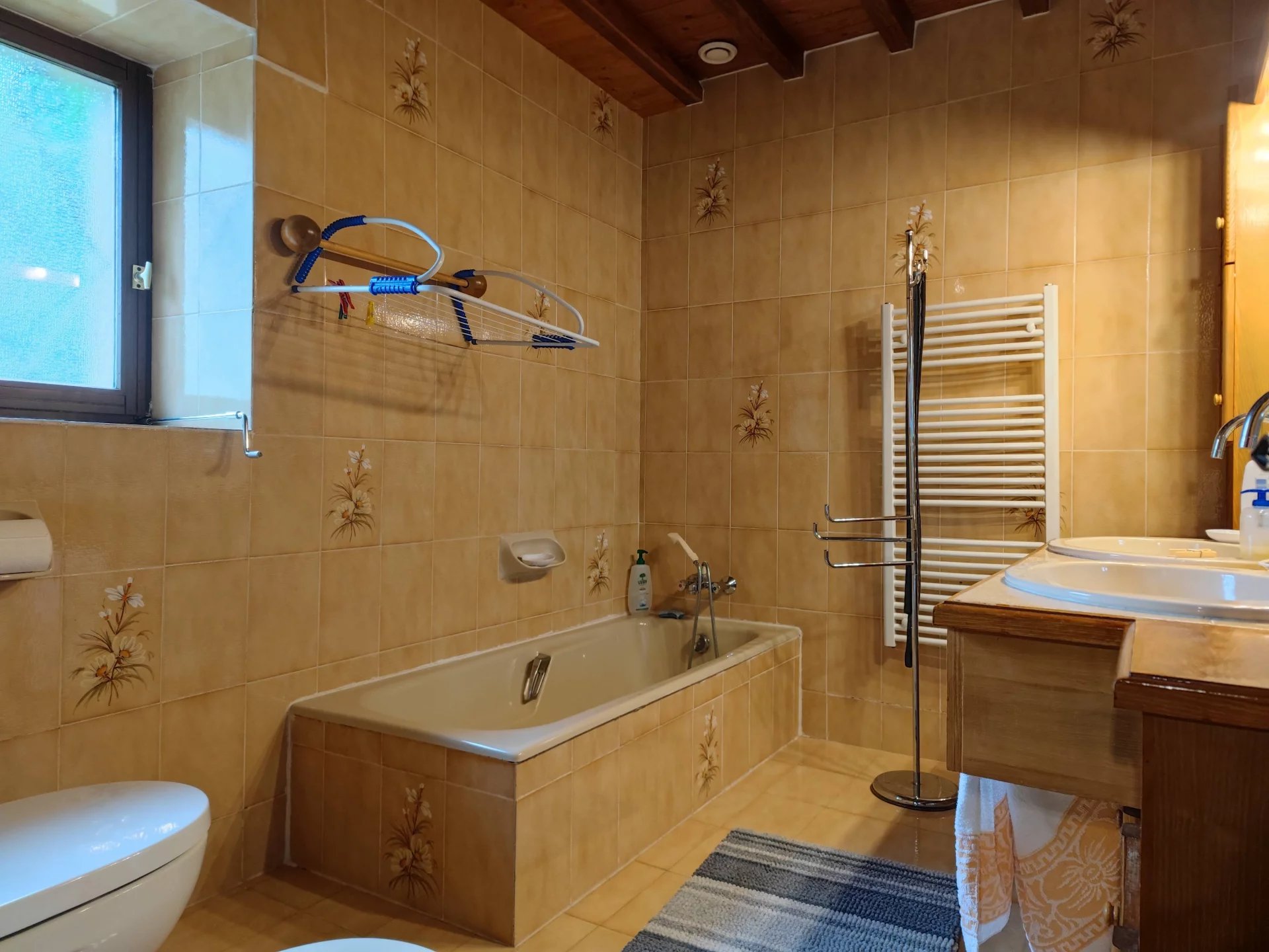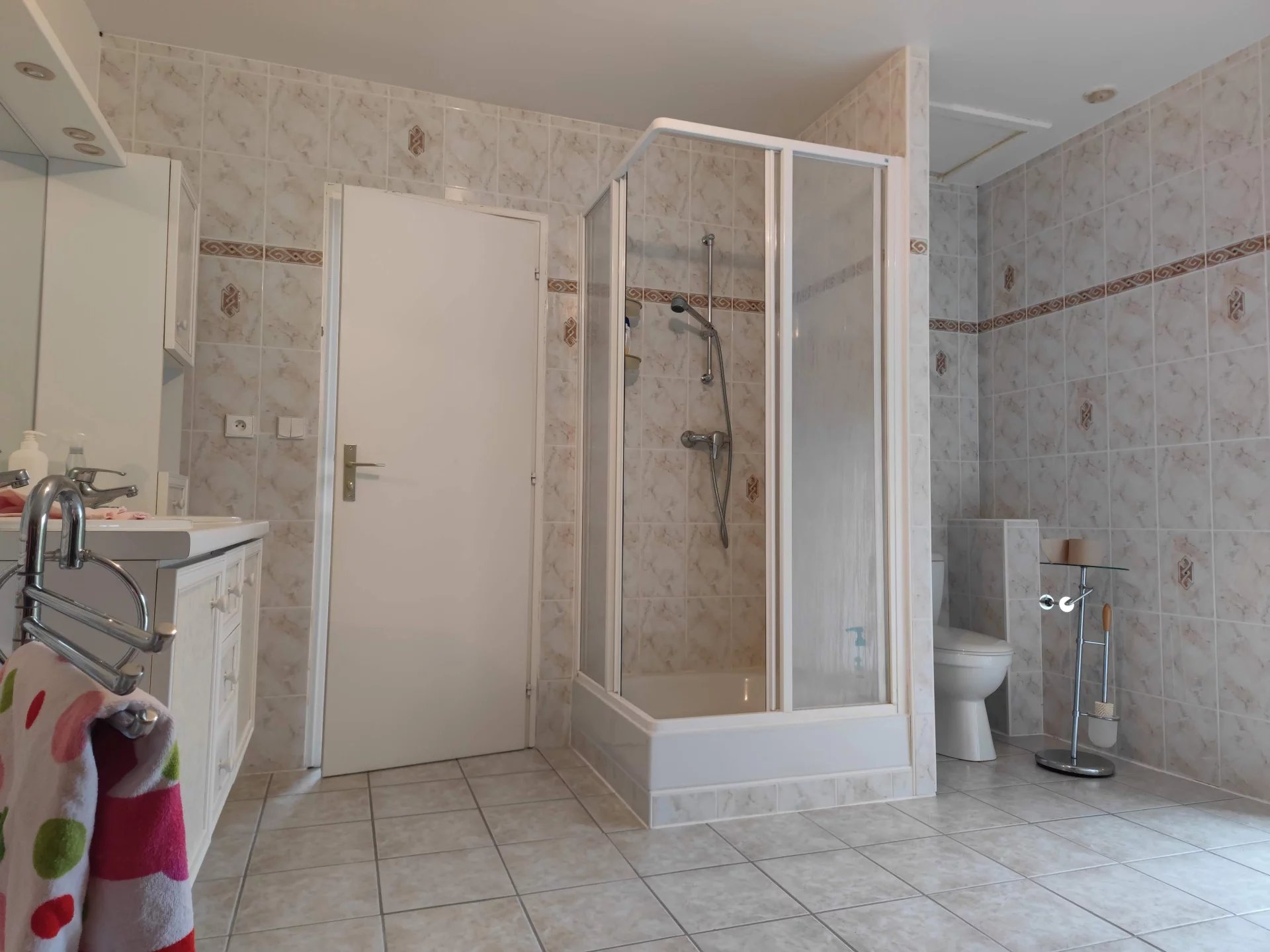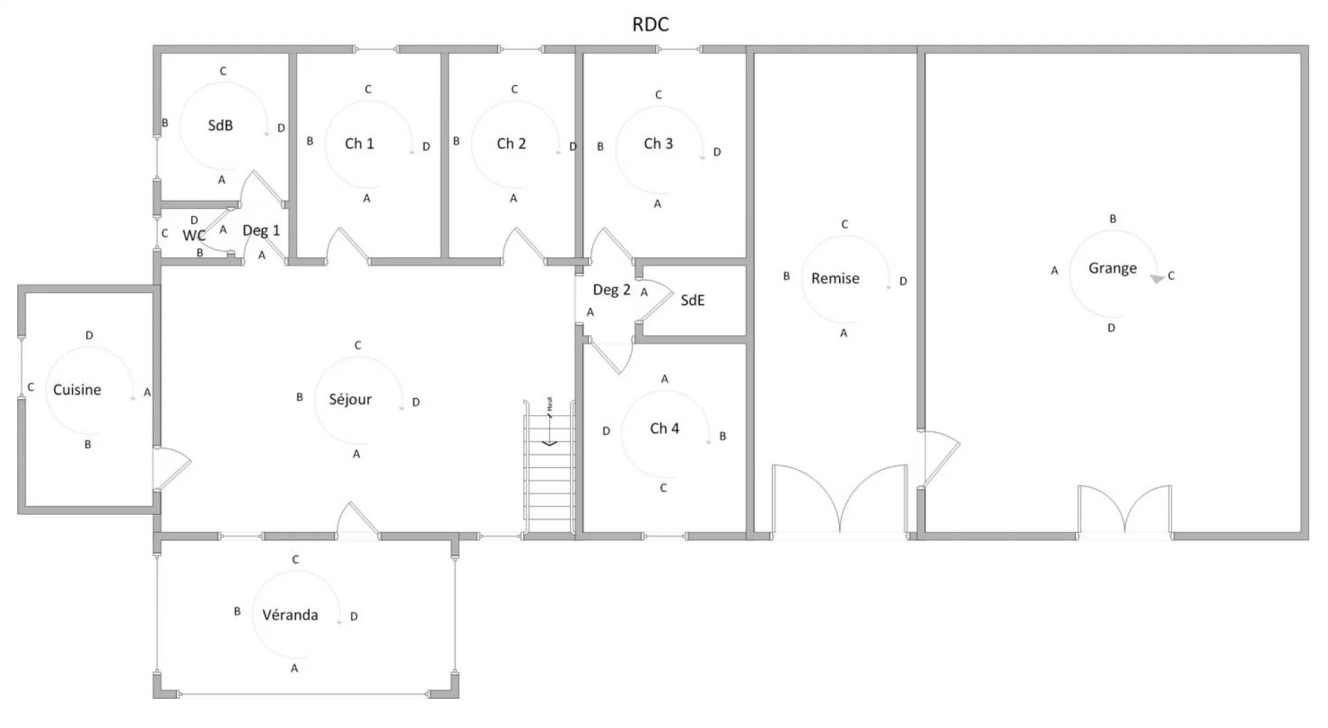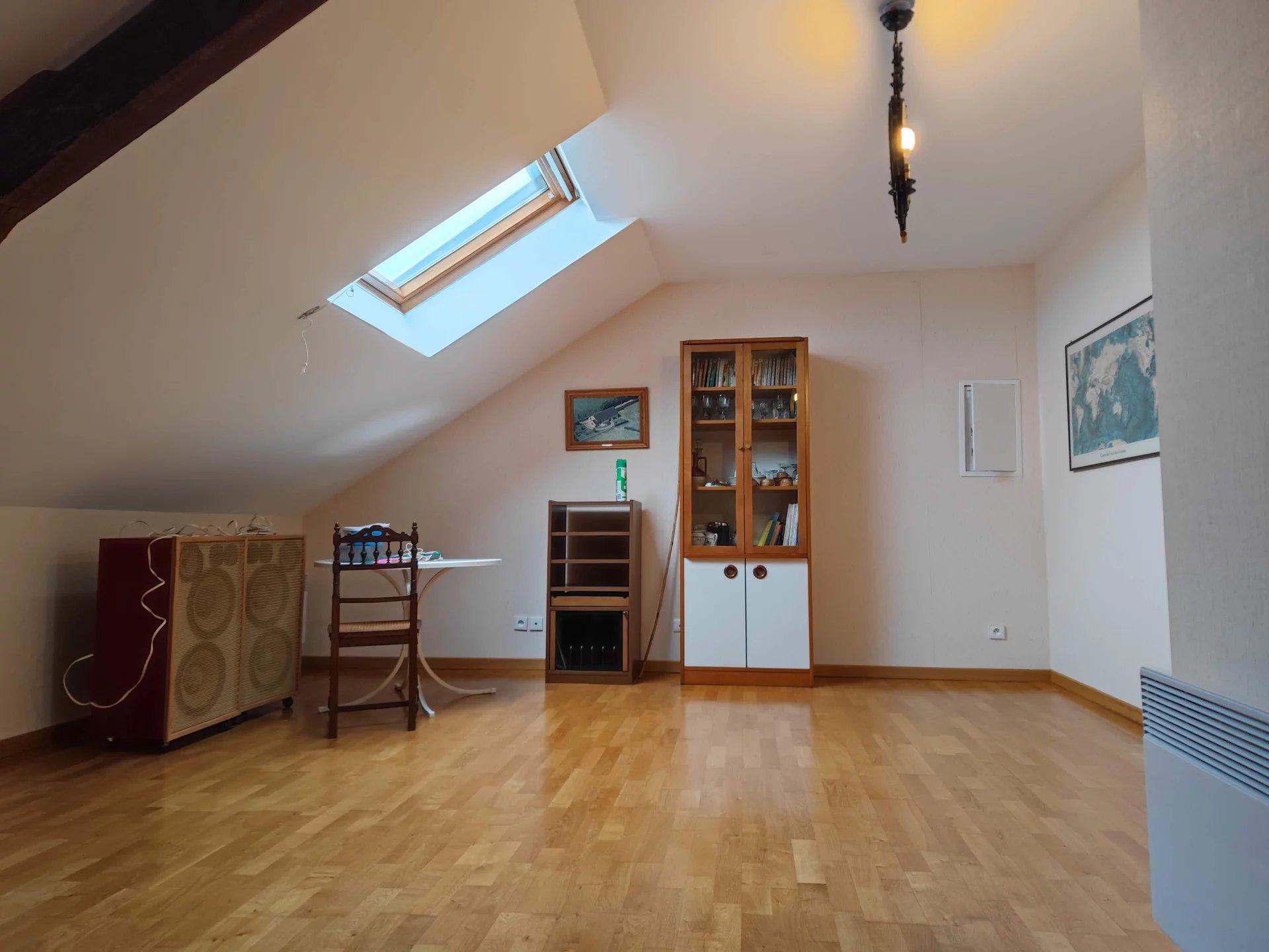 Cette grande maison d’une superficie de 200m2 habitable se compose au rez-de-chaussée d’une spacieuse pièce de vie avec salon et salle à manger, suivie d’une véranda, d’une cuisine, de quatre chambres, d’une salle de bain avec WC et d’une seconde salle d’eau. A l’étage, un vaste palier mène à trois chambres supplémentaires et à une troisième salle d’eau avec WC. L’ensemble est en bon état général et pourvu d’huisseries en double vitrages bois. Chauffage électrique + poêle à bois dans le séjour.