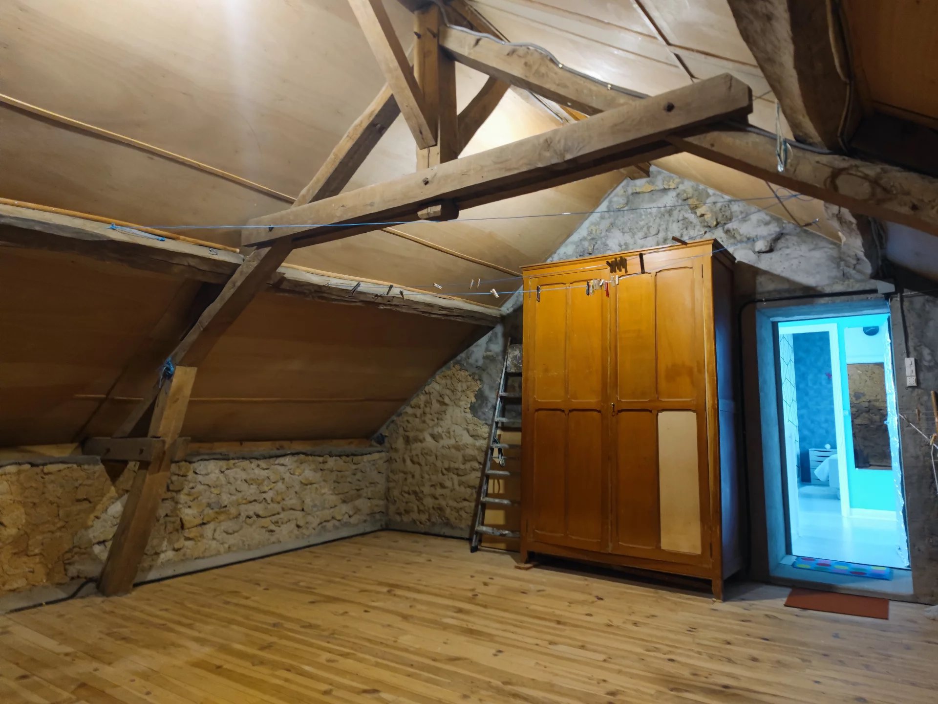 Dans le prolongement de l’habitation, vous pourrez également profiter d’un beau garage avec grenier, d’un espace chaufferie, d’un cellier et d’un petit atelier.