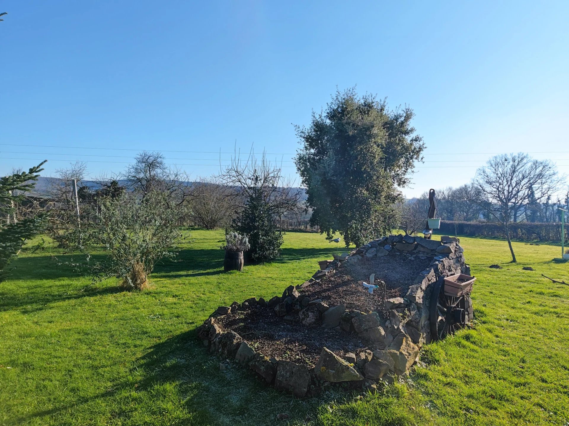 L’ensemble est entouré d’un magnifique jardin arboré de plus de 3000m2, avec potager, terrasse, diverses petites dépendances et une jolie vue sur la campagne environnante.