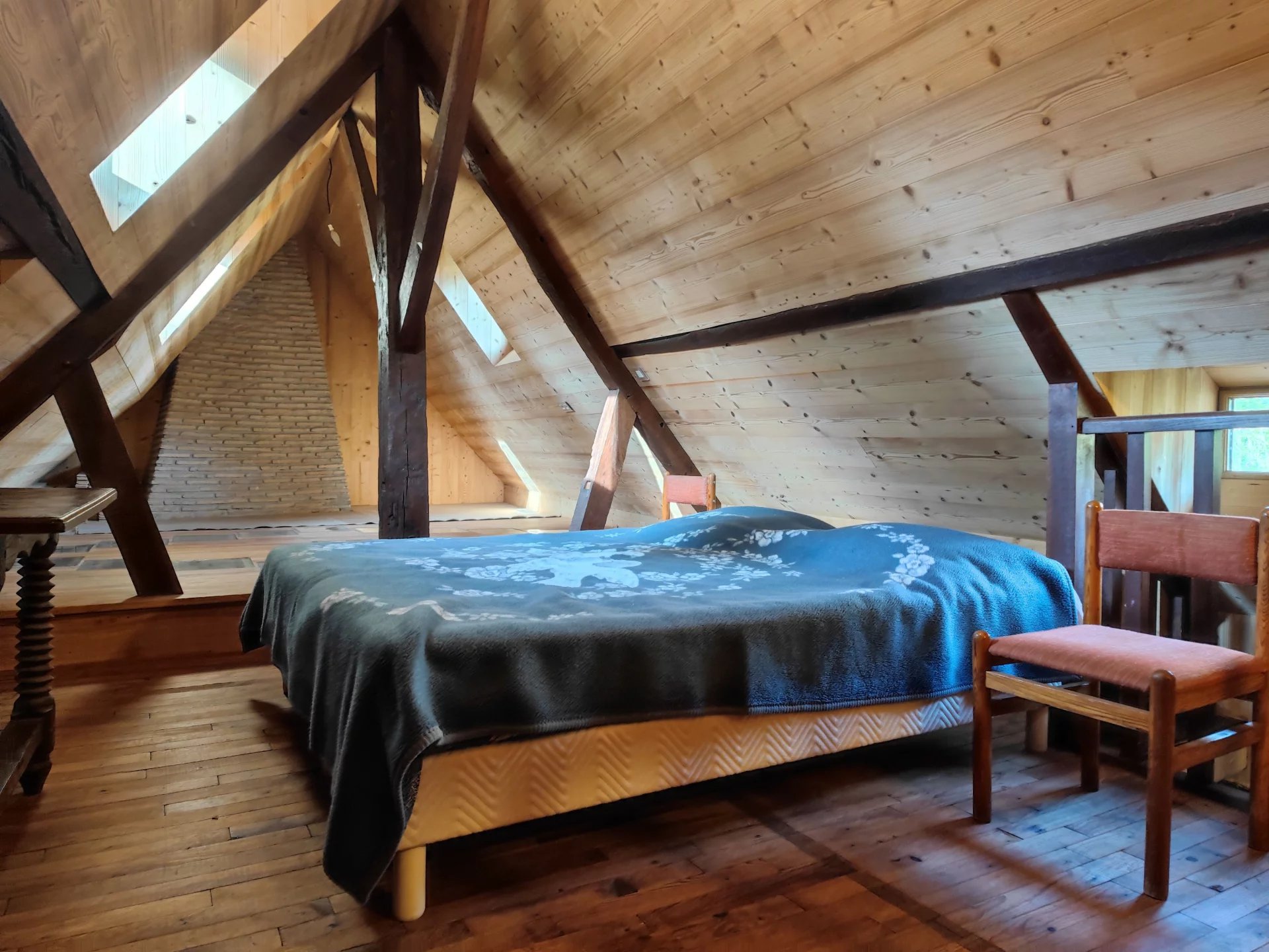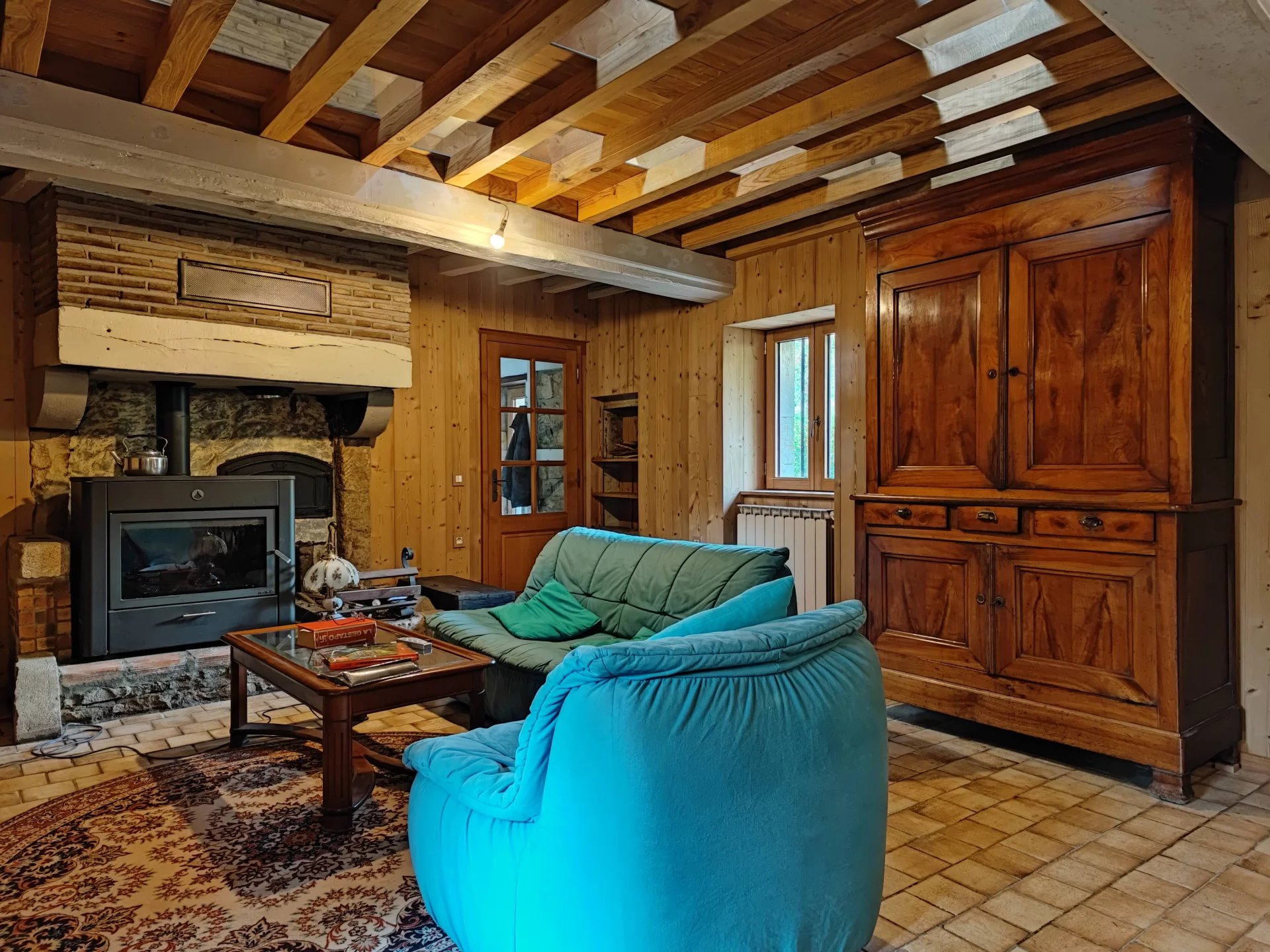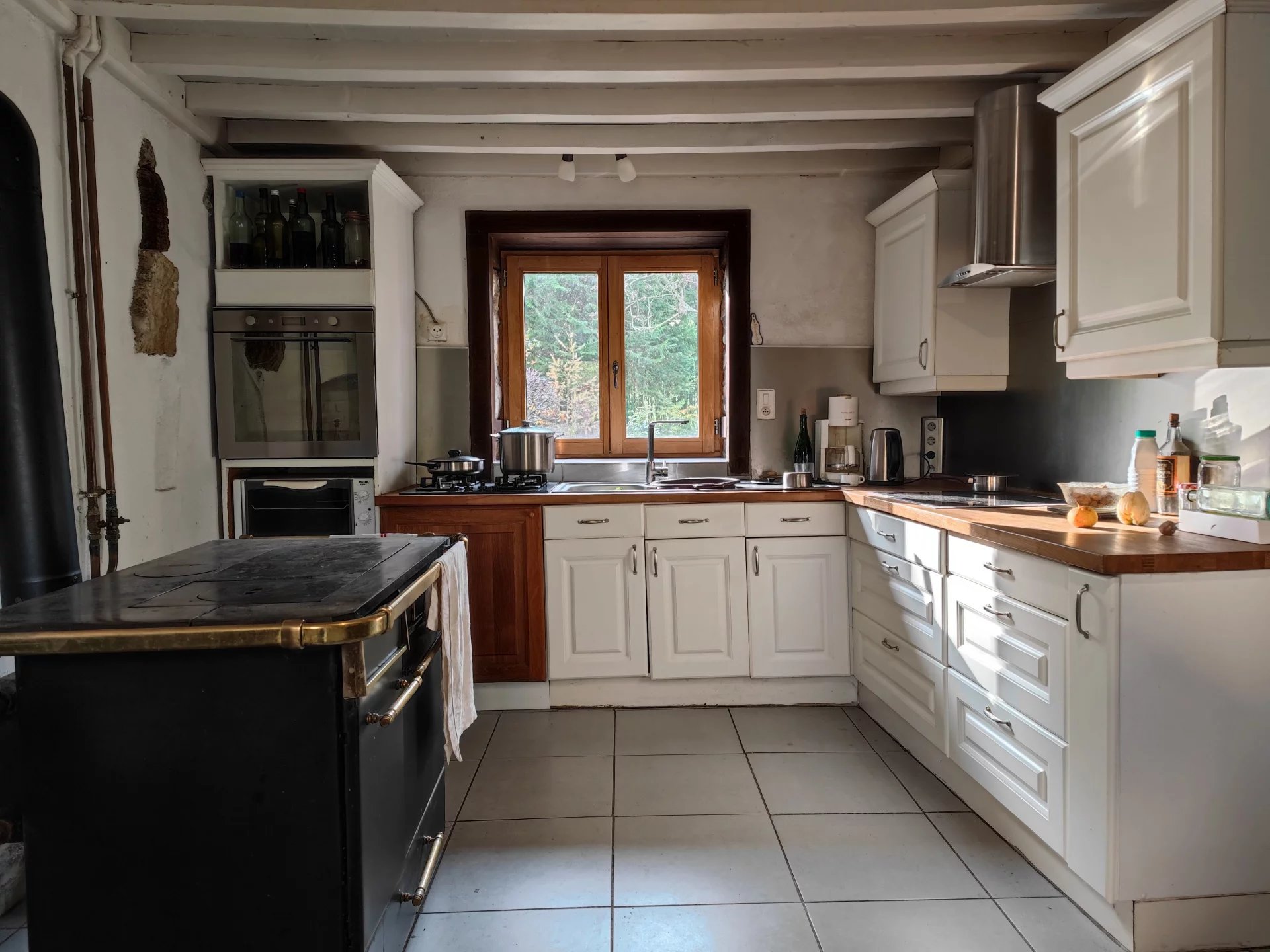 La maison est chauffée avec un chauffage central au fioul avec appoint au bois. La grande cuisinière au bois dans la cuisine est également reliée au chauffage central.