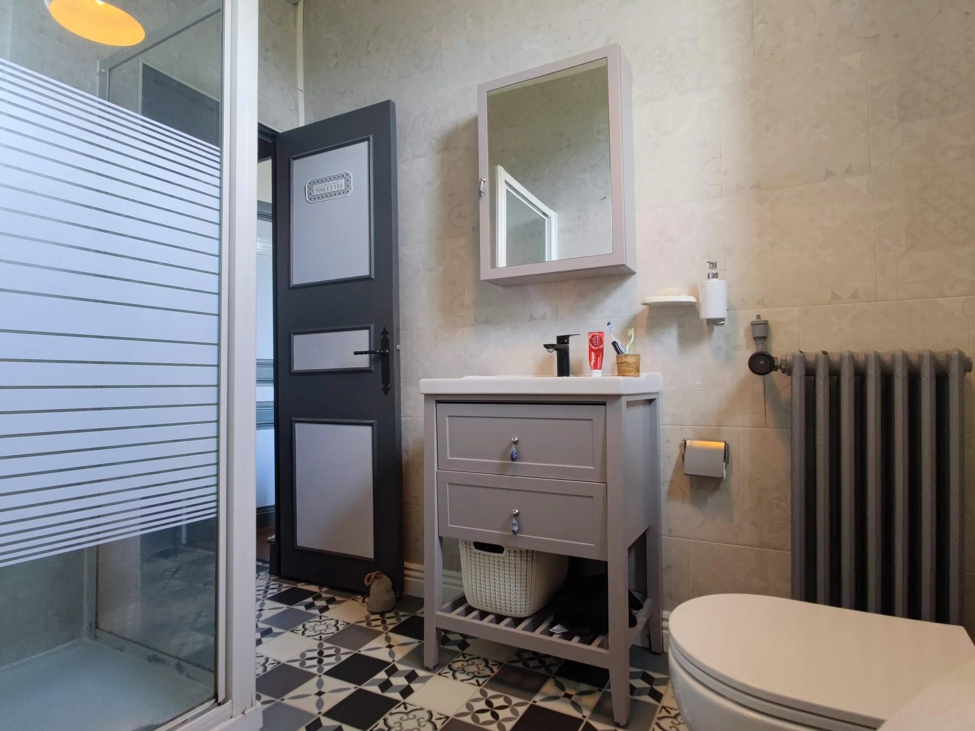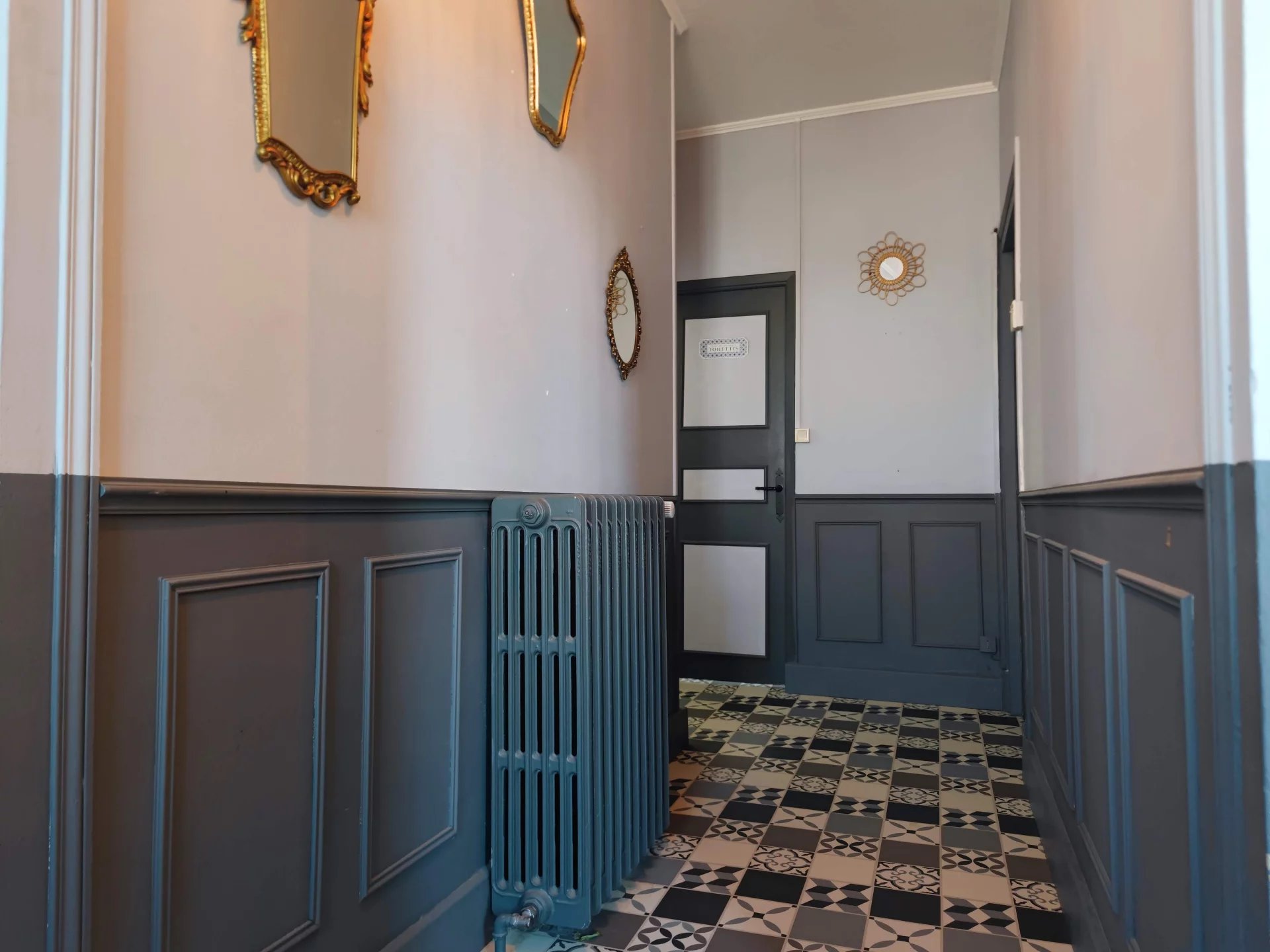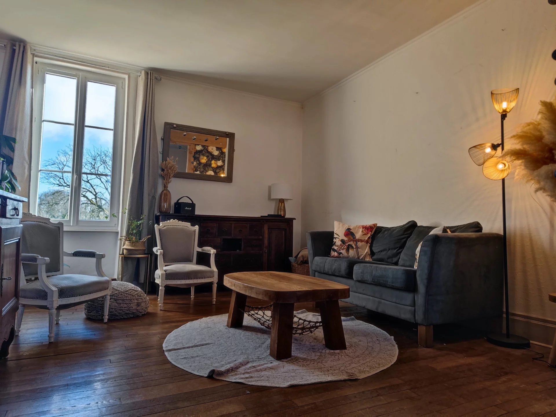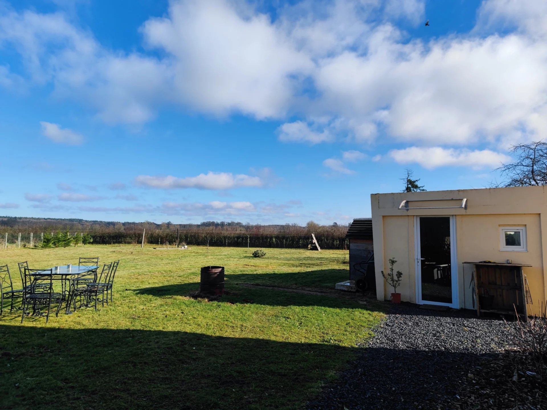 La maison est dotée d’un chauffage central avec une chaudière fioul à condensation, ainsi que d’un poêle à bois en guise d’appoint. Les huisseries sont en double vitrages.