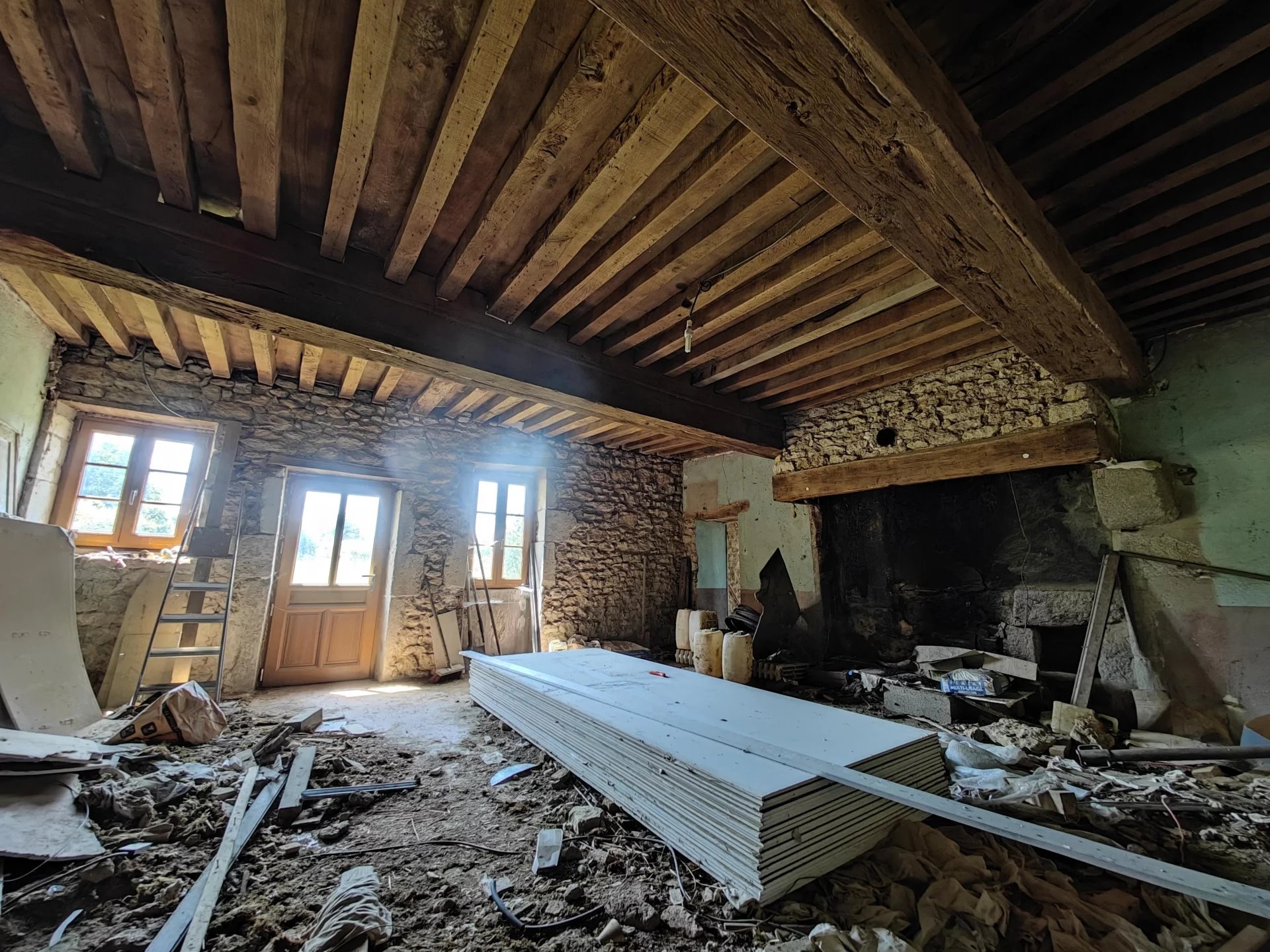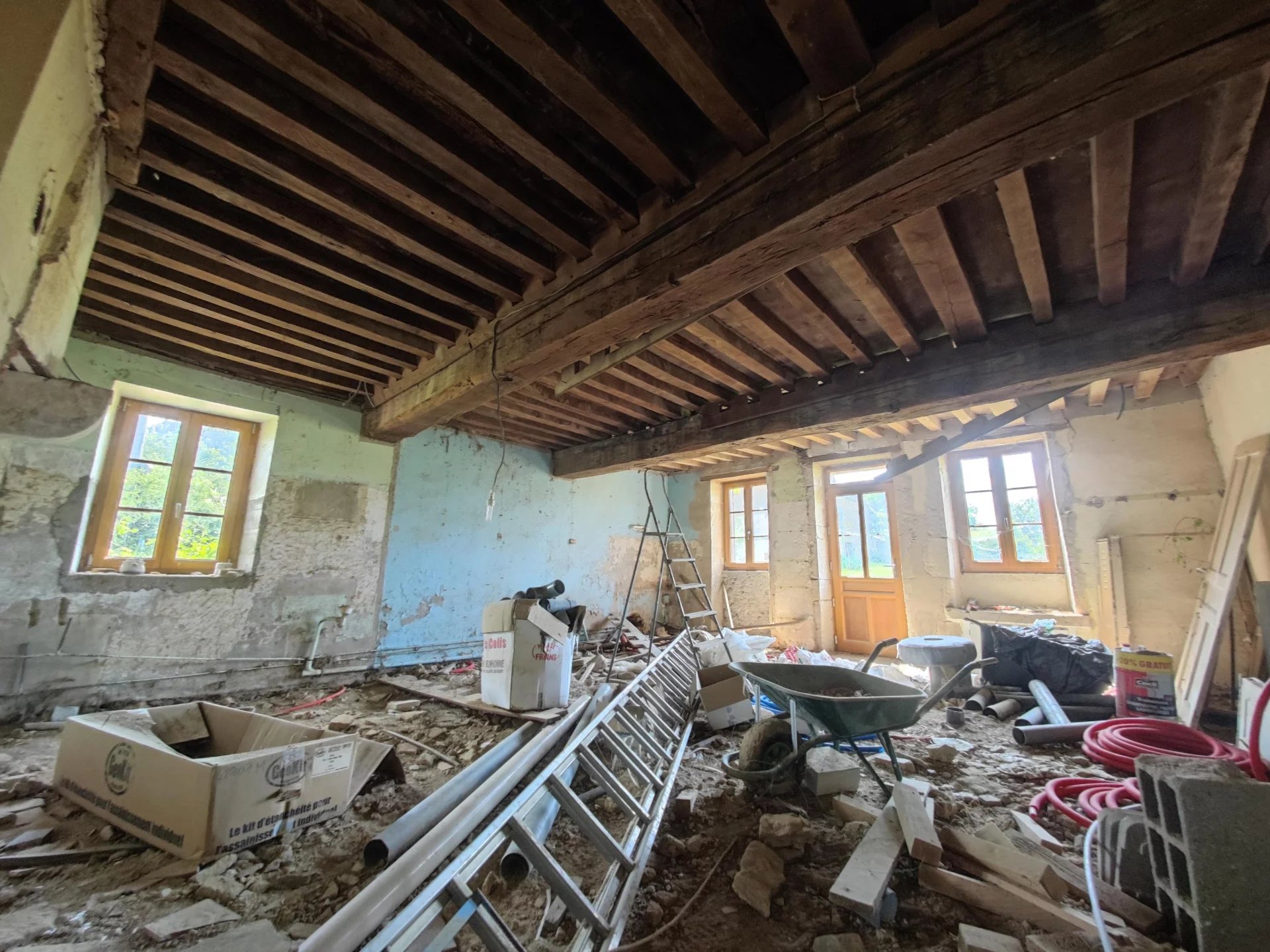 D’importants travaux ont été réalisés sur cette propriété, incluant la charpente, la toiture, les huisseries, le sablage des poutres, l’isolation à l’étage mais également le changement de la fosse septique et le drainage de la cour. De nombreux travaux restent toutefois à prévoir.