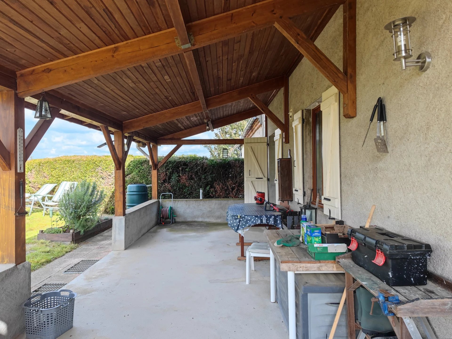 Une terrasse couverte d’environ 25m2, accessible directement depuis le séjour complète l’ensemble.