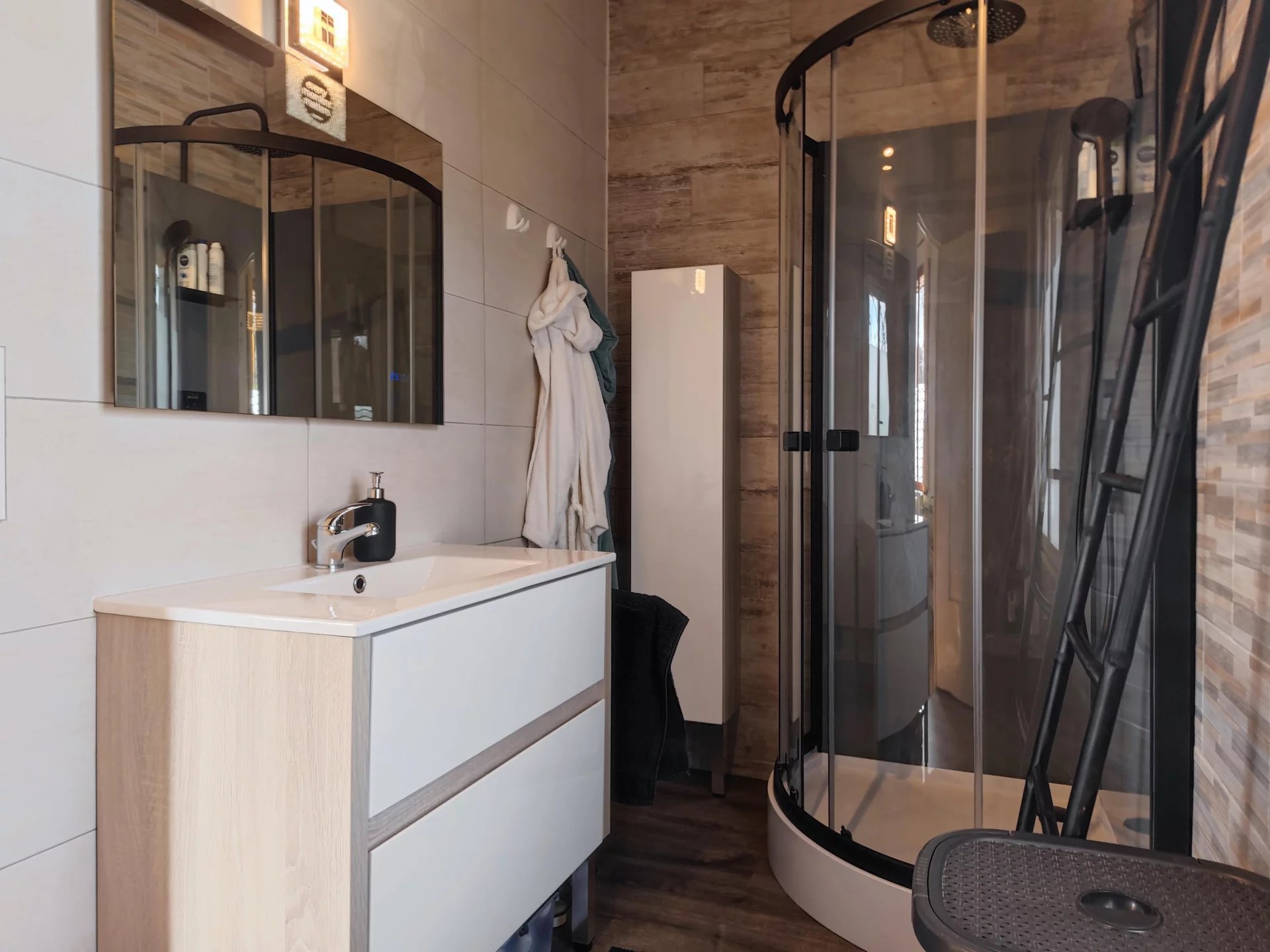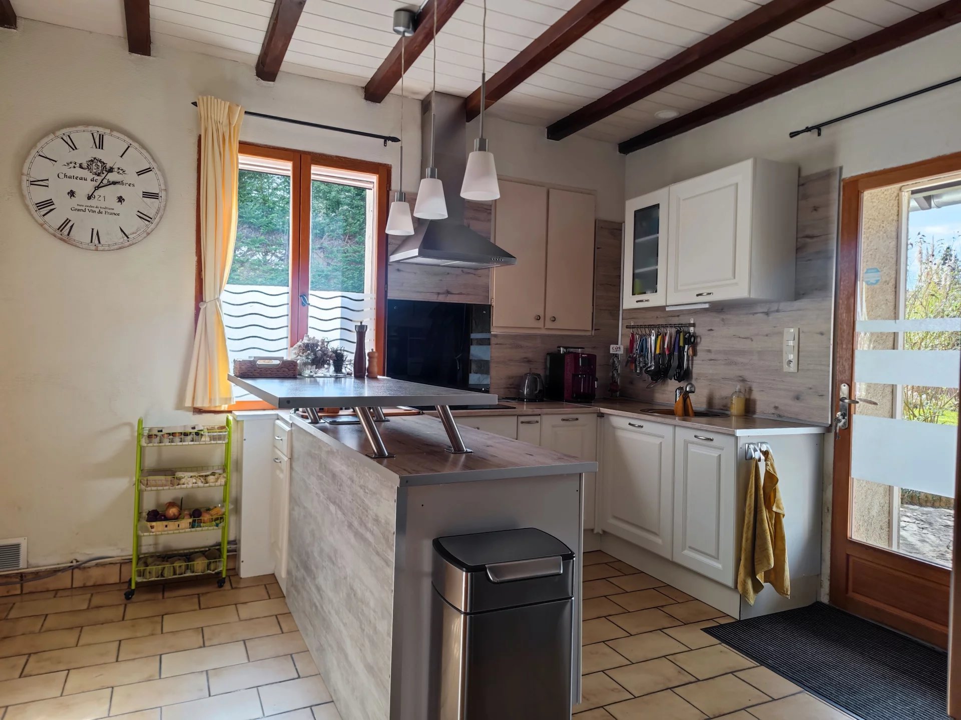 L’ensemble est en bon état général avec une toiture récente ainsi qu’un chauffage au granulés dans le séjour avec un appoint électrique. La maison est également raccordée au tout à l’égout.