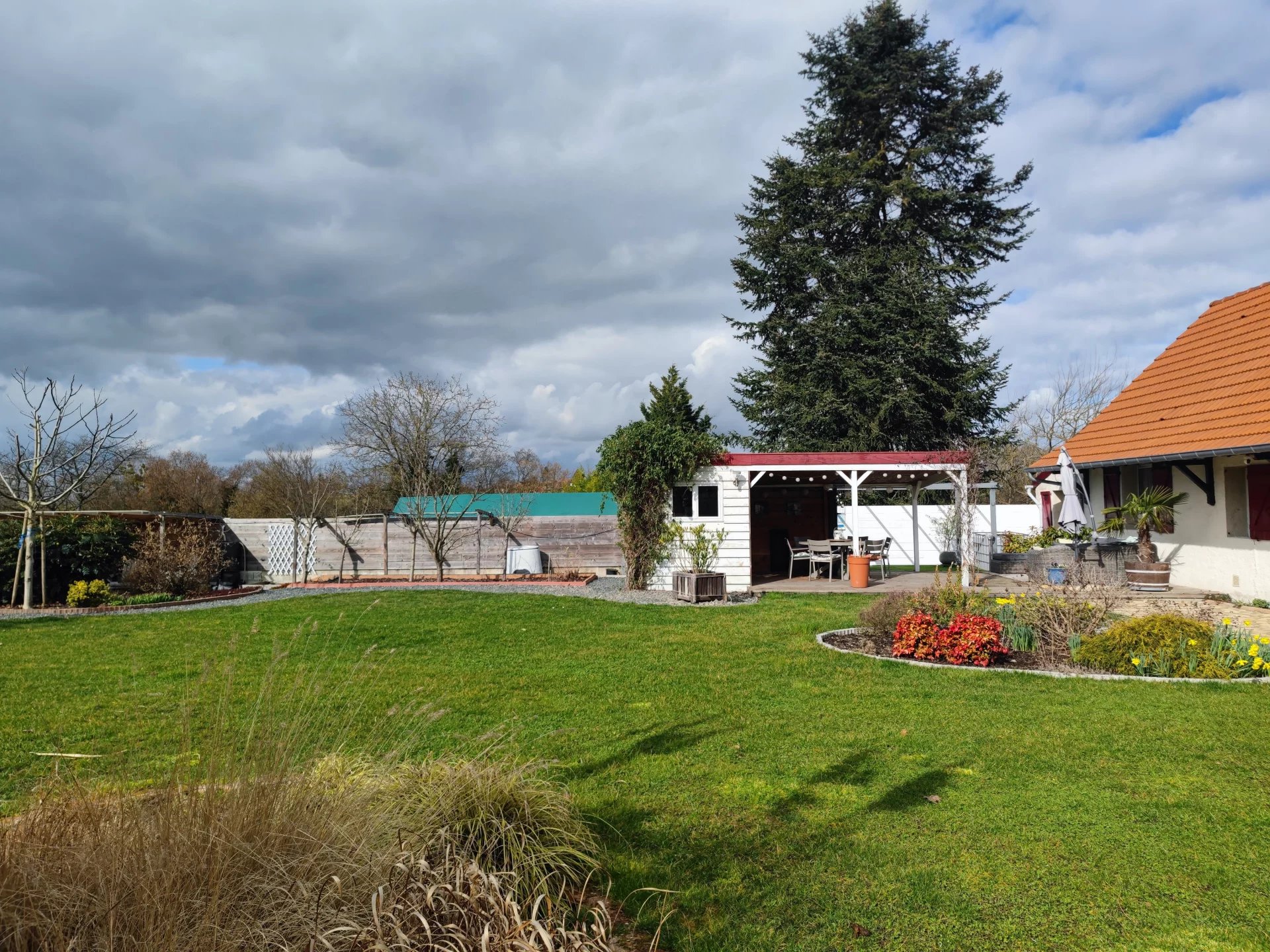Au niveau extérieur, vous pourrez profiter d’un jardin très agréable d’environ 800m2 avec un coin aménagé en cuisine d’été avec une terrasse. Un abri de jardin est également présent.