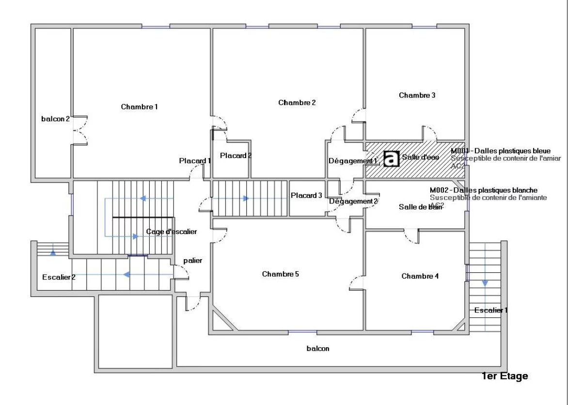 Un escalier vous mène ensuite au premier étage, ou un pallier vous mène à 5 chambres spacieuses avec deux balcons et une salle de bain.