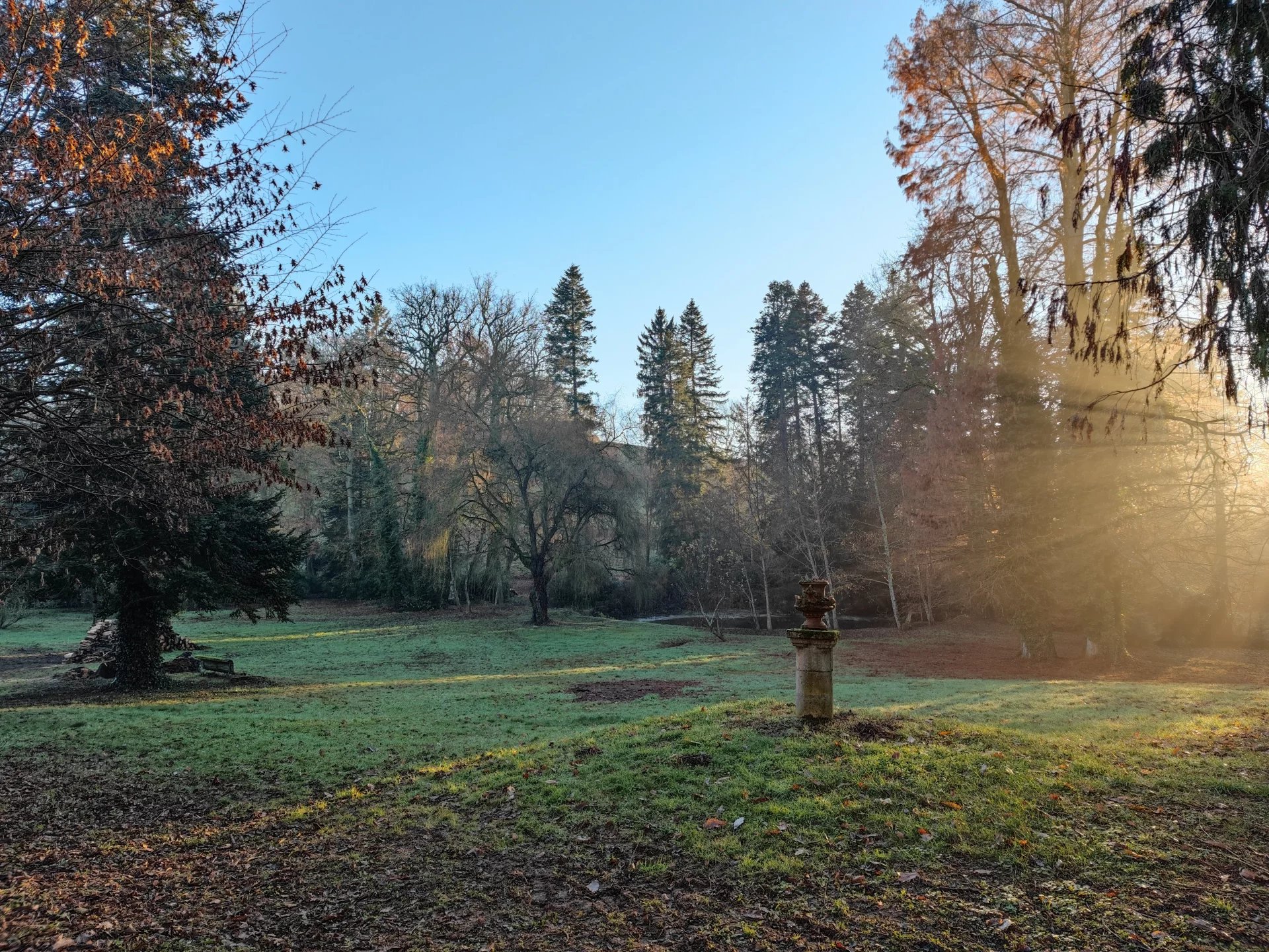 La propriété est située sur un très beau parc arboré d’environ 3 hectares, bordé d’un petit ruisseau et avec une marre. Le restant des terres sont à usage agricole et actuellement loués par un agriculteur.