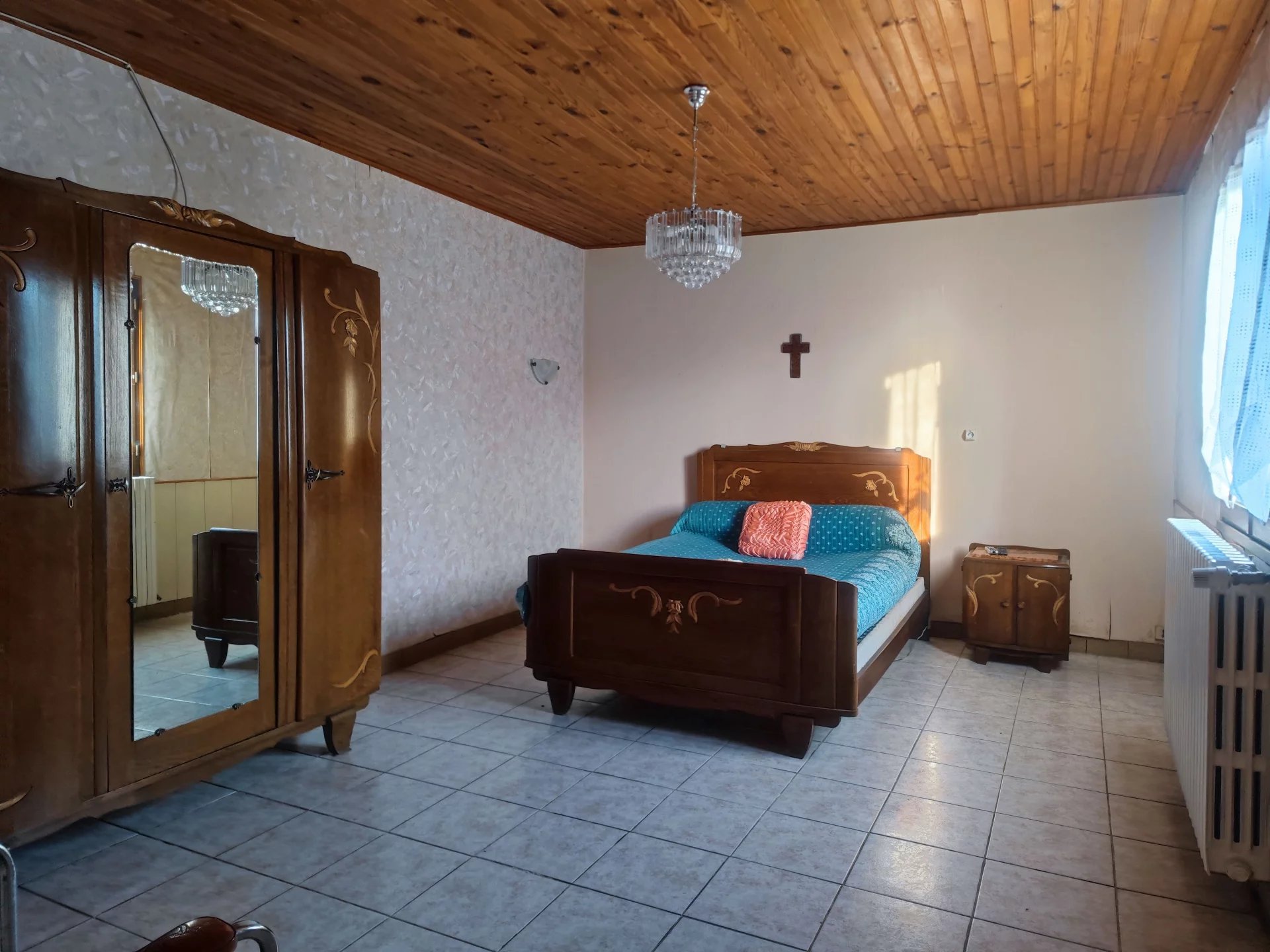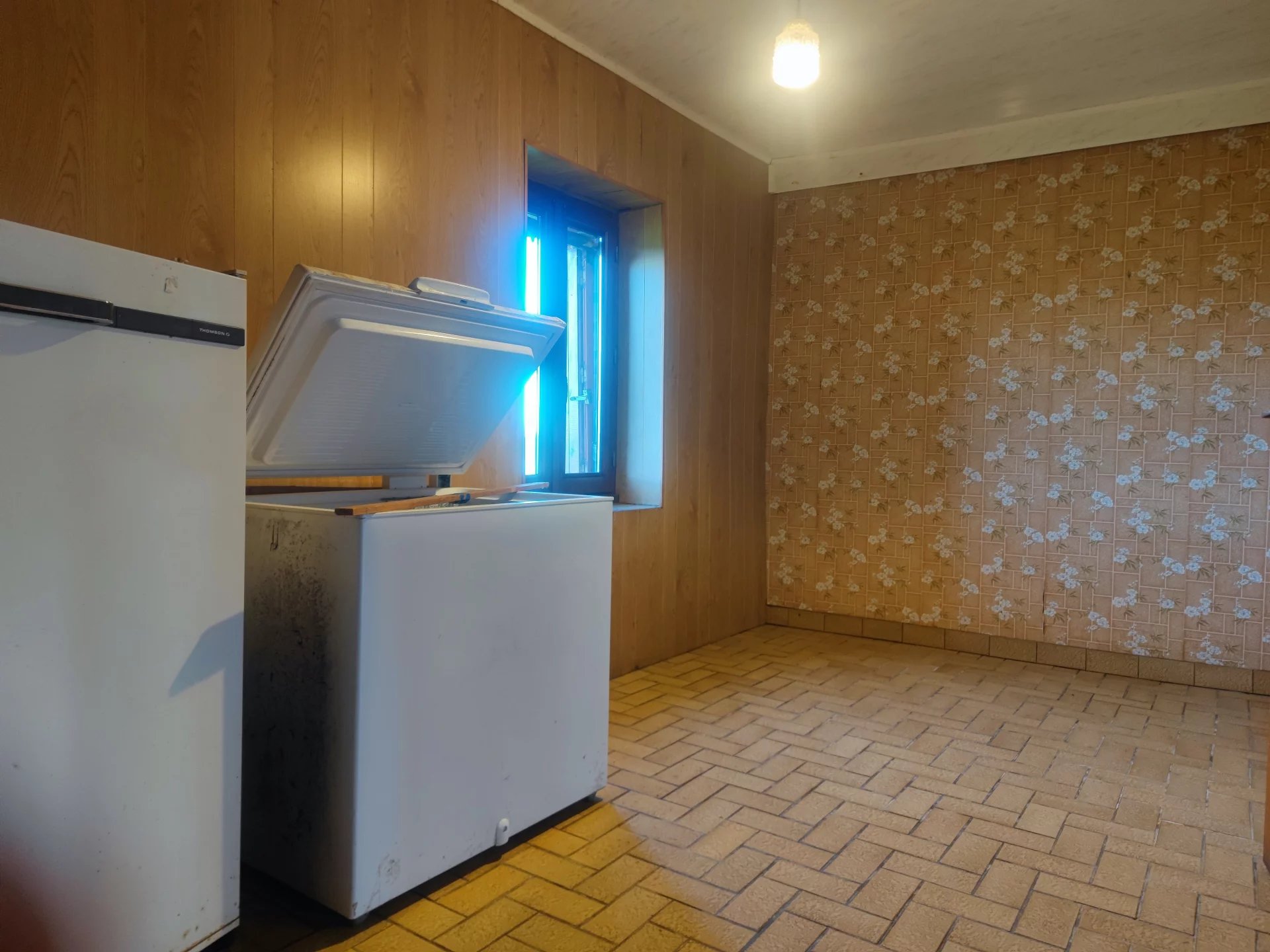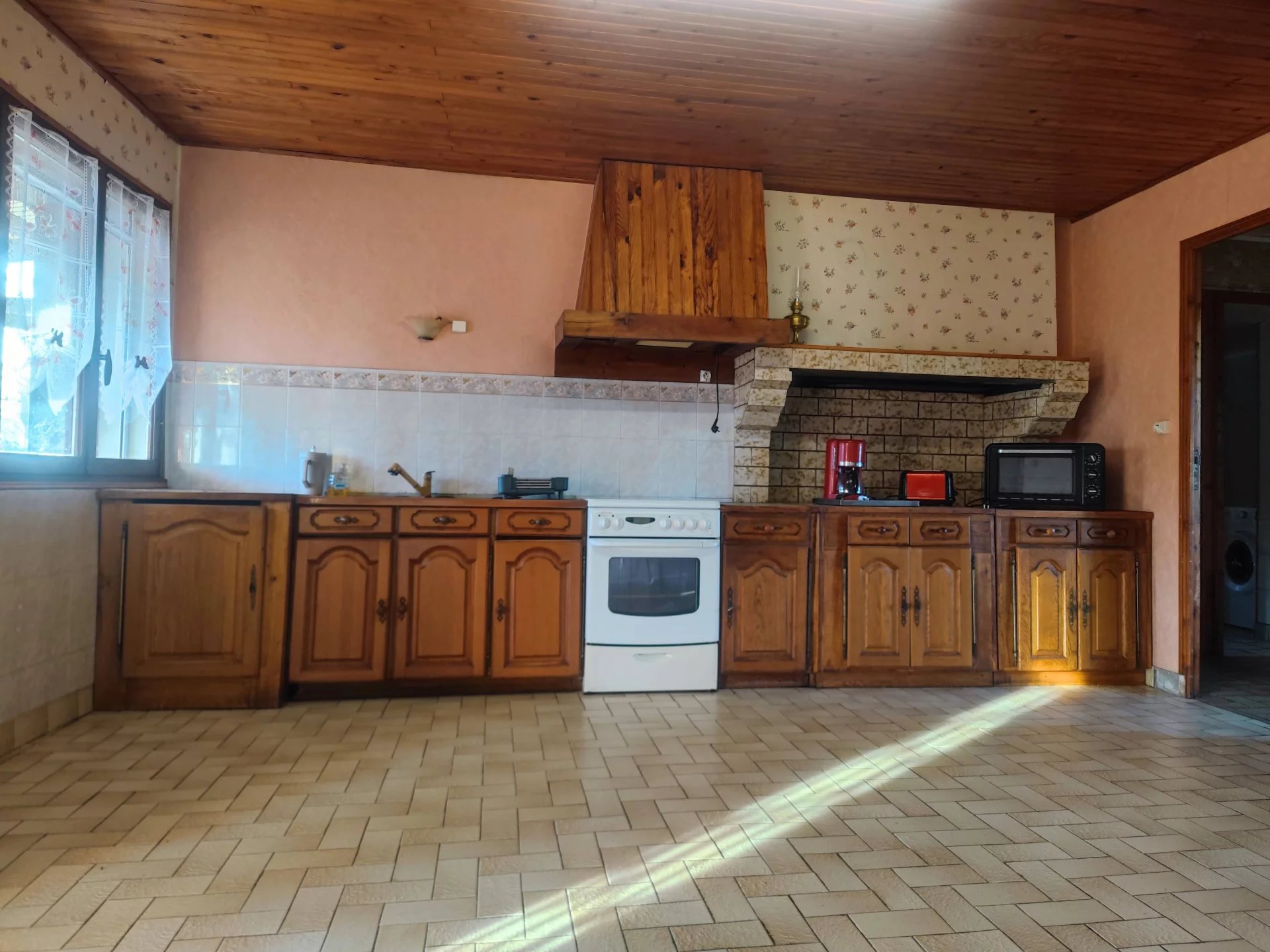 L’habitation est composé d’une entrée par véranda donnant sur un grande pièce avec cuisine, suivi d’un vaste séjour, de deux chambres, d’une buanderie ainsi que d’une salle d’eau et d’un WC. Garage et chaufferie attenants et grenier au dessus.