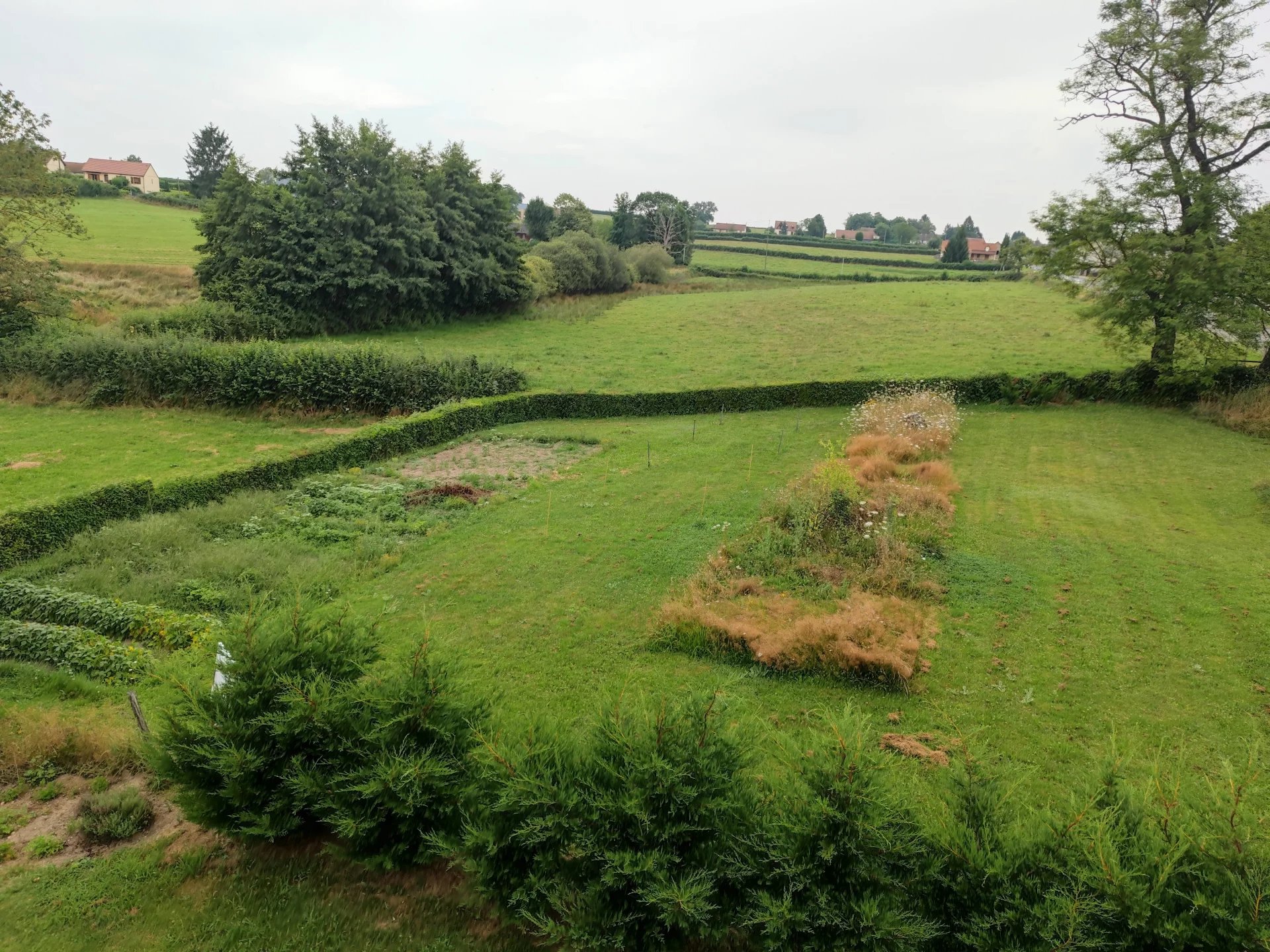 L’ensemble est implanté sur un beau jardin de 1875m2 dont 828m2 constructible et avec une jolie vue sur la campagne environnante.
