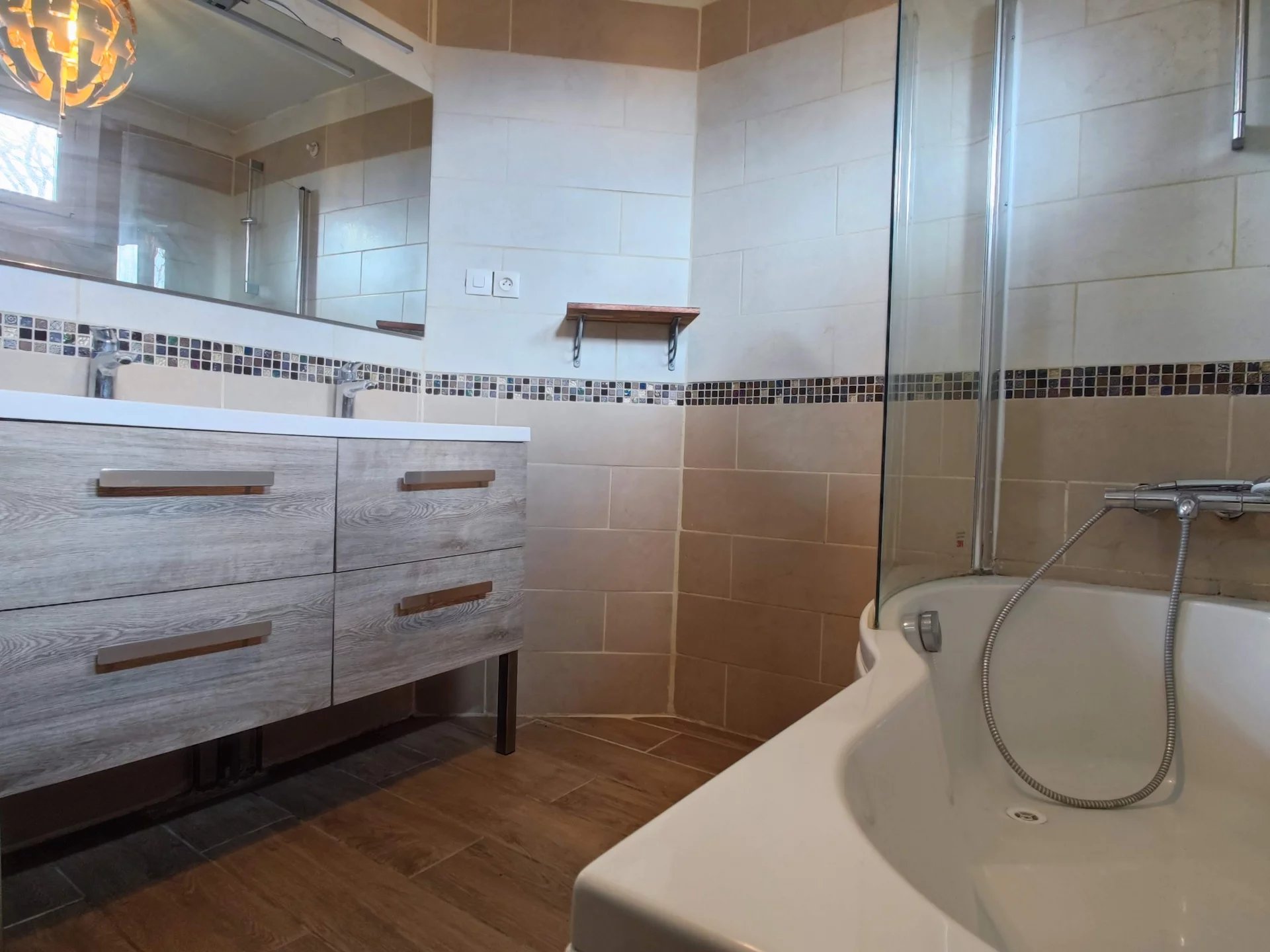 La maison se compose d’une très belle pièce de plus de 40m2 avec une cuisine semi ouverte sur le séjour et suivi par trois chambres, une salle de bain et un WC indépendant. Au sous-sol, vous trouverez trois pièces pouvant être aménagées selon vos goûts. Cet espace bénéficie également d’une alimentation en eau et électricité et peut agrandir l’espace habitable. L’ensemble des pièces sont pourvues d’huisseries en double vitrages et l’habitation est chauffé avec un poêle à granulés avec des radiateurs électriques en appoint. Travaux de rafraichissements à prévoir.