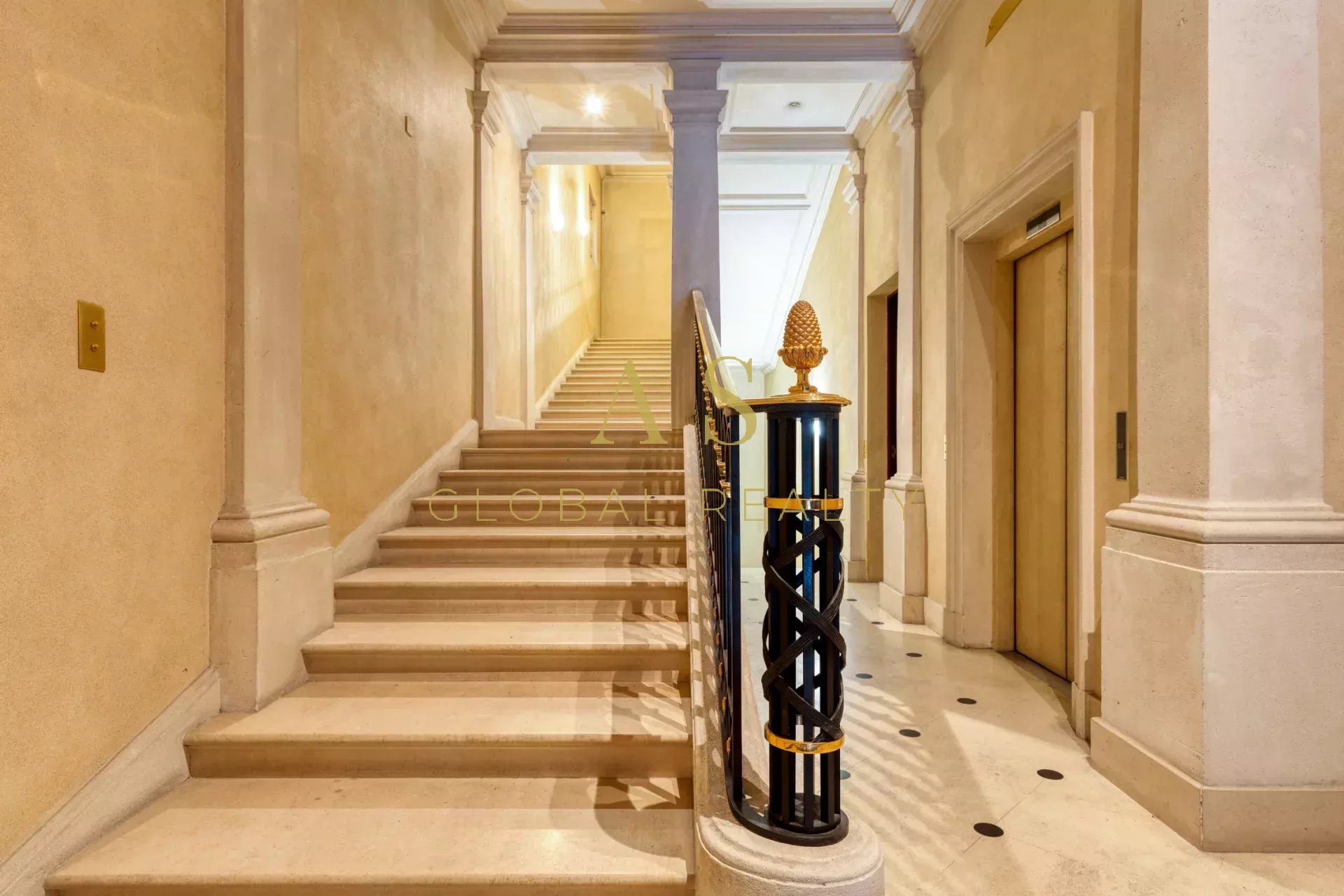 La discrète grille d’entrée et son élégante allée arborée ne laissent en rien présager du caractère grandiose de la bâtisse en pierre de taille dont chaque niveau est desservi par un large ascenseur prévu pour 6 personnes.